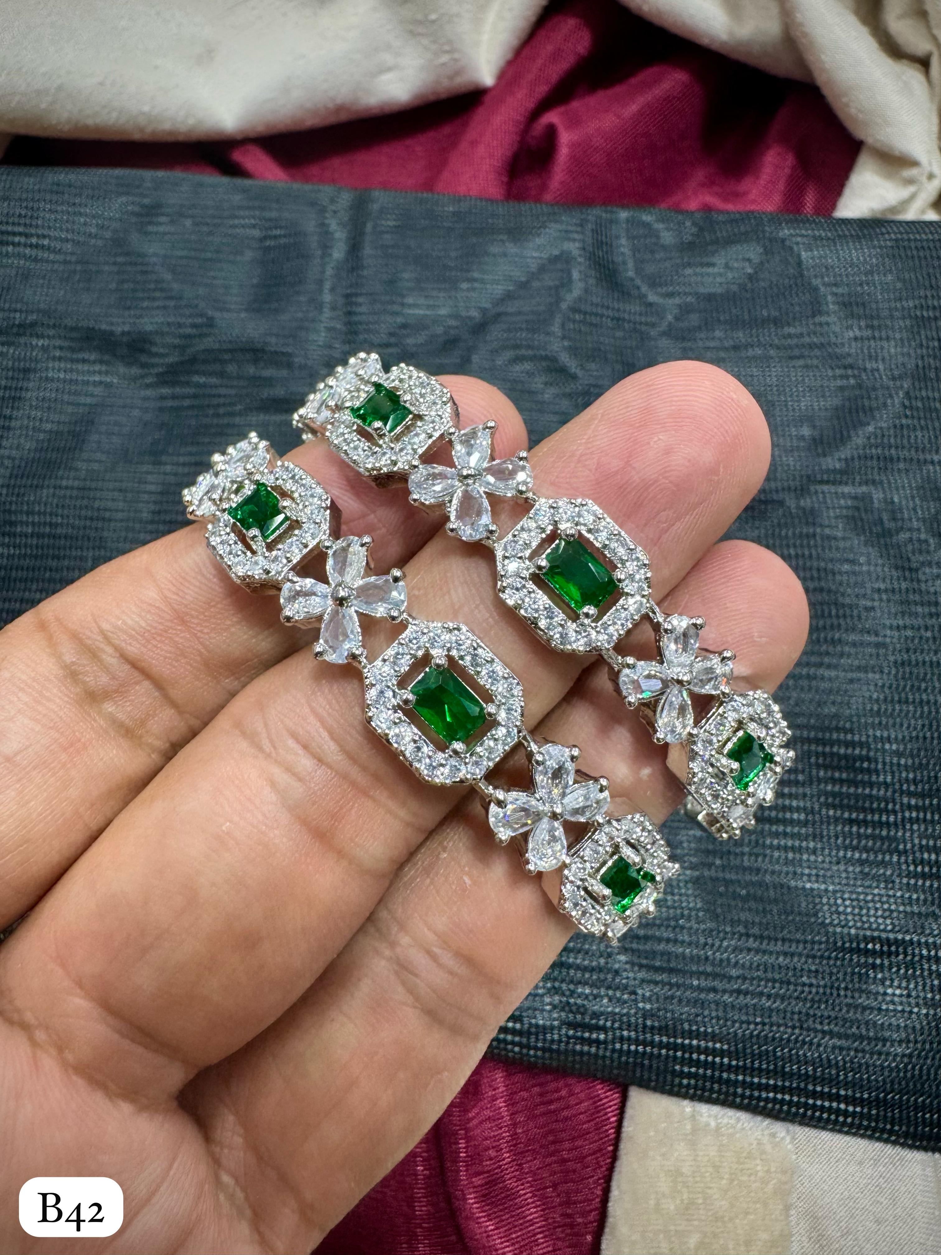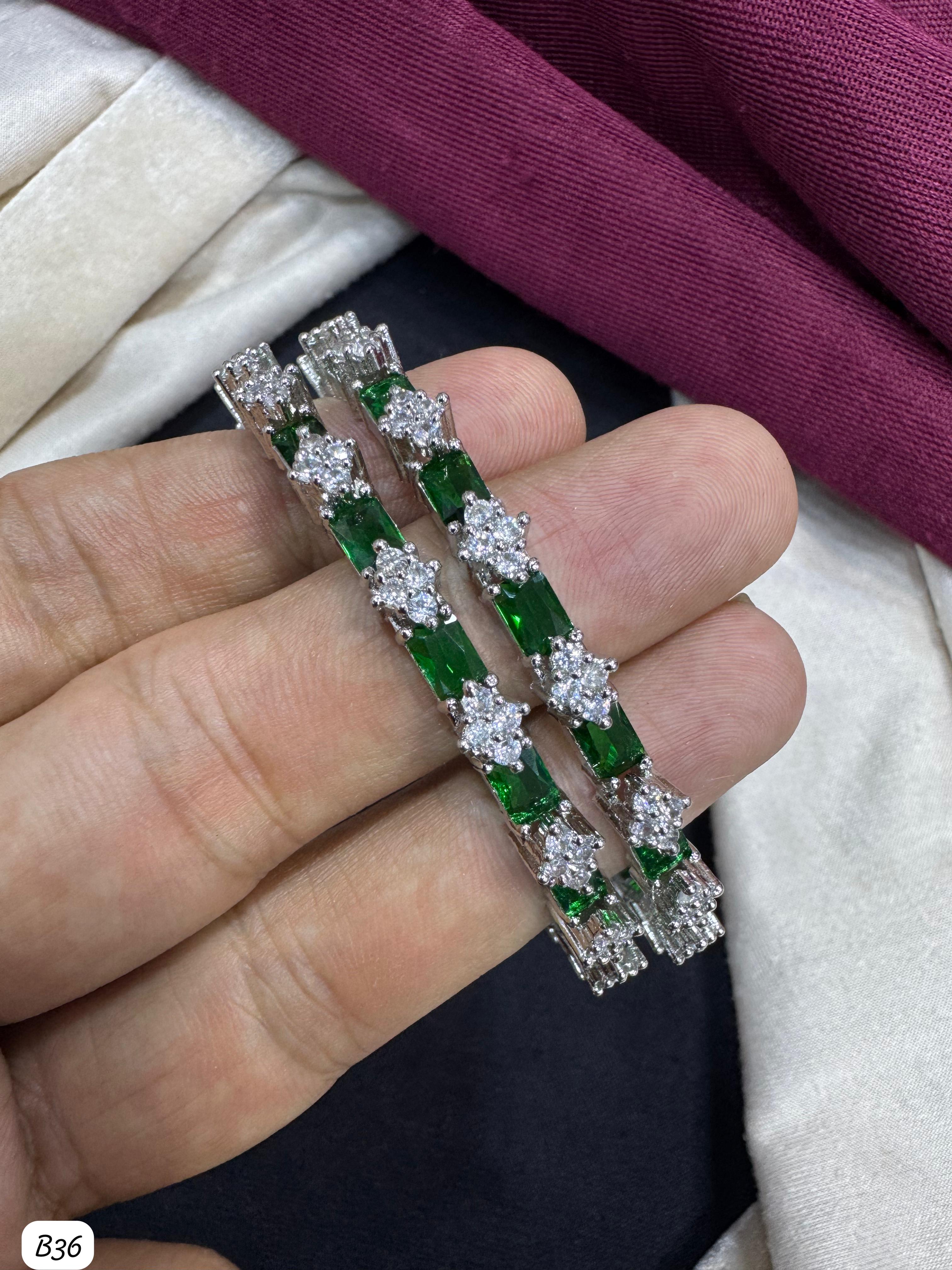 These elegant Silver Plated American Diamond Bangles add a touch of sophistication to any outfit. Crafted with high-quality materials, these bangles are not only visually stunning...