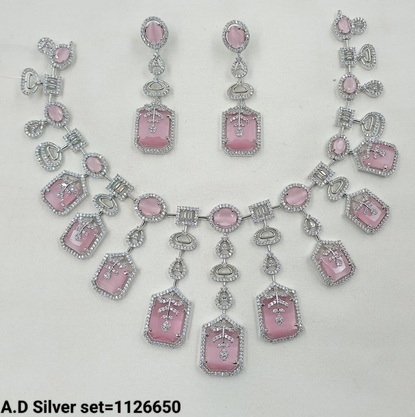 Elegant AD Silver Necklace and Earring Set – Stunning Design with Gemstone Accents