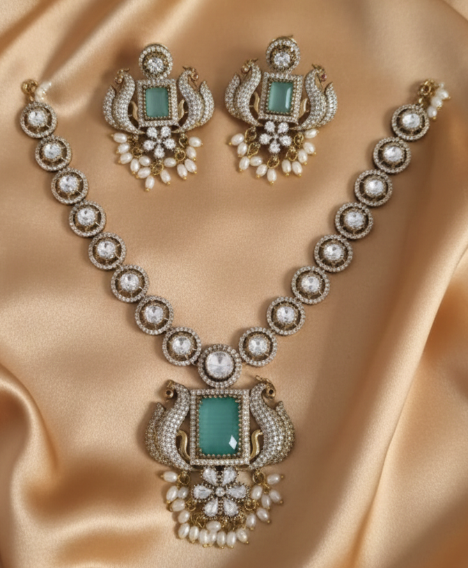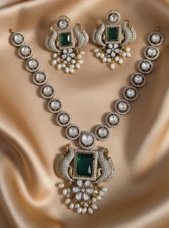 Peacock AD Jewellery Set With Necklace and Earrings For Woman & Girls