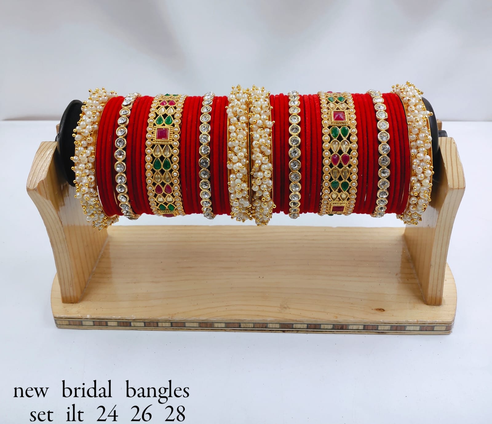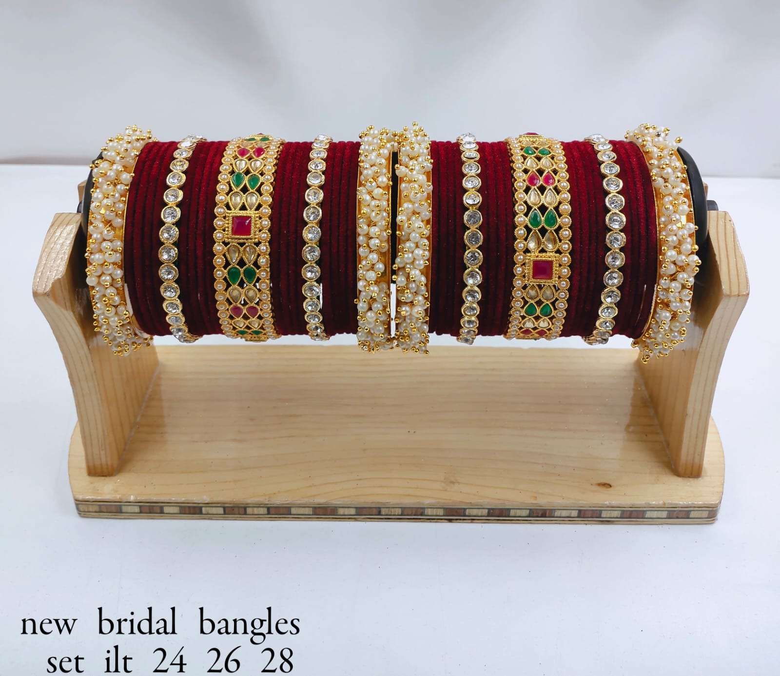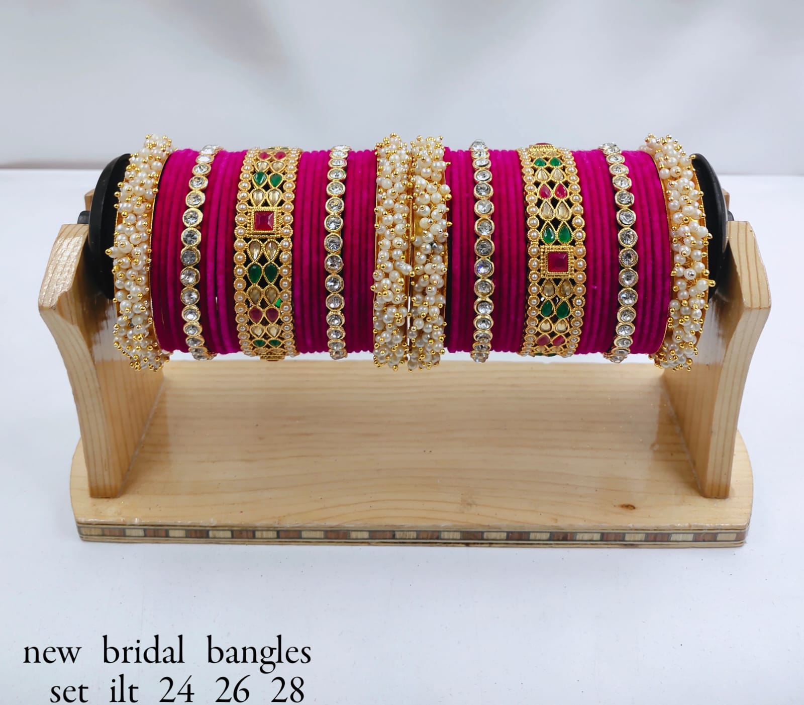 Stay on trend with our Latest Fashionable Tear Dropped Silk Thread Pearl Dropped Beautiful Chudda Combo Set! Perfect for weddings, this set is designed for women...