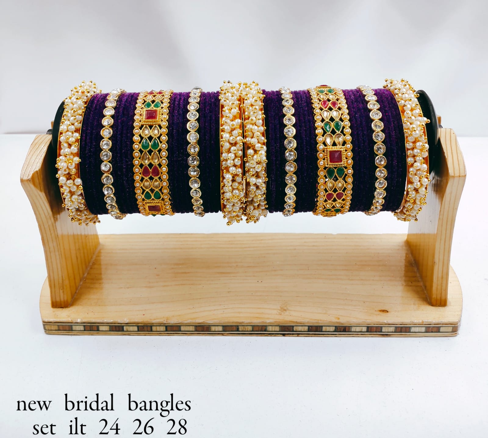 New Gold Plated Minakari Studded Pearl Openable Copper Bangle Set For Women And Girls