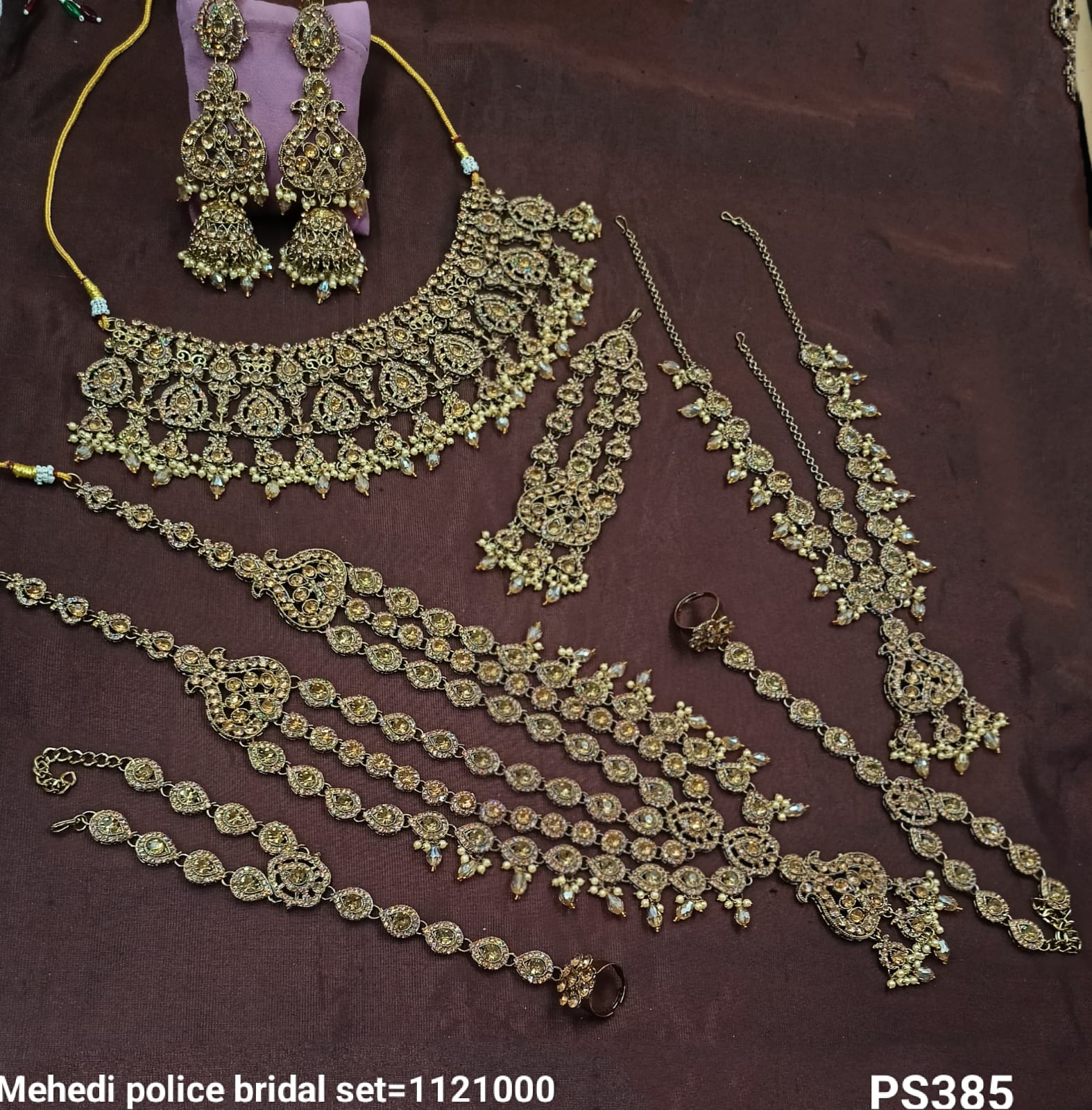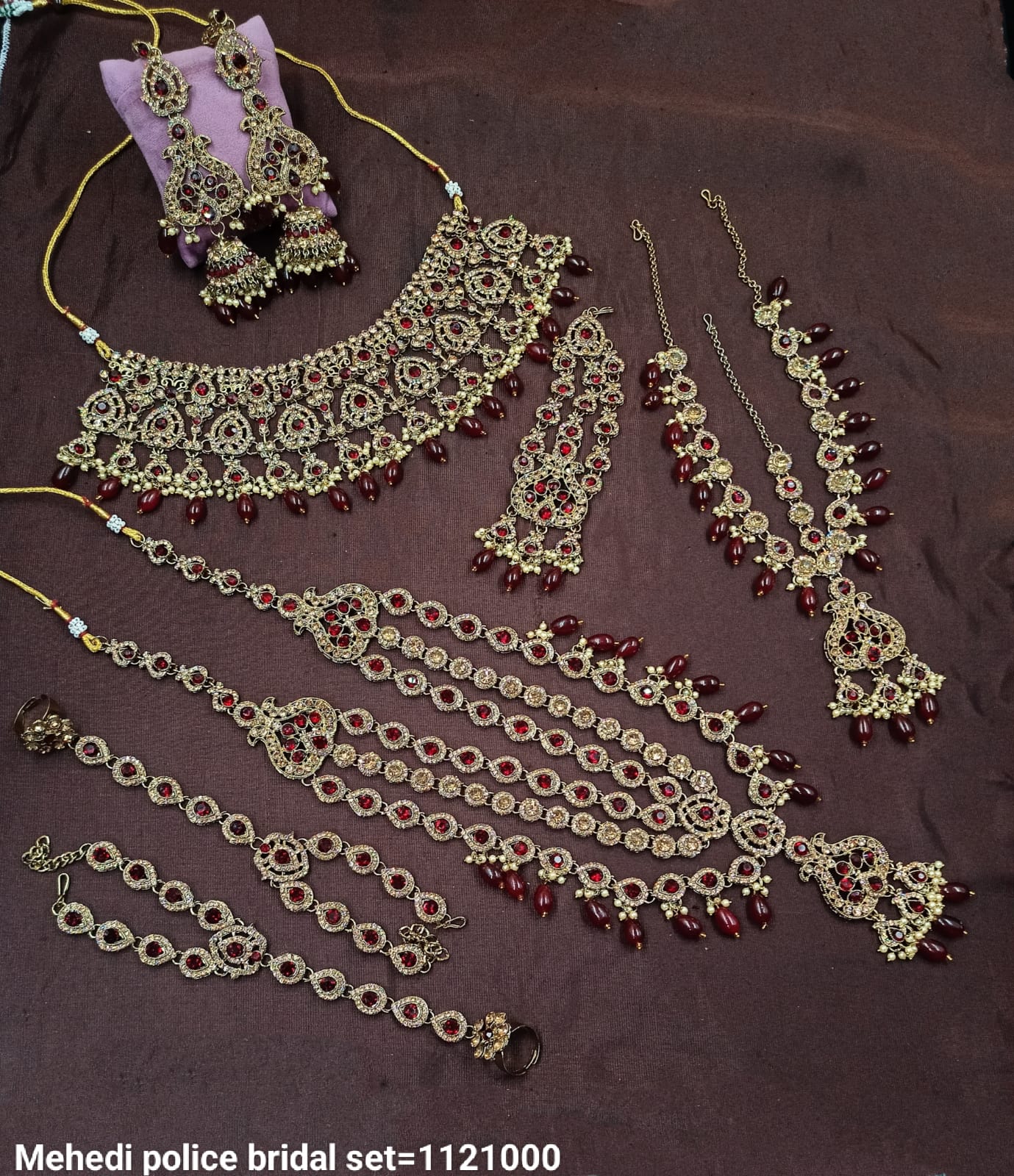 A premium bridal set adorned with a durable gold plating, crafted to provide a refined and elegant finish for the bride’s ensemble. It Has A Pack...