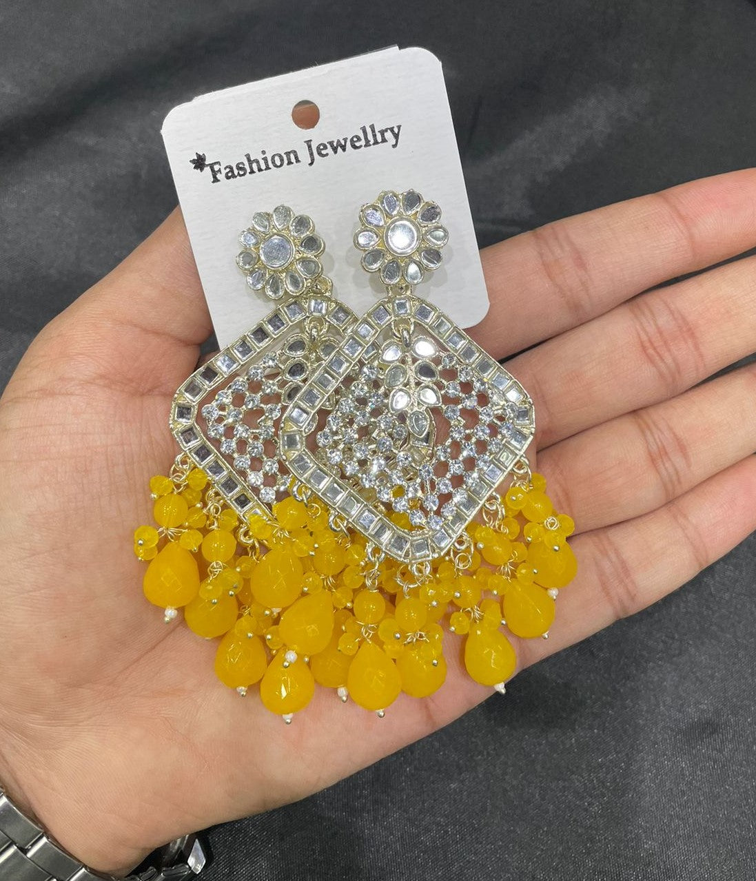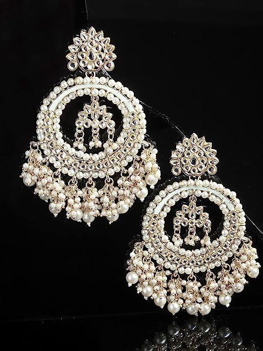 Large Traditional Indian Chandbali Earrings Beads & Pearls For Woman