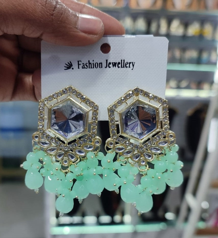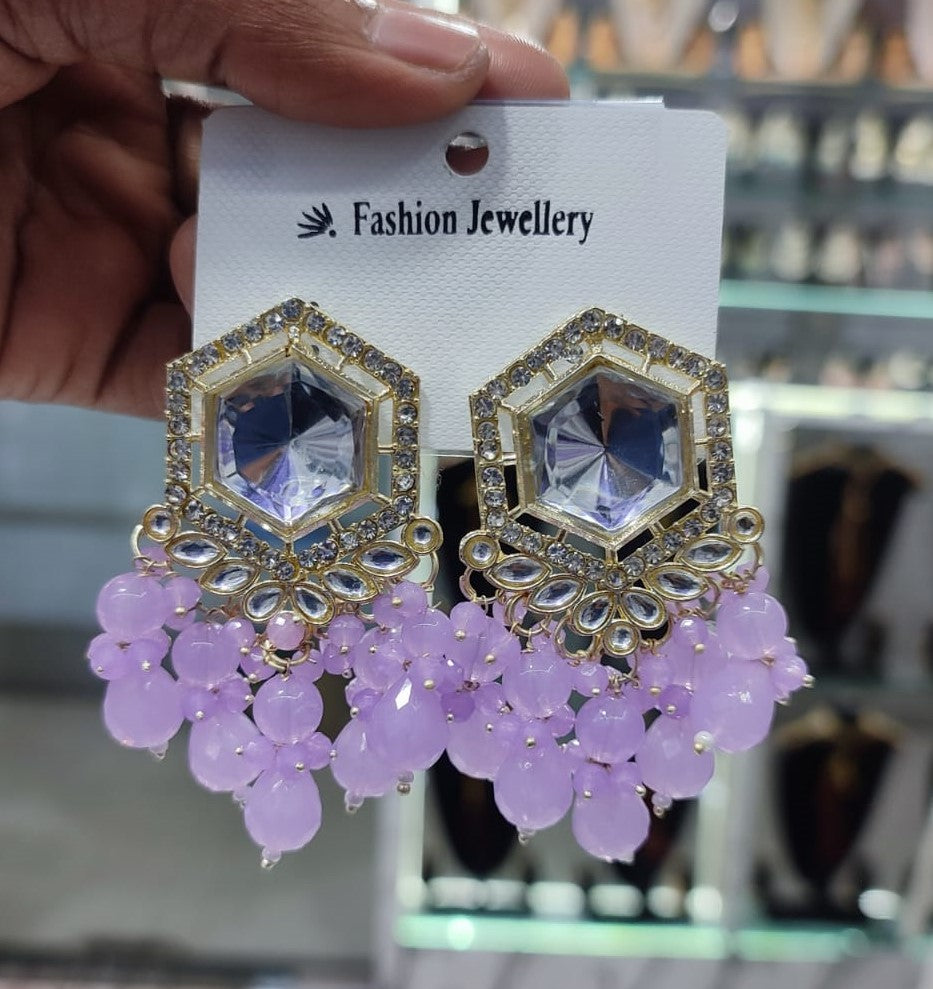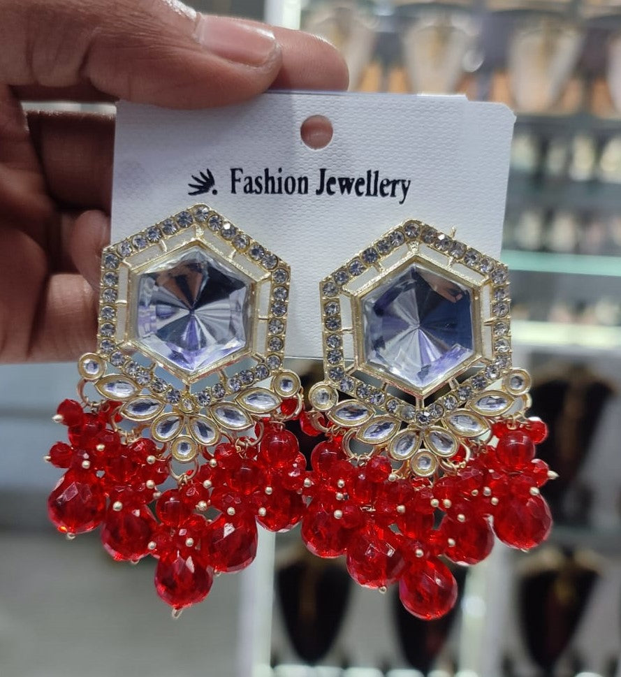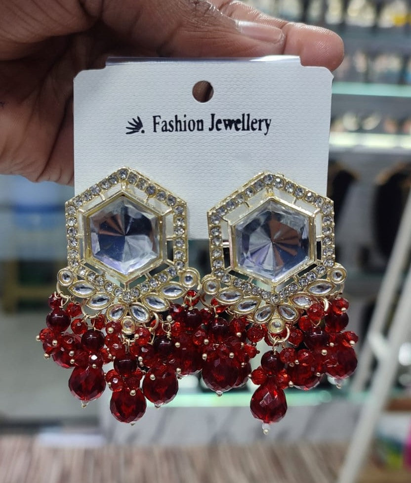 Traditional Hexagon Kundan Earrings Gold Plated Earrings for Woman Dangles