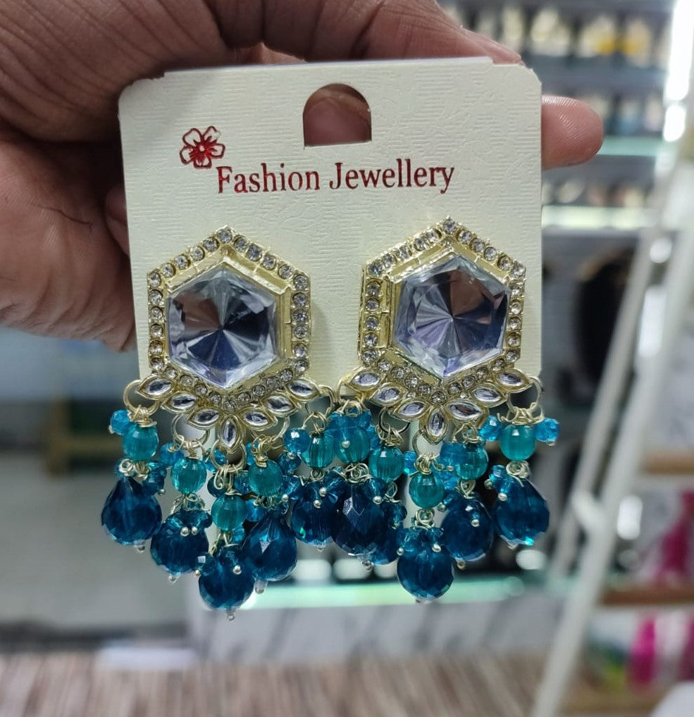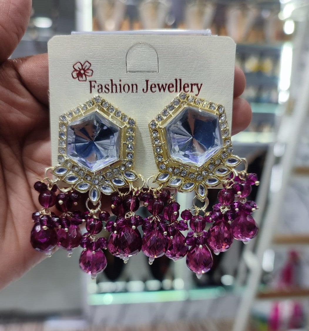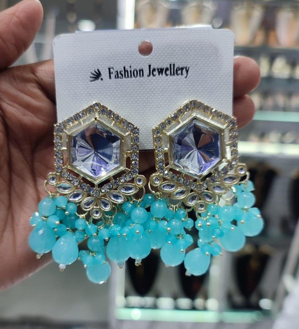 Traditional Hexagon Kundan Earrings Gold Plated Earrings for Woman Dangles