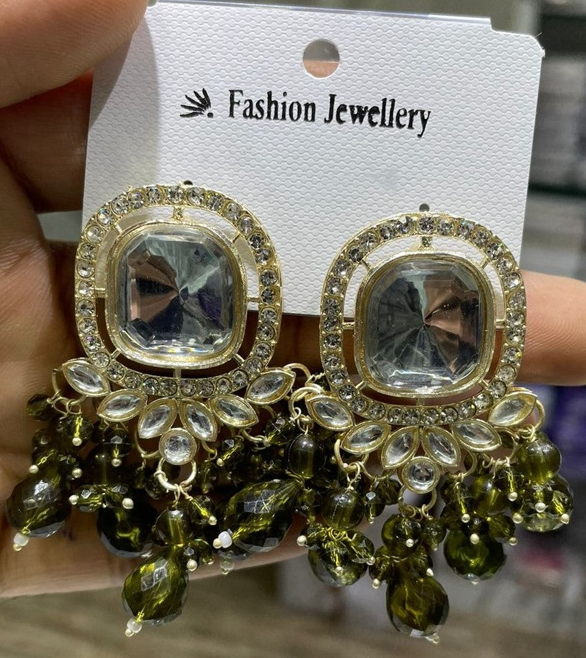 Traditional Forest Beaded Kundan Earrings with Brilliant Round Crystals