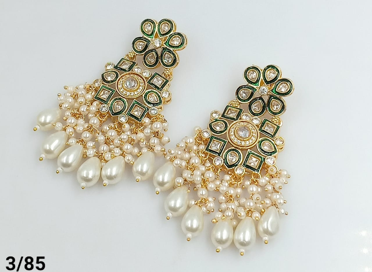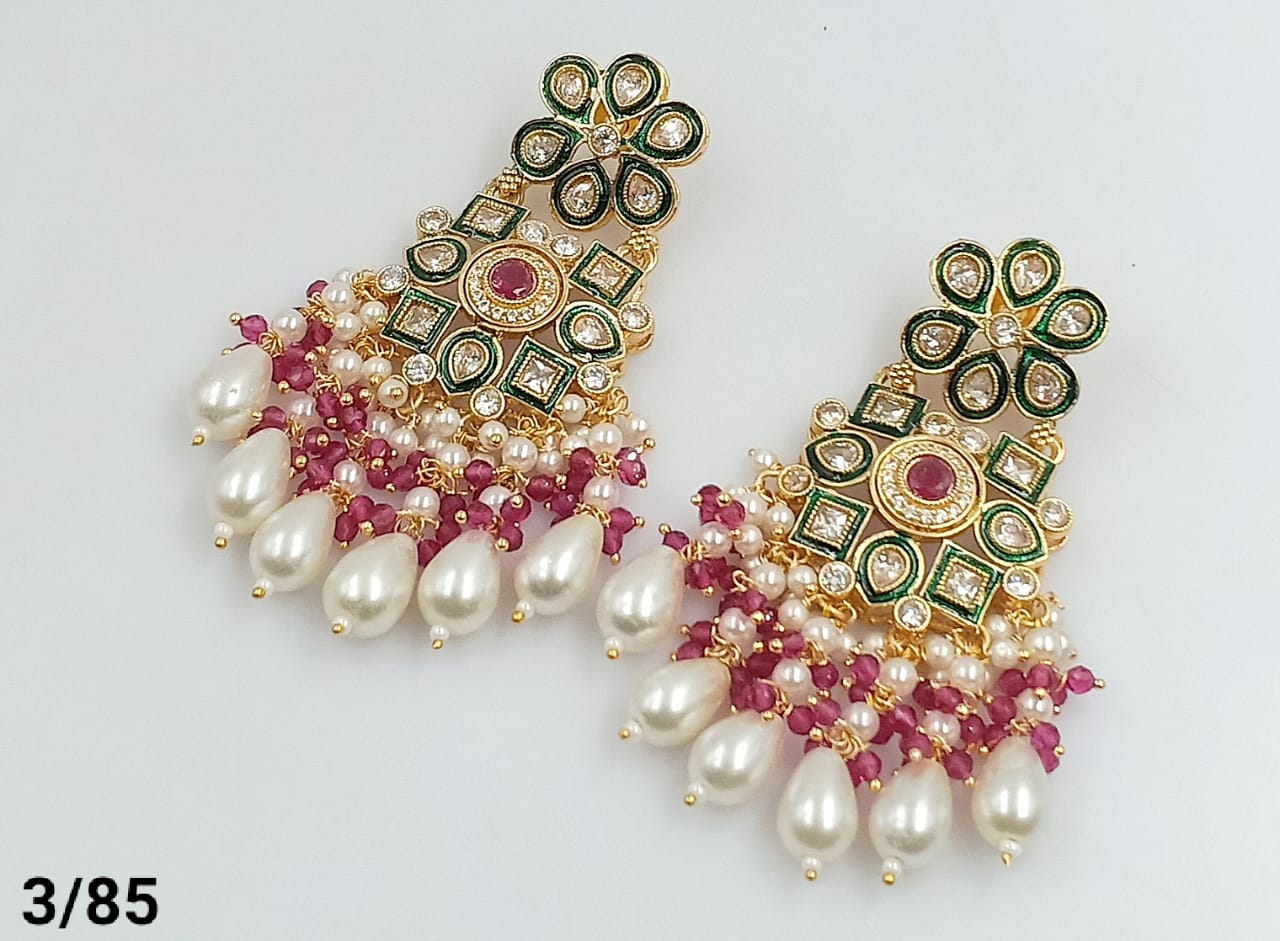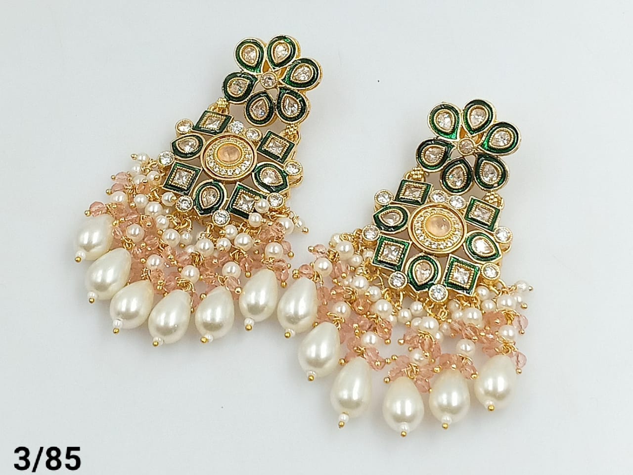 Statement Chandbali Earrings with Pearl & Bead Drops – Traditional Bridal Jewellery