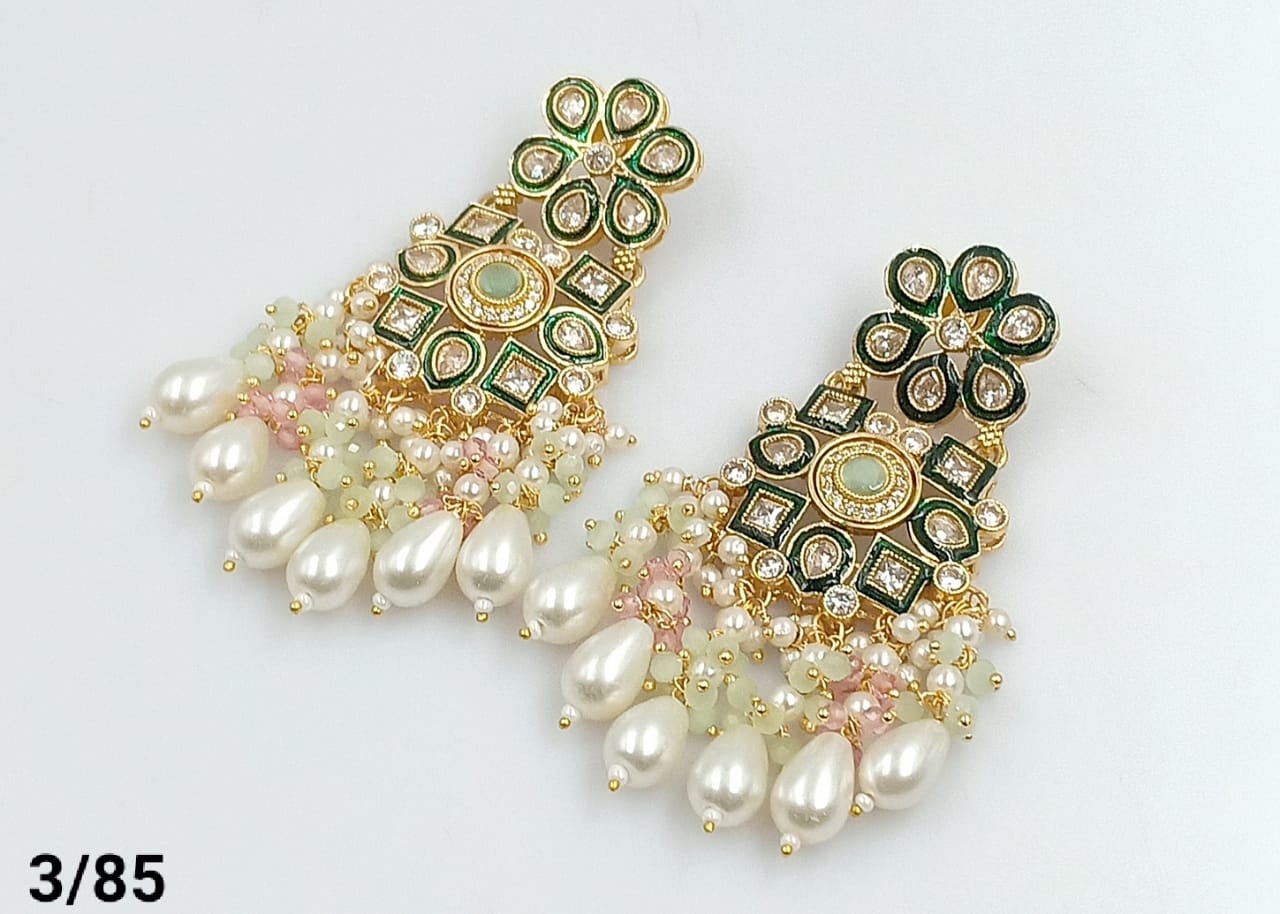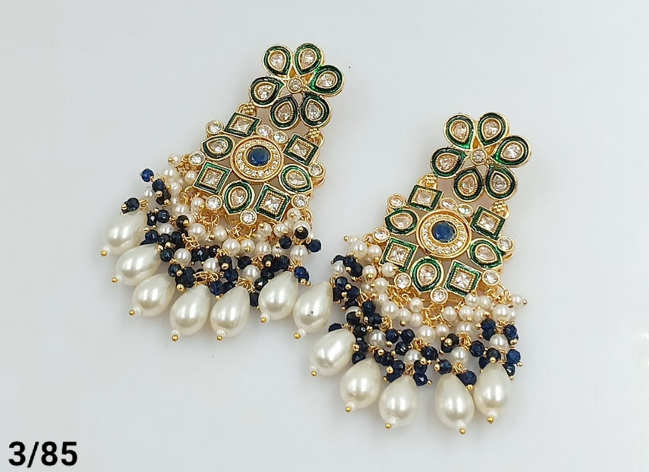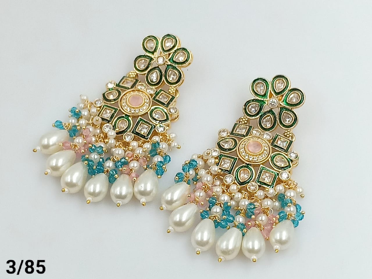 Statement Chandbali Earrings with Pearl & Bead Drops – Traditional Bridal Jewellery