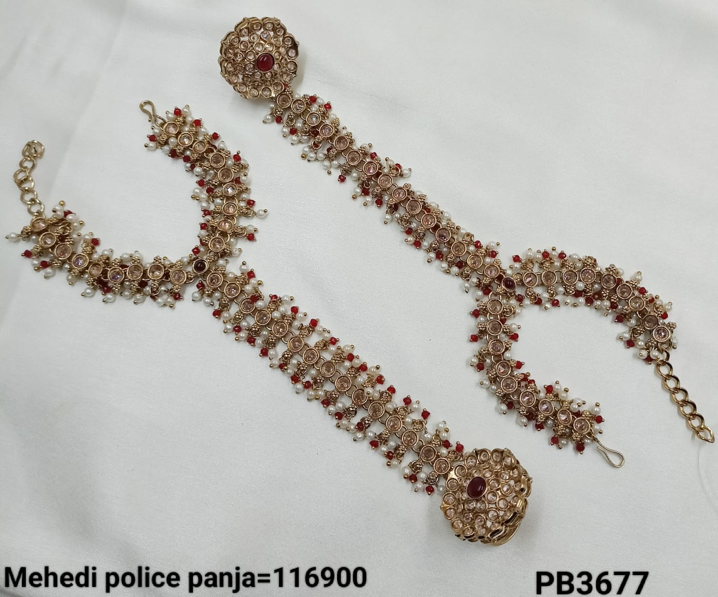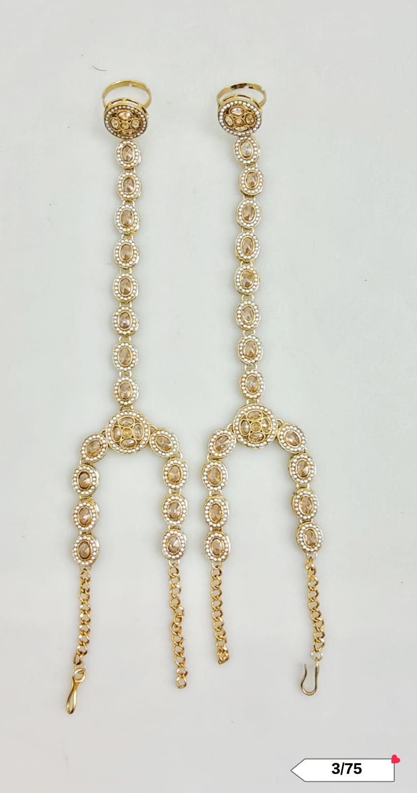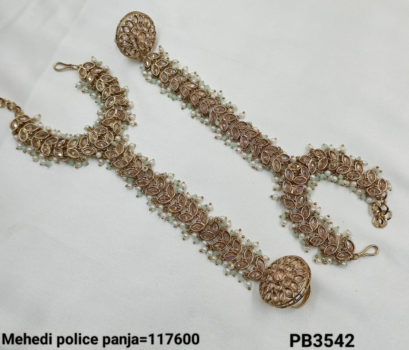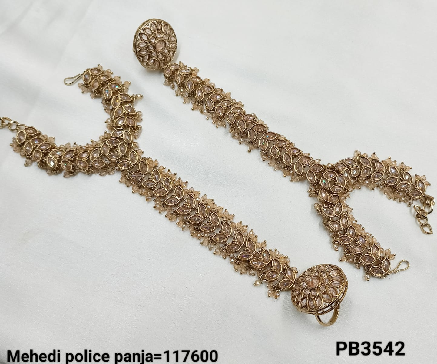 This traditional Hathpanja set features an antique gold plating, showcasing classic craftsmanship and timeless elegance. It Has A Pack Of 1 Hath Panja.Material : AlloyStone :...