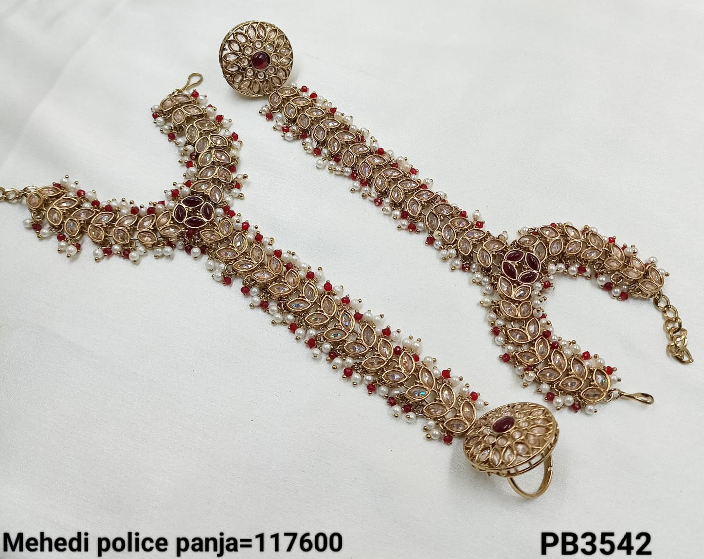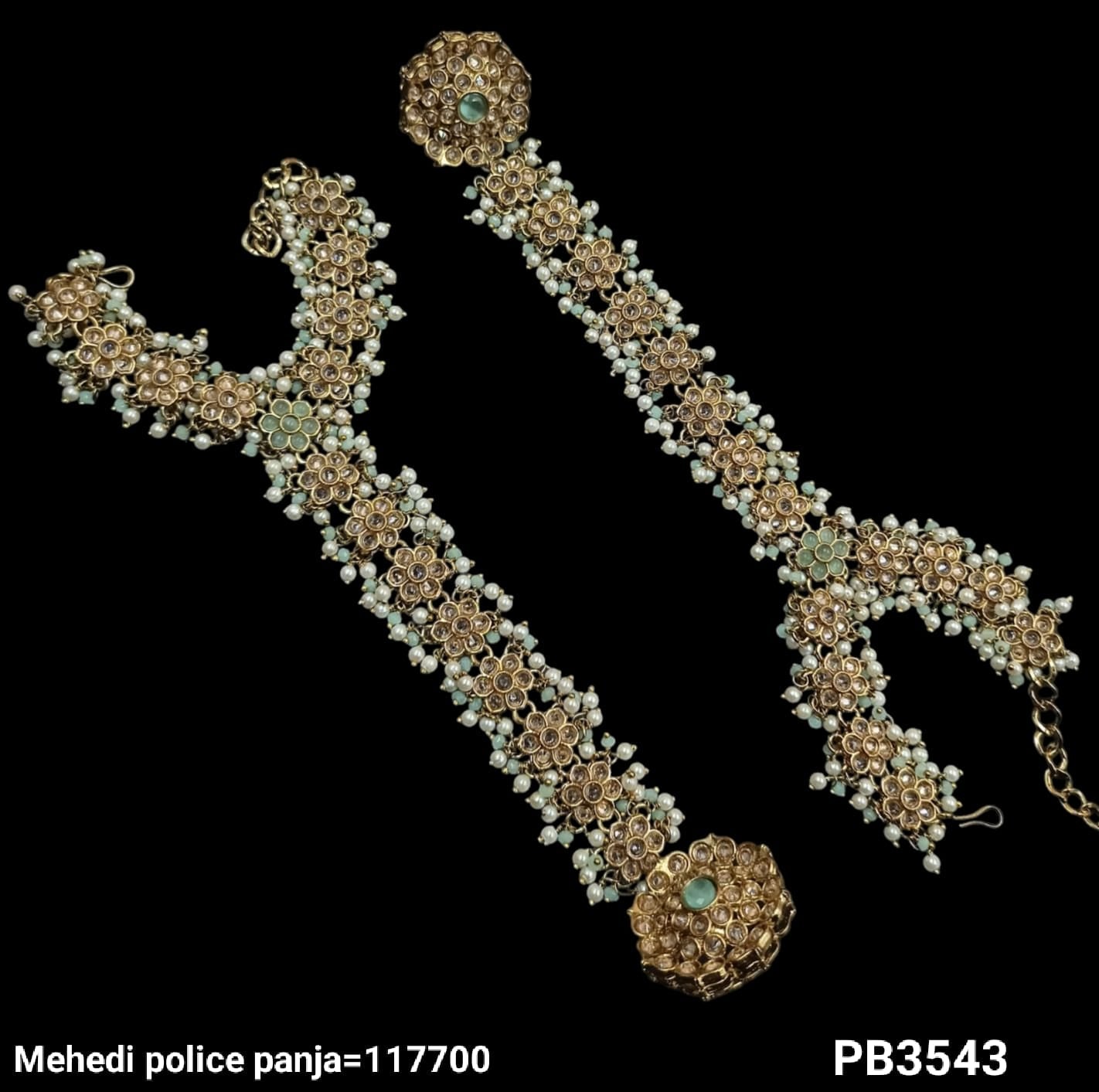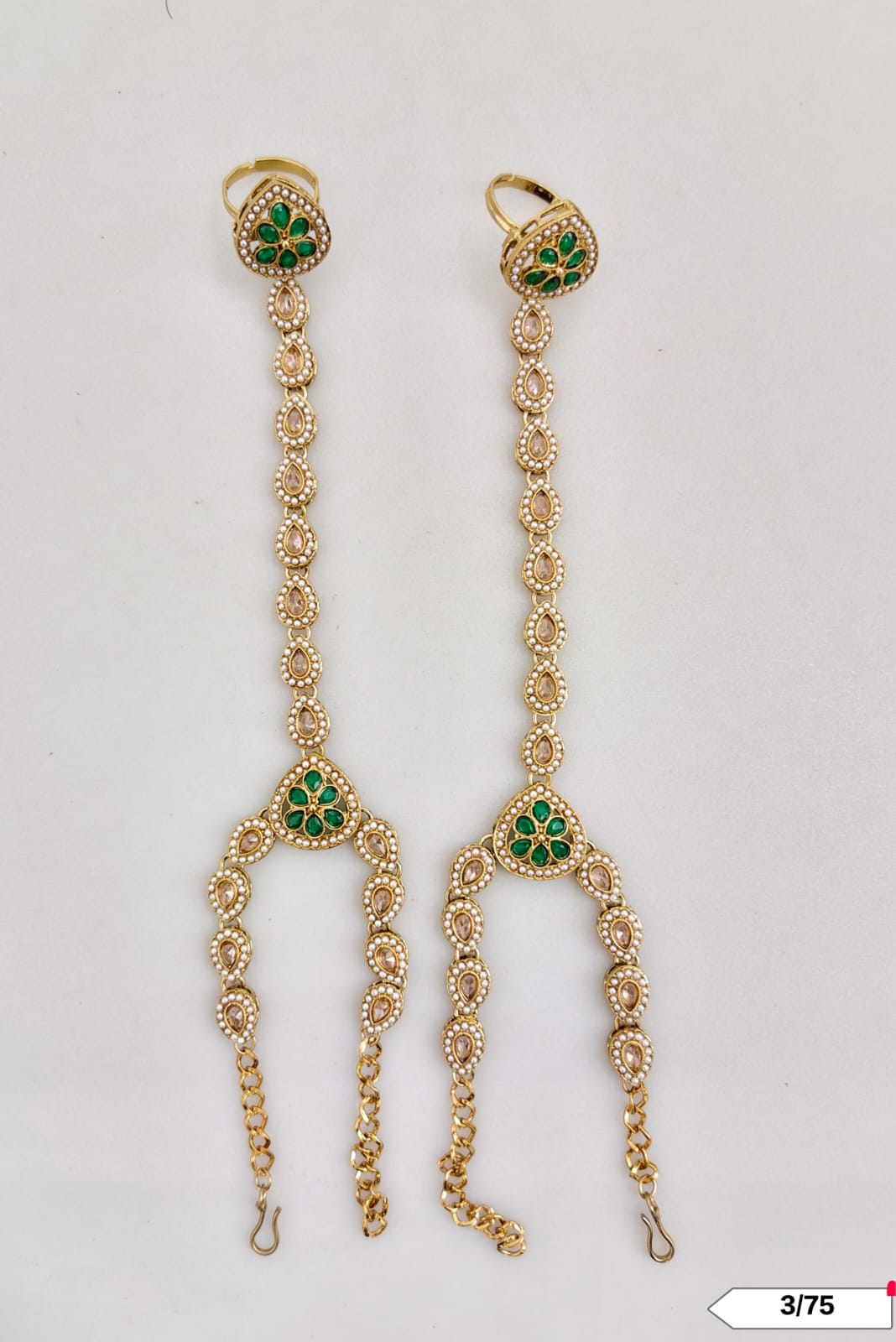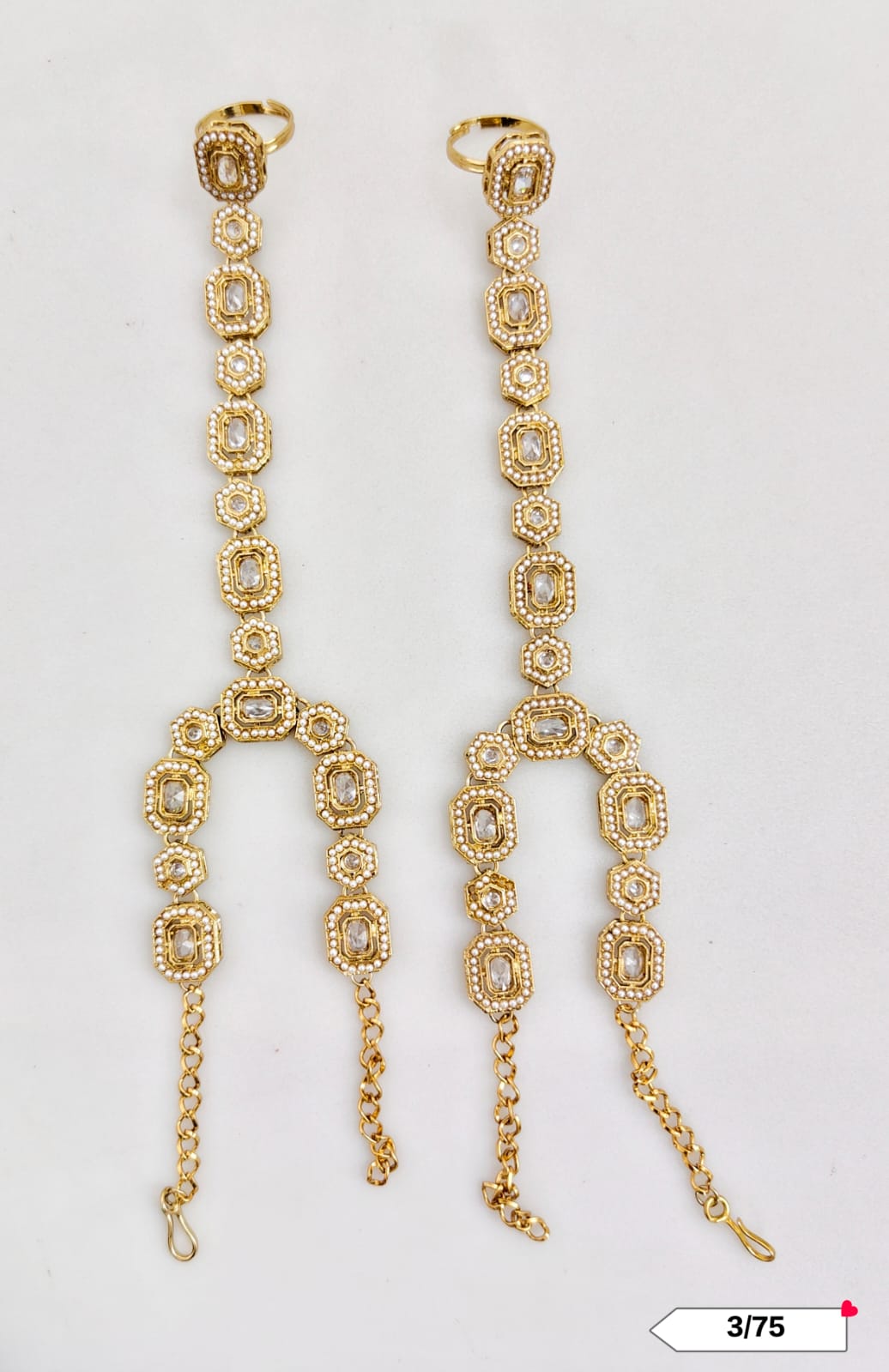 This traditional Hathpanja set features an antique gold plating, showcasing classic craftsmanship and timeless elegance. It Has A Pack Of 1 Hath Panja.Material : AlloyStone :...