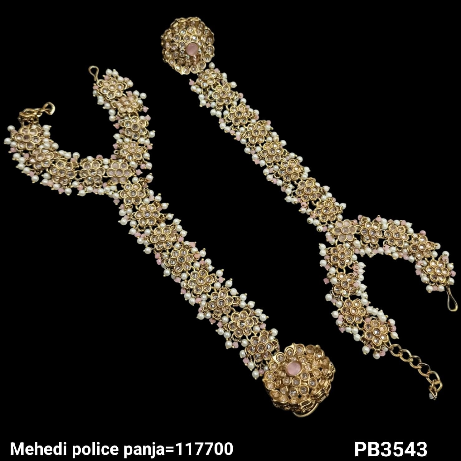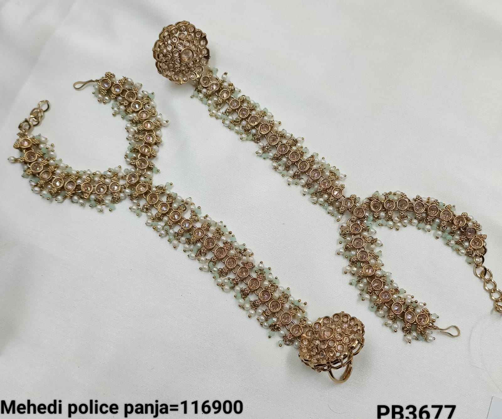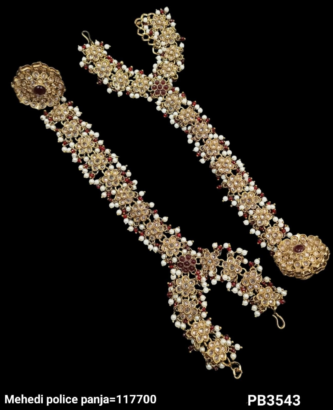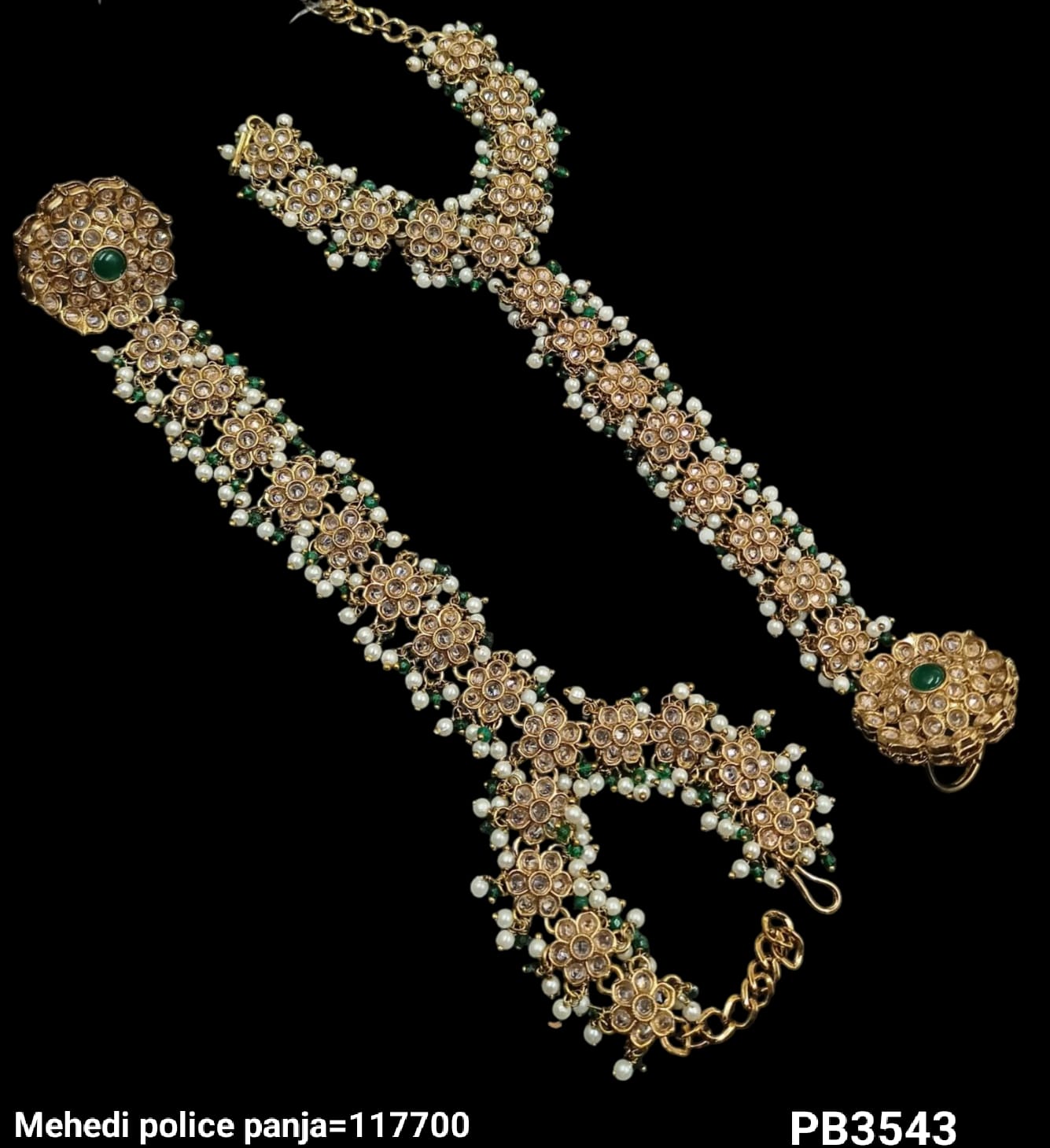 This traditional Hathpanja set features an antique gold plating, showcasing classic craftsmanship and timeless elegance. It Has A Pack Of 1 Hath Panja.Material : AlloyStone :...
