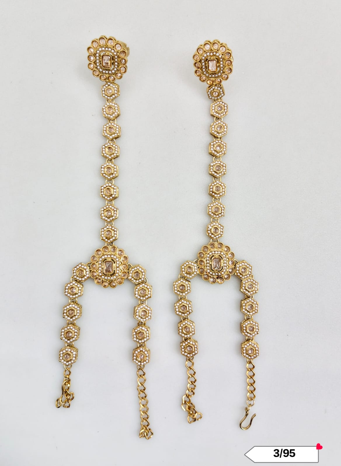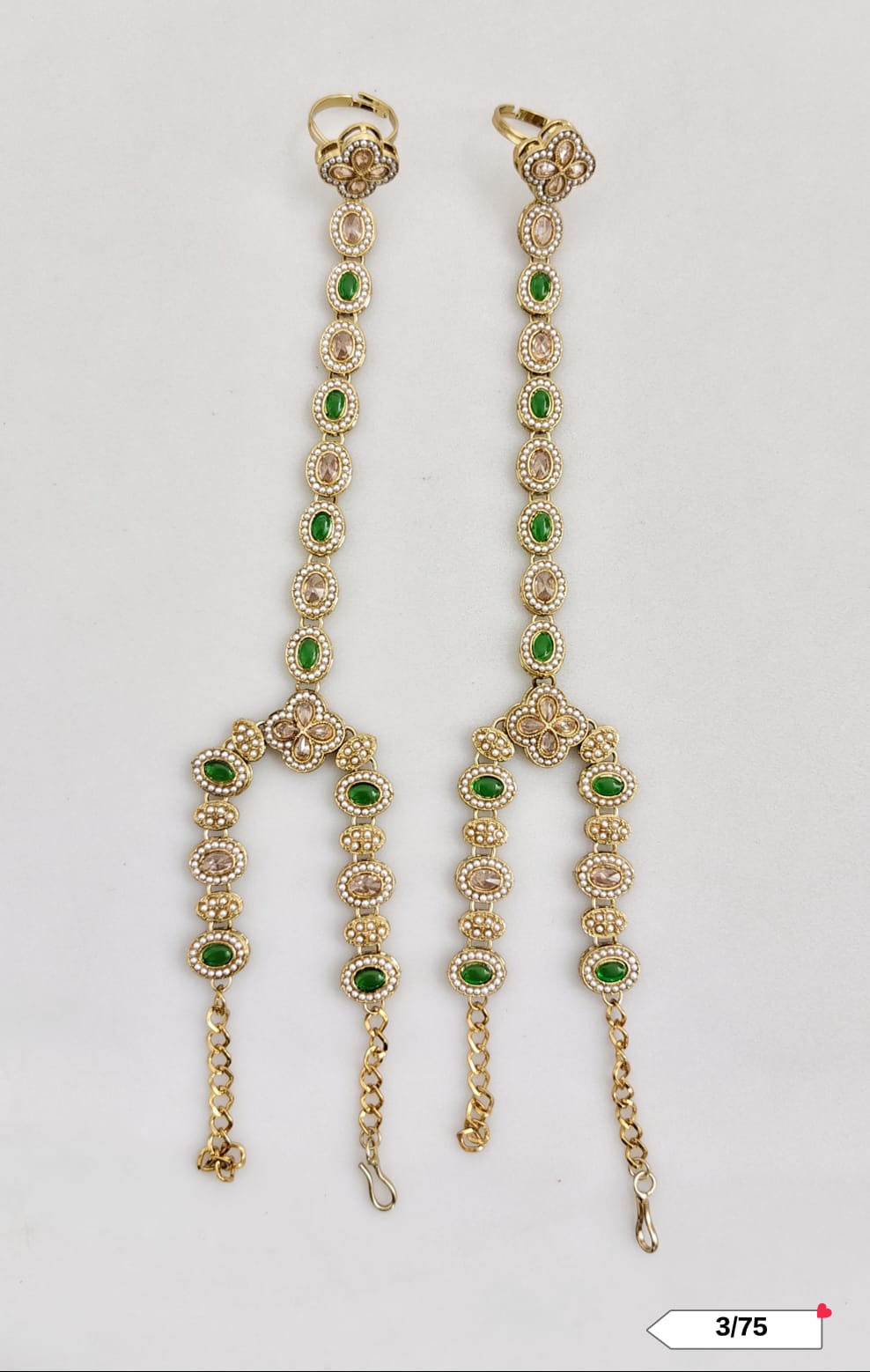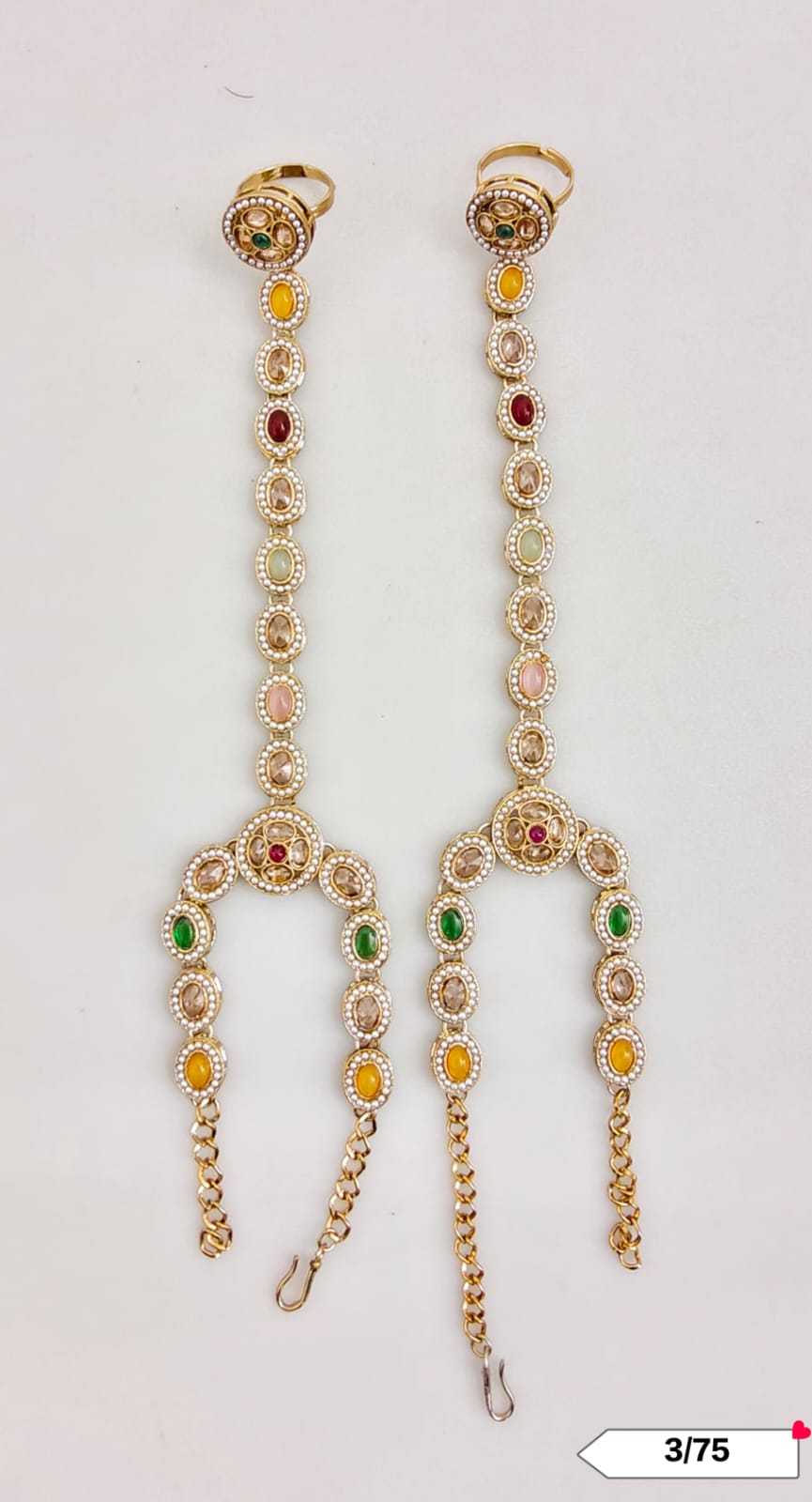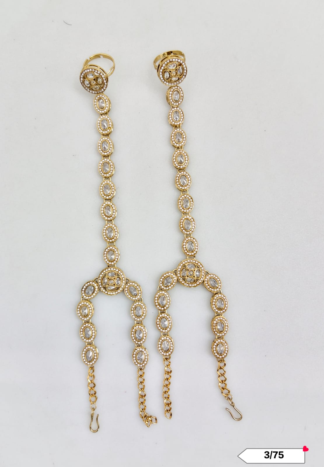 This traditional Hathpanja set features an antique gold plating, showcasing classic craftsmanship and timeless elegance. It Has A Pack Of 1 Hath Panja.Material : AlloyStone :...