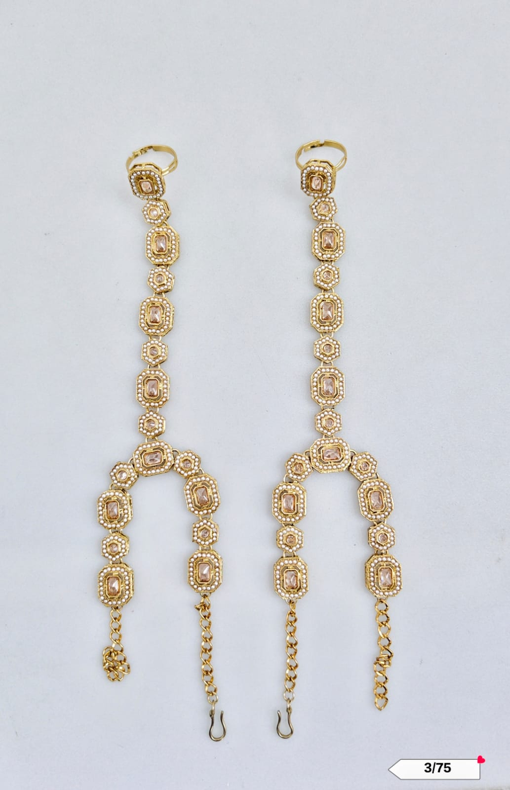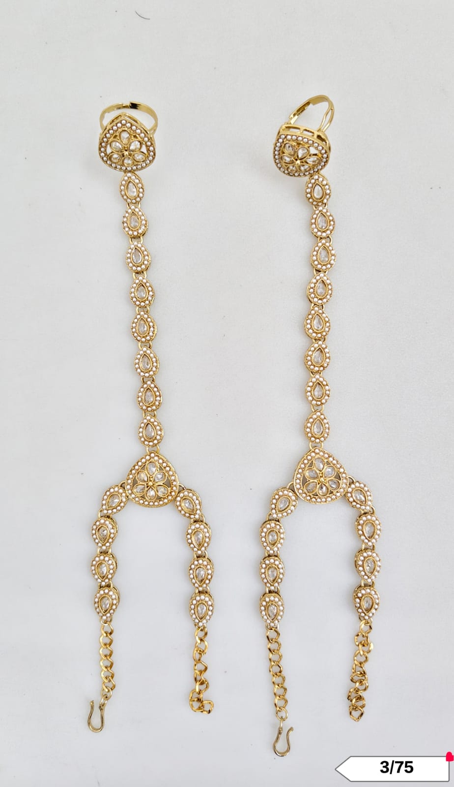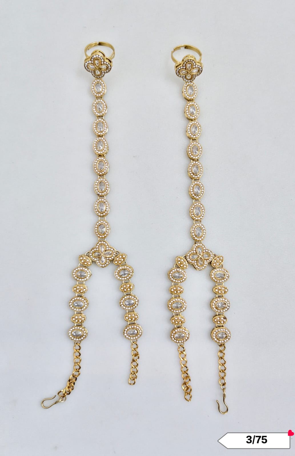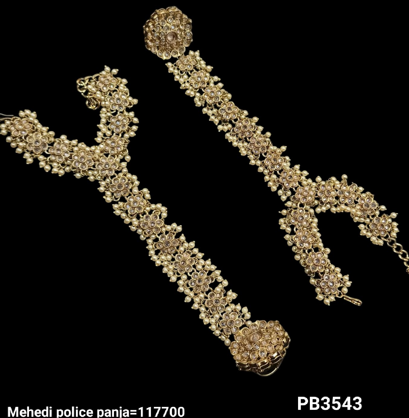 This Traditional Hathpanja Set is meticulously crafted with antique gold plating, reflecting timeless elegance and cultural heritage. It Has A Pack Of 1 Hath Panja.Material :...