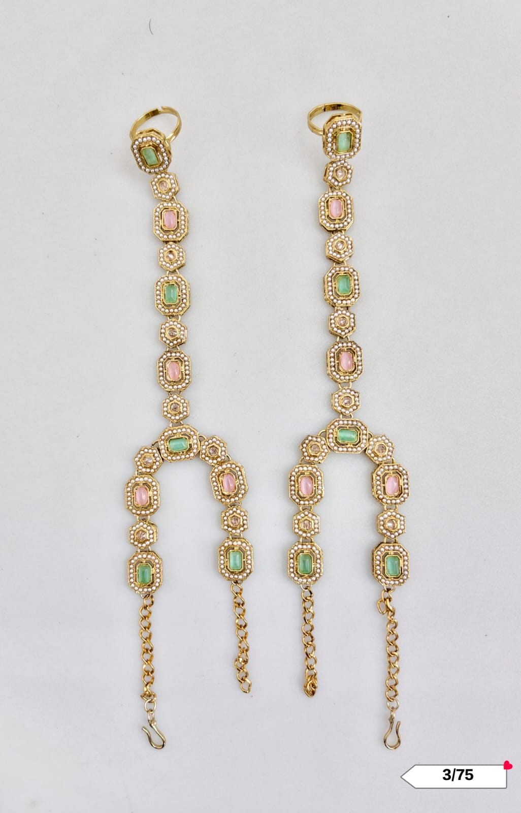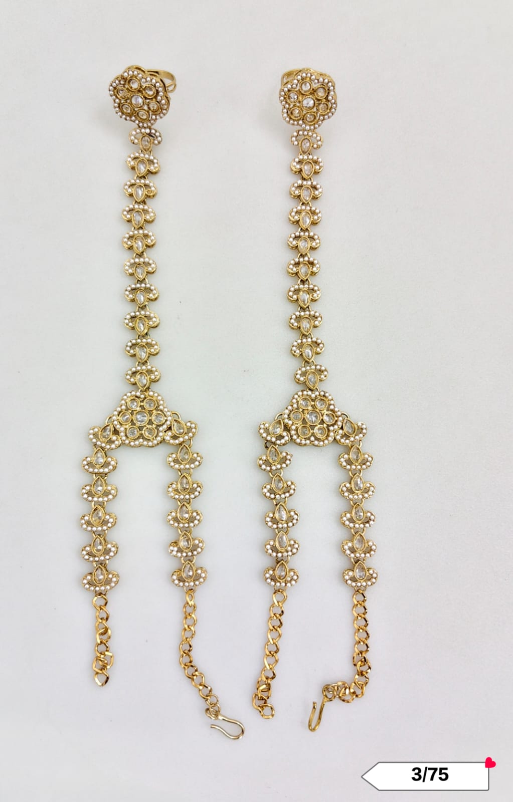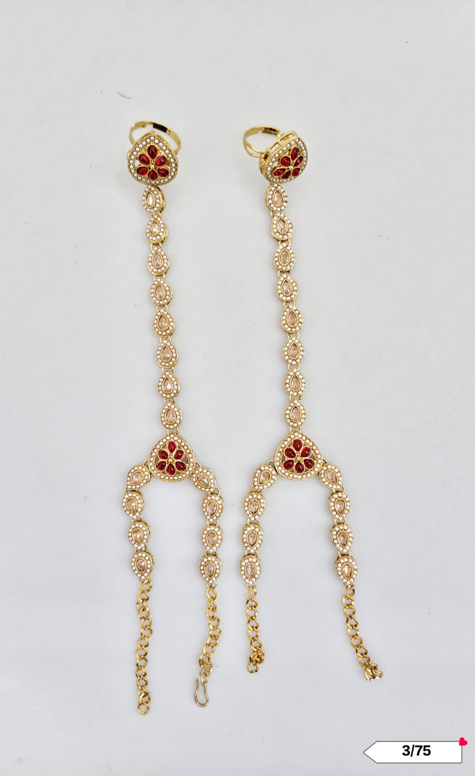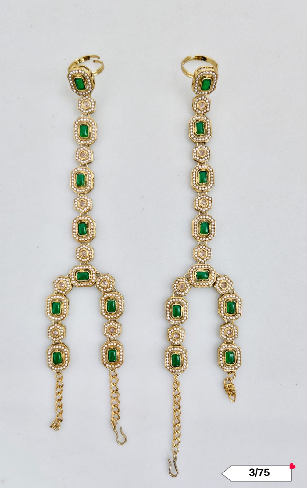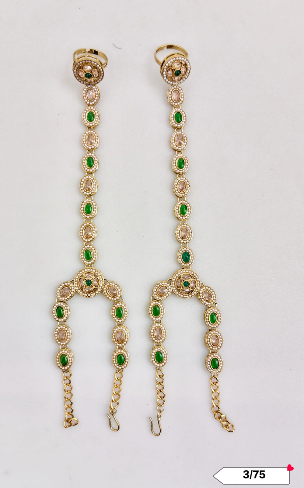 This Traditional Hathpanja Set is meticulously crafted with antique gold plating, reflecting timeless elegance and cultural heritage. It Has A Pack Of 1 Hath Panja.Material :...