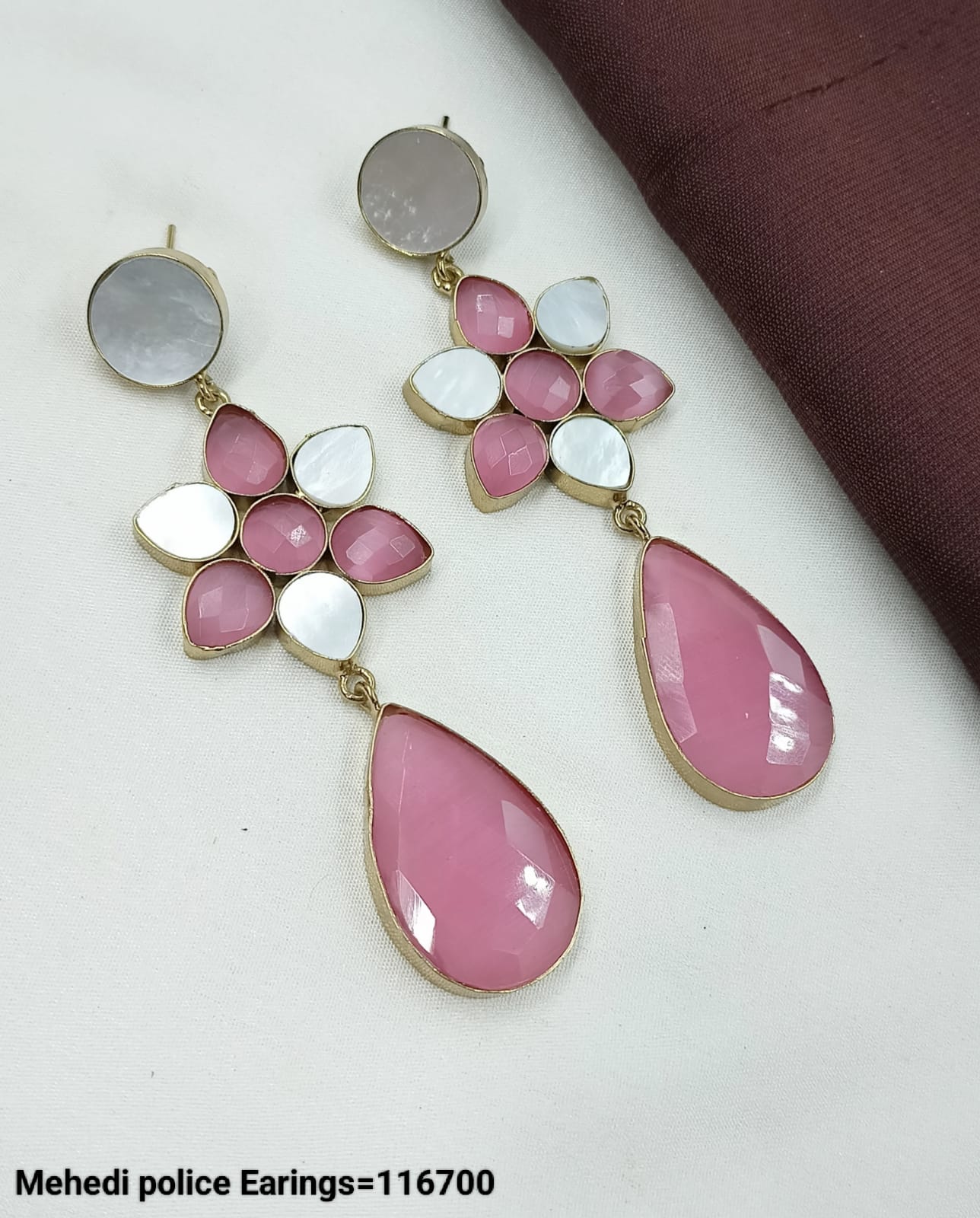 Elevate your accessory game with these exquisitely crafted artisan dangle earrings. Featuring a striking combination of geometric shapes and elegant stone settings, these earrings offer a...