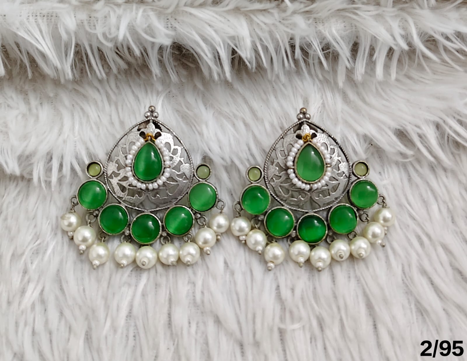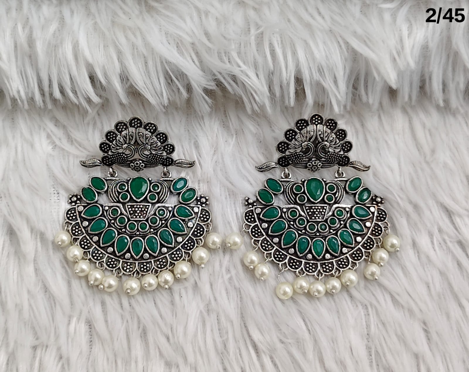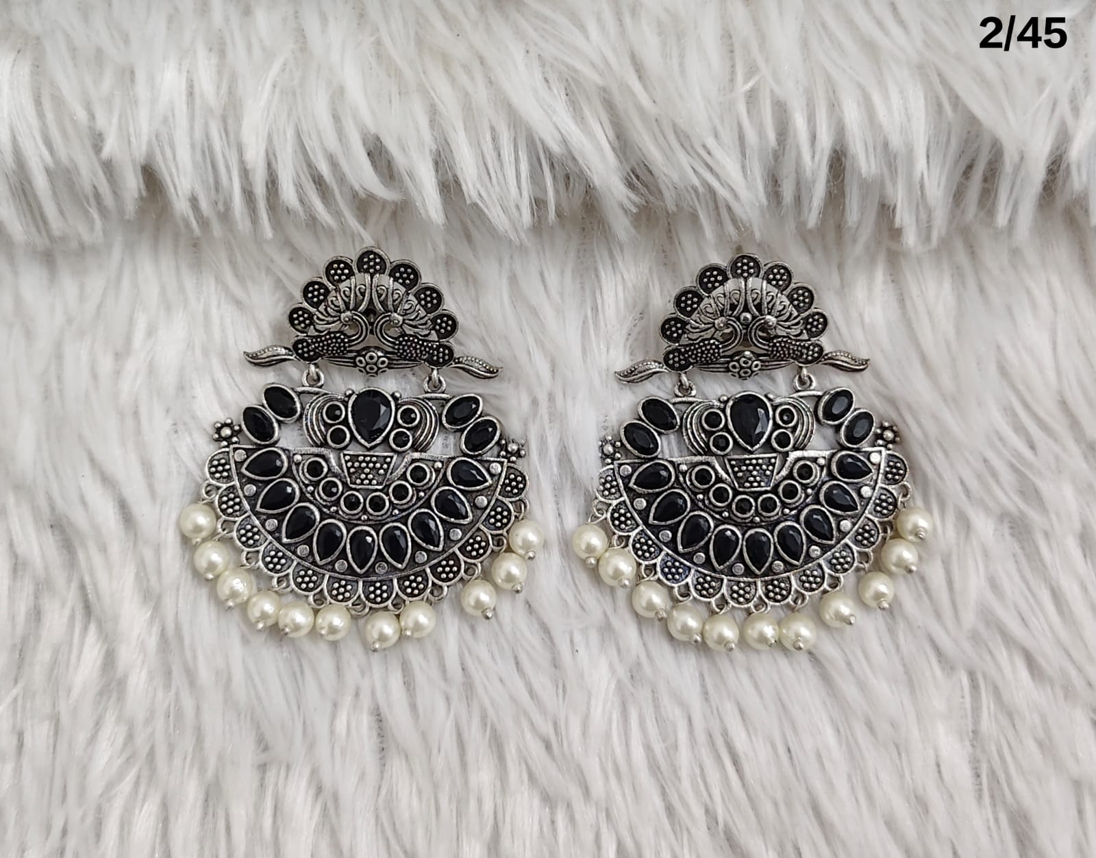 Elegant Oxidized Silver Earrings with Pearls – Traditional Indian Jewelry