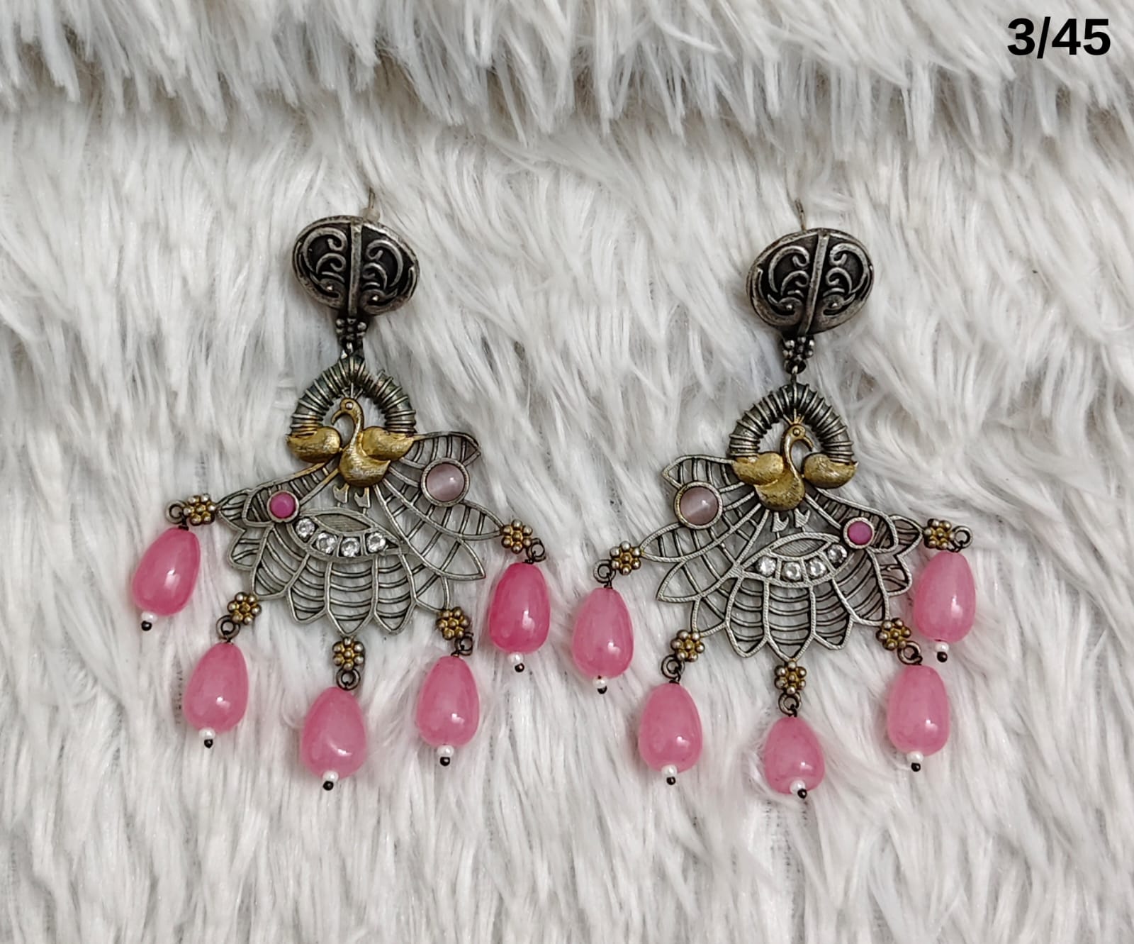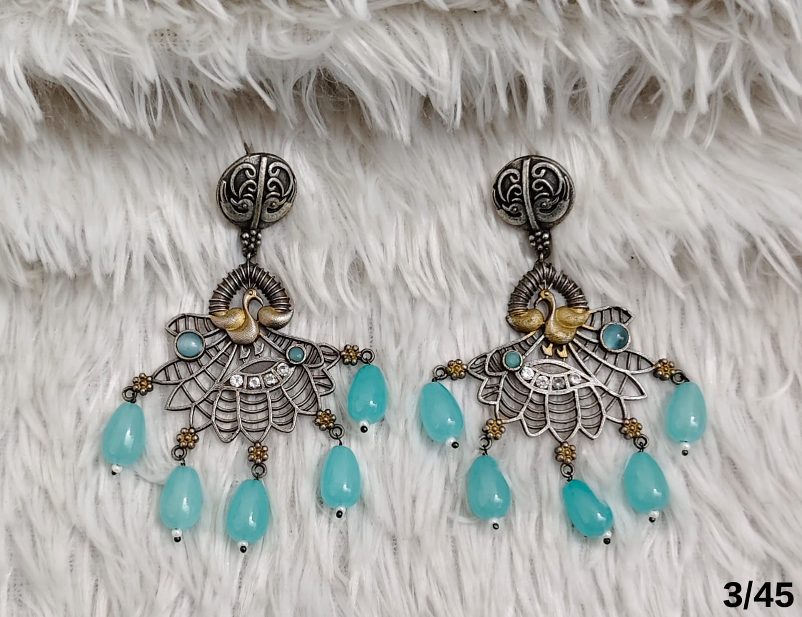 Oxidised Peacock Drop Earrings with Beaded Danglers – Traditional Design