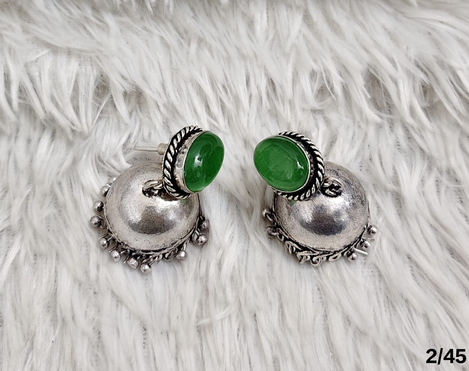 Minimal Oxidized Dome Jhumka Earrings with Stone Stud