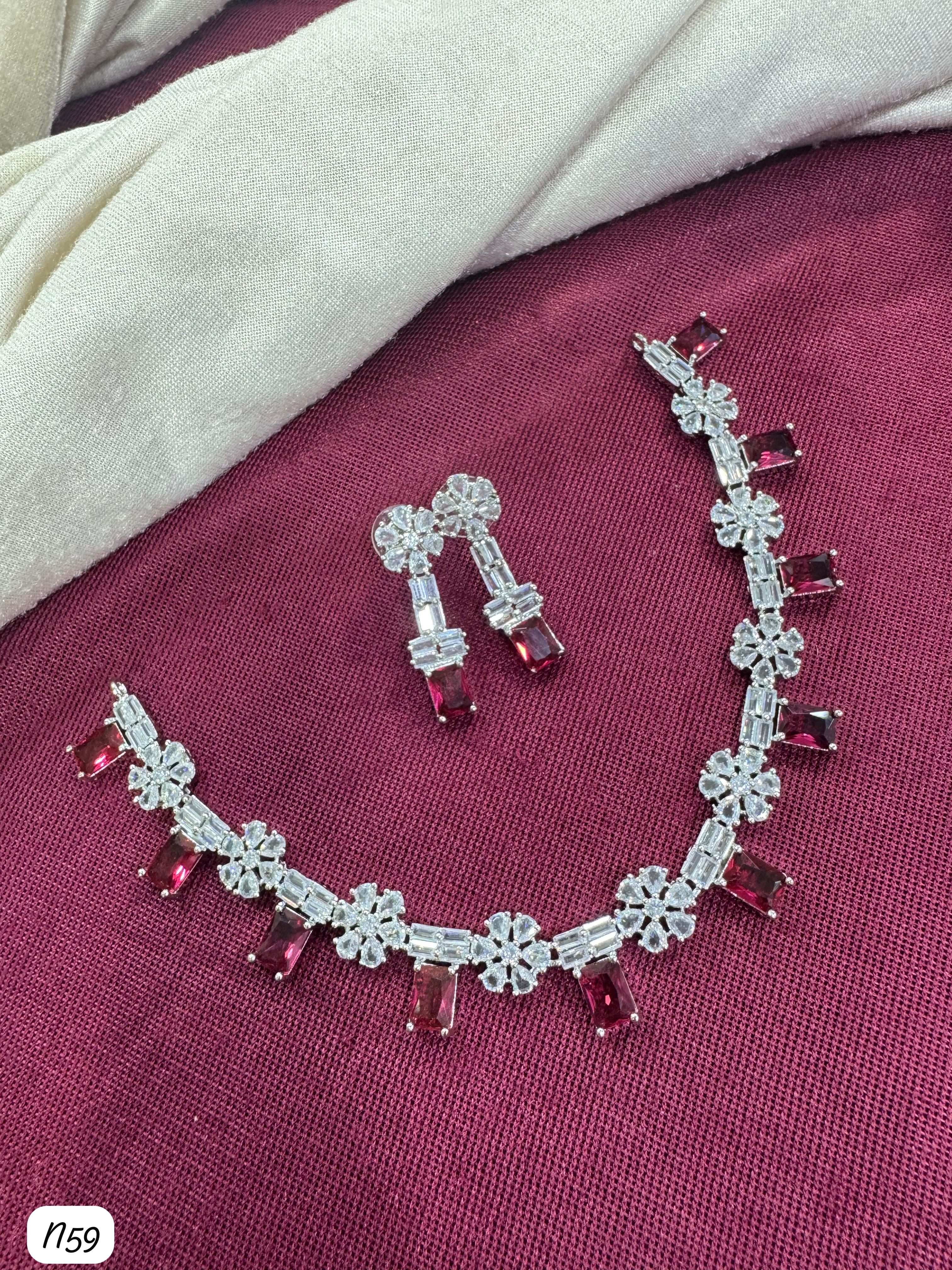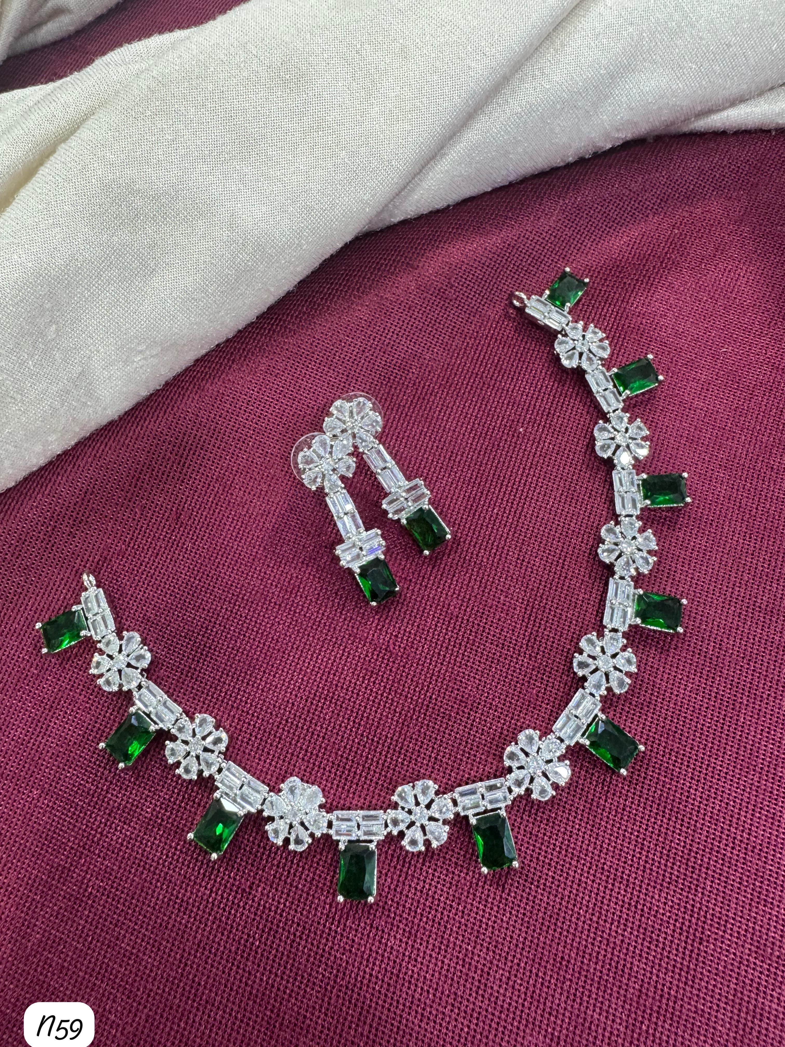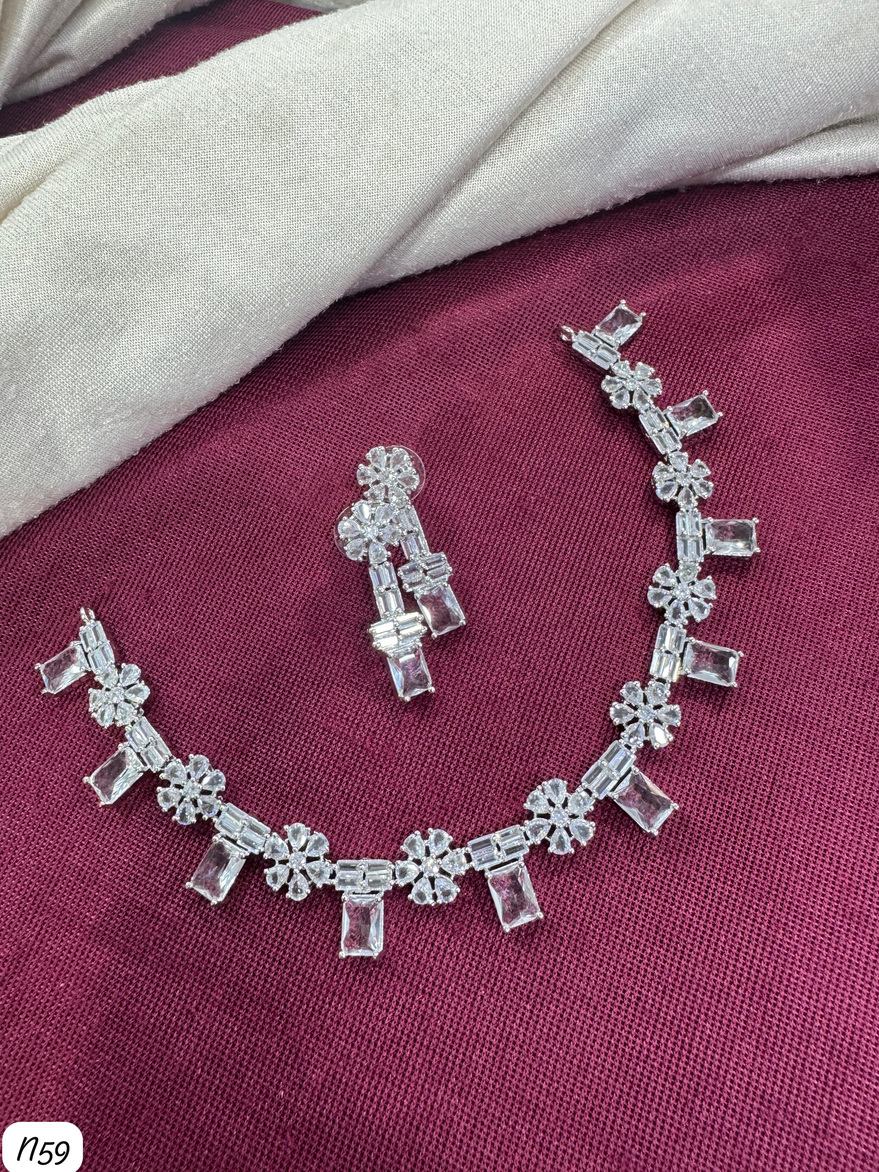 Floral Baguette AD Stone Necklace Set with Earrings – Bridal & Party Wear Jewellery