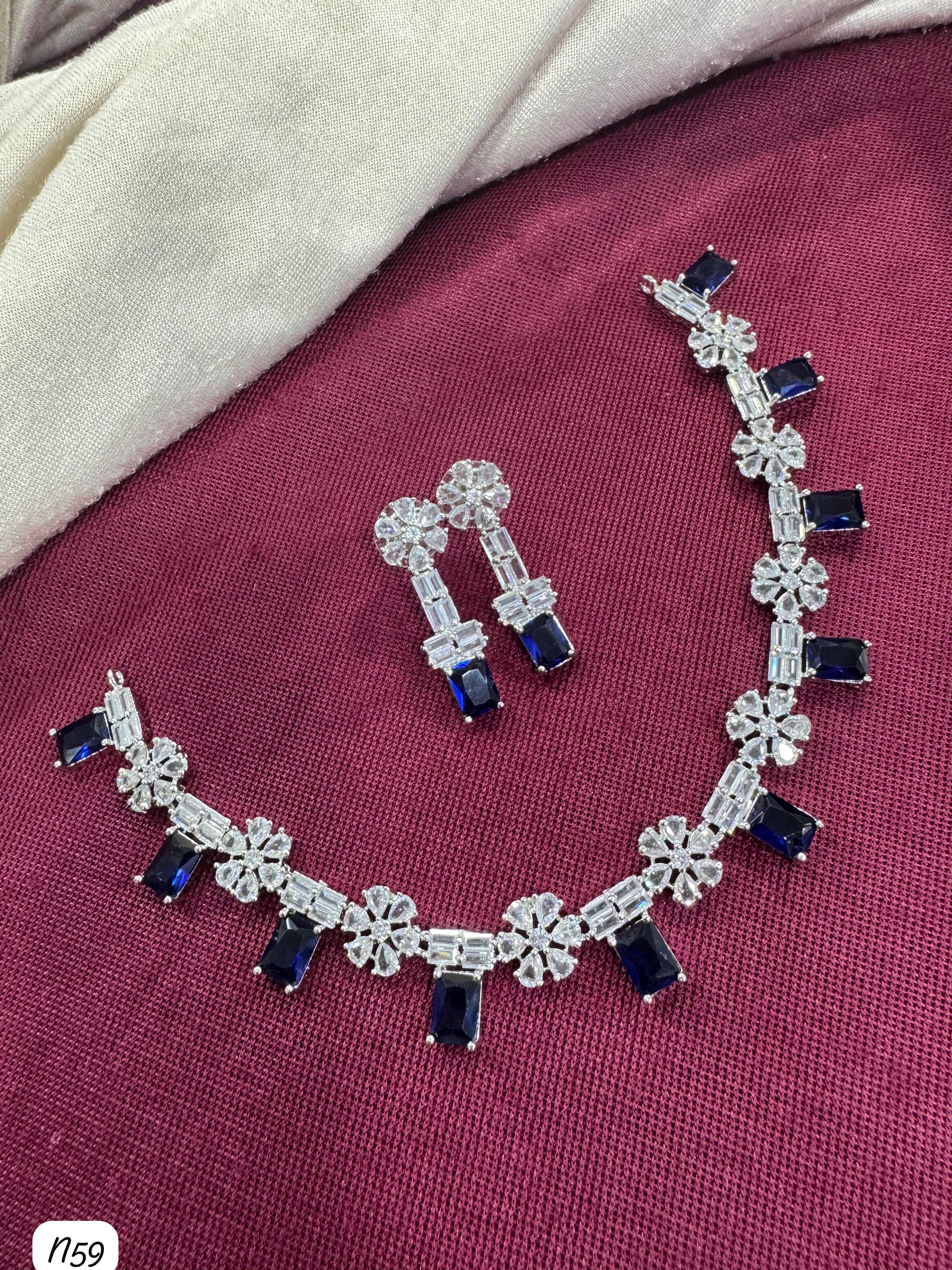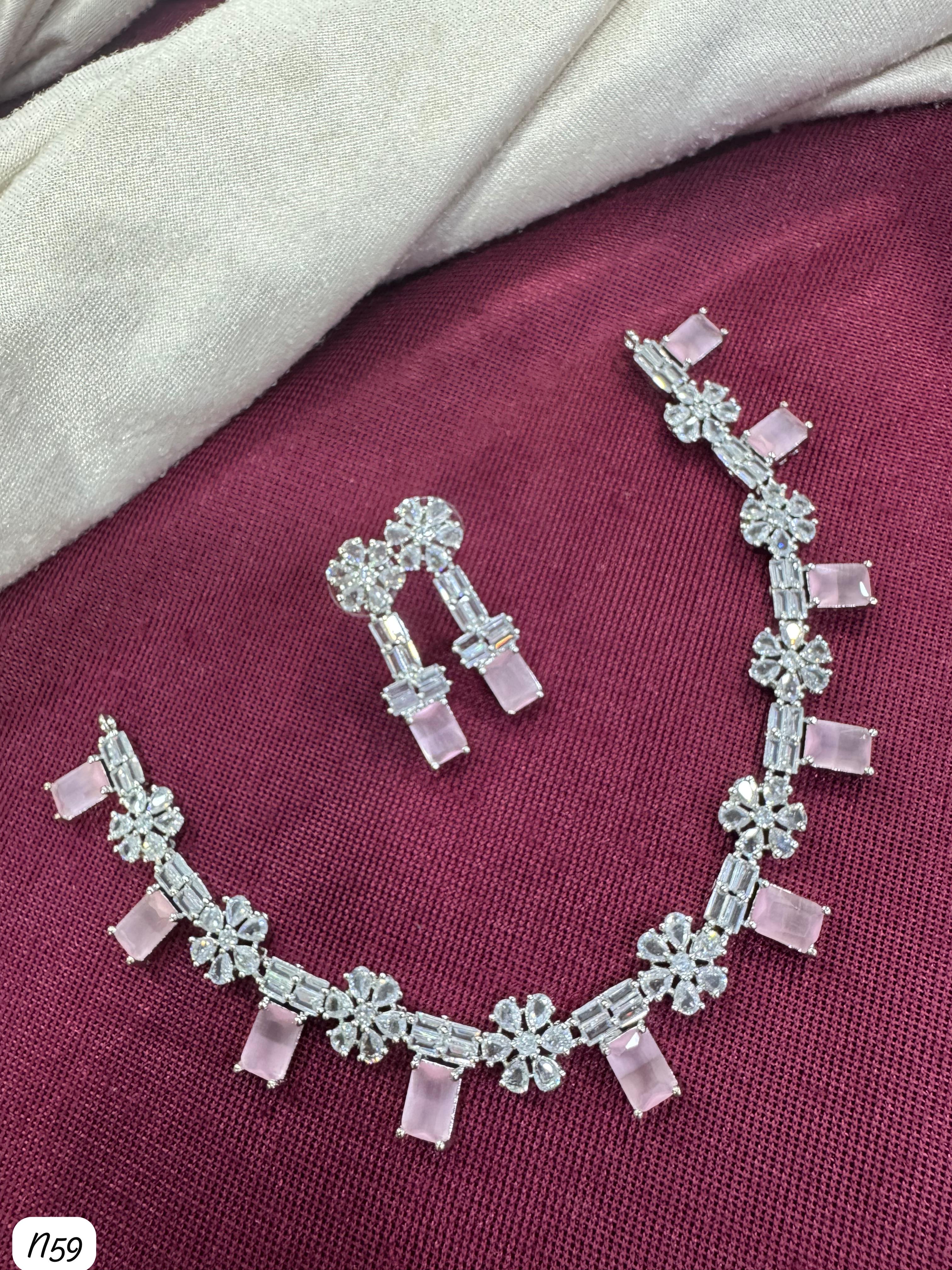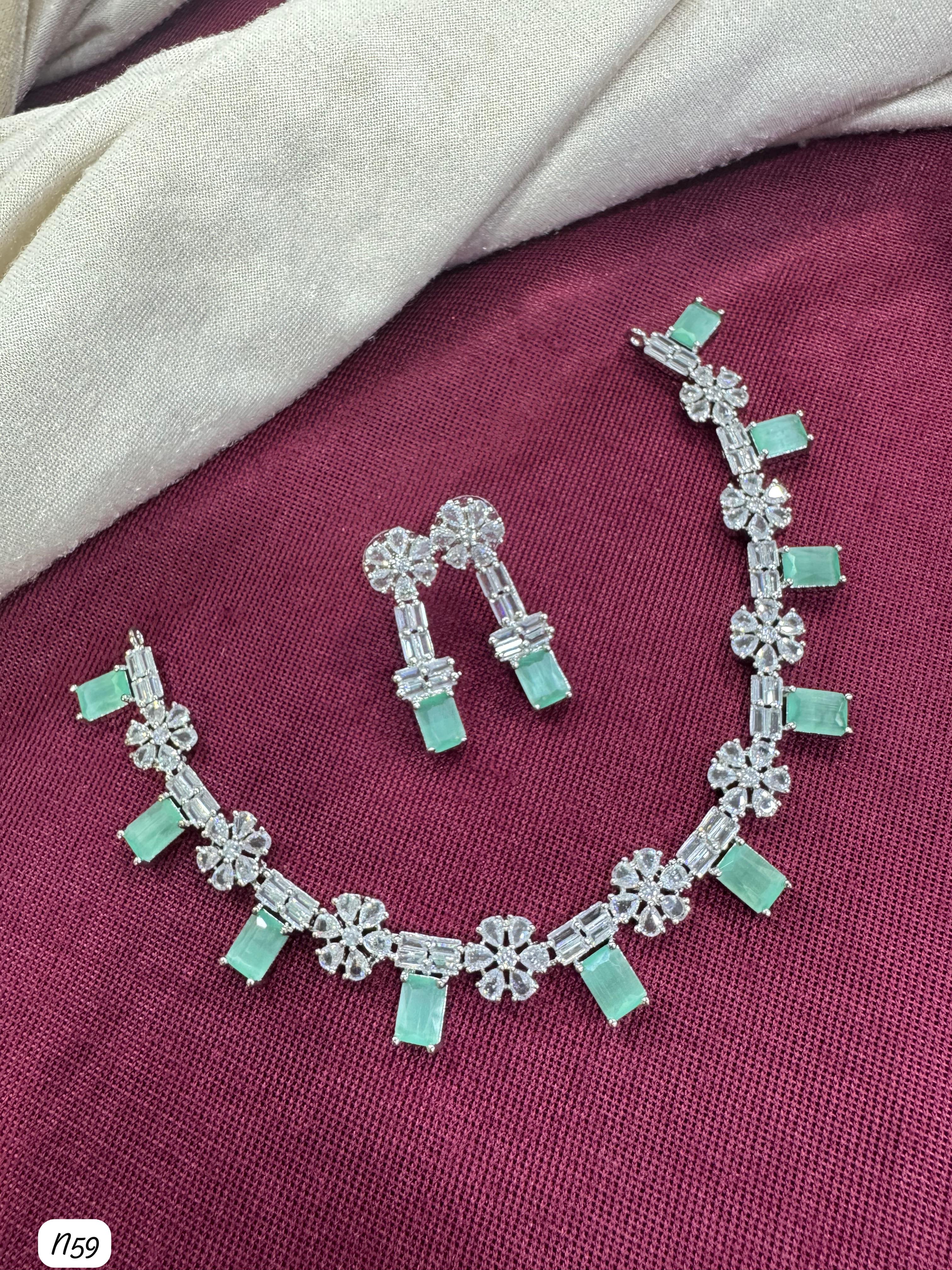 Floral Baguette AD Stone Necklace Set with Earrings – Bridal & Party Wear Jewellery