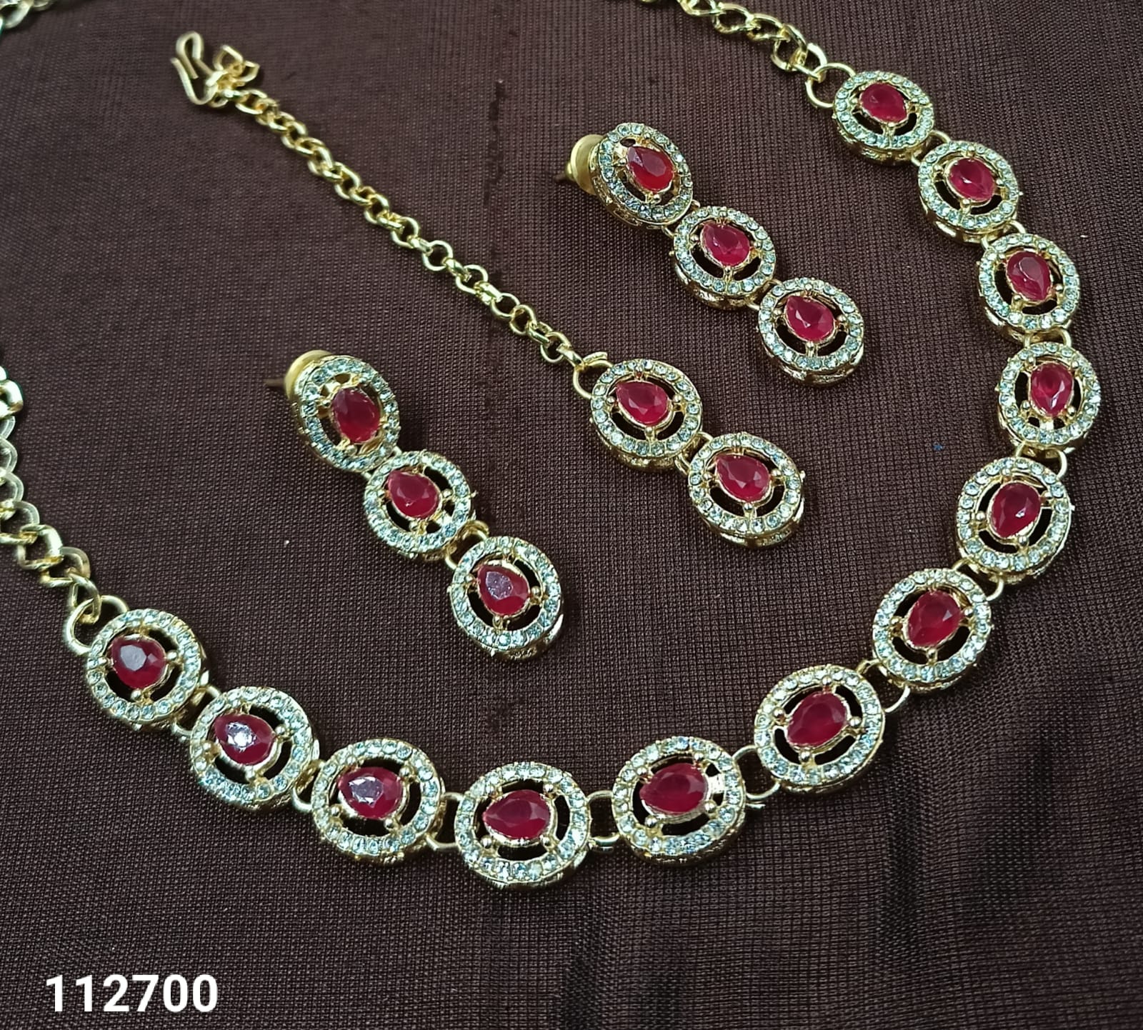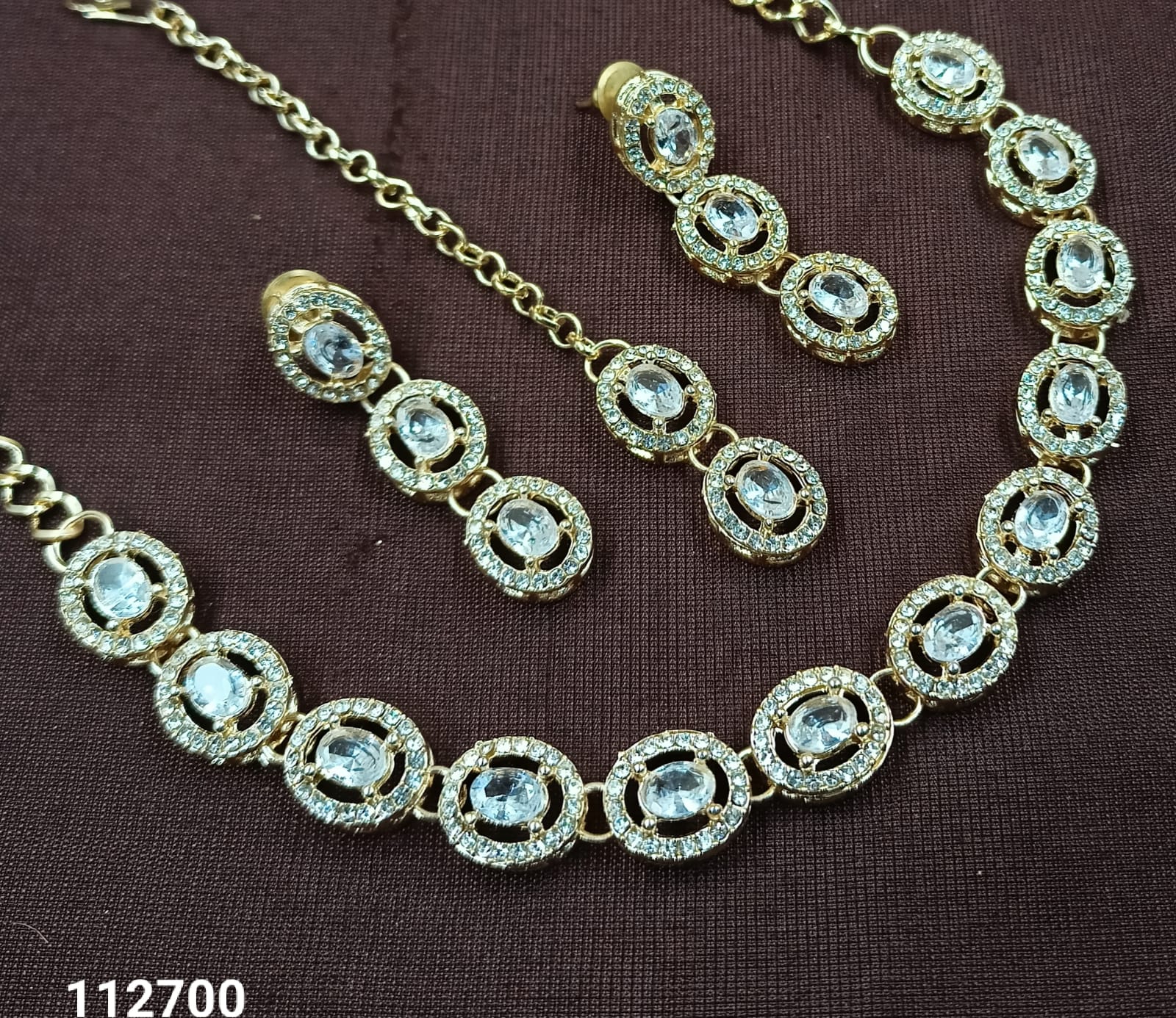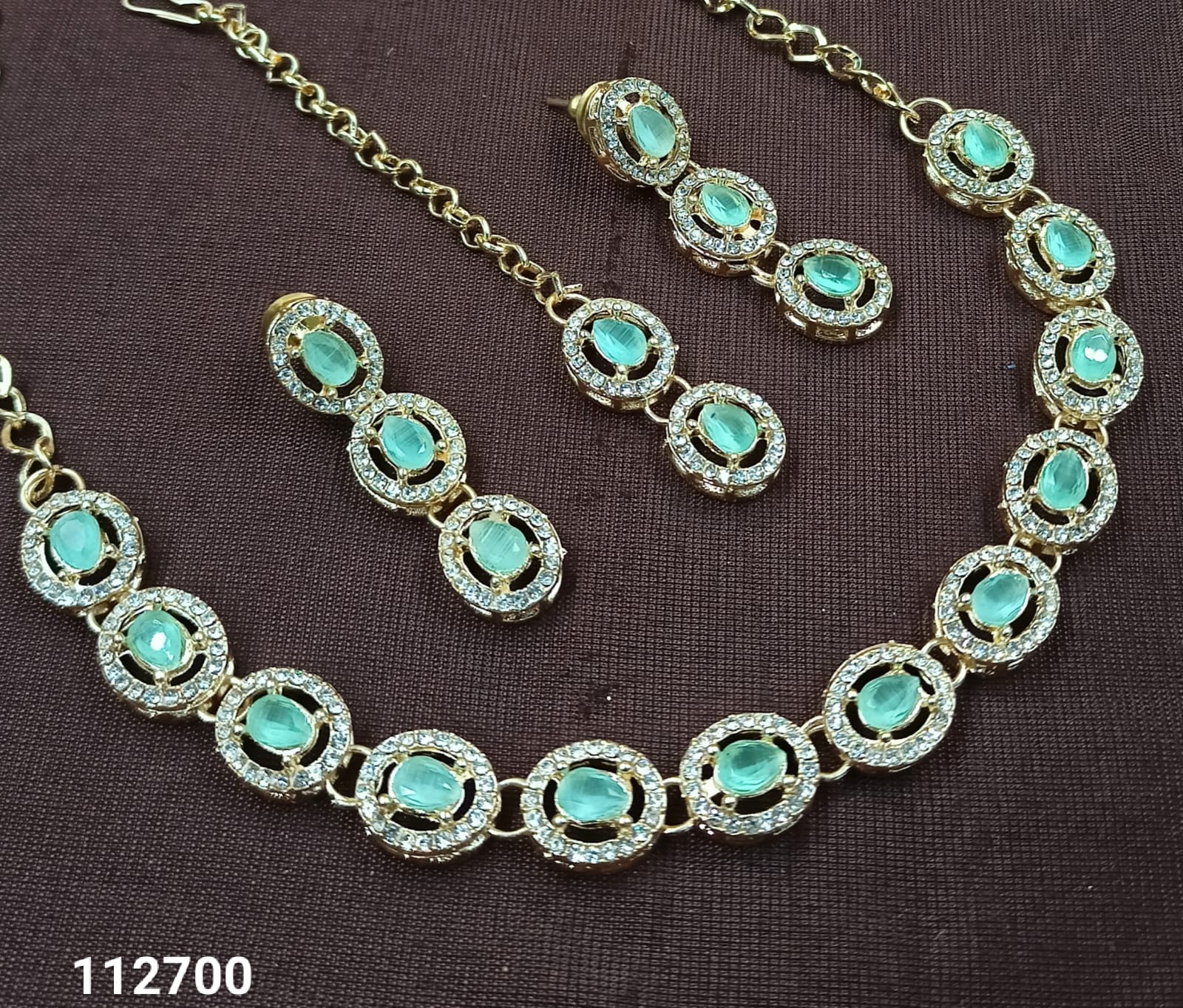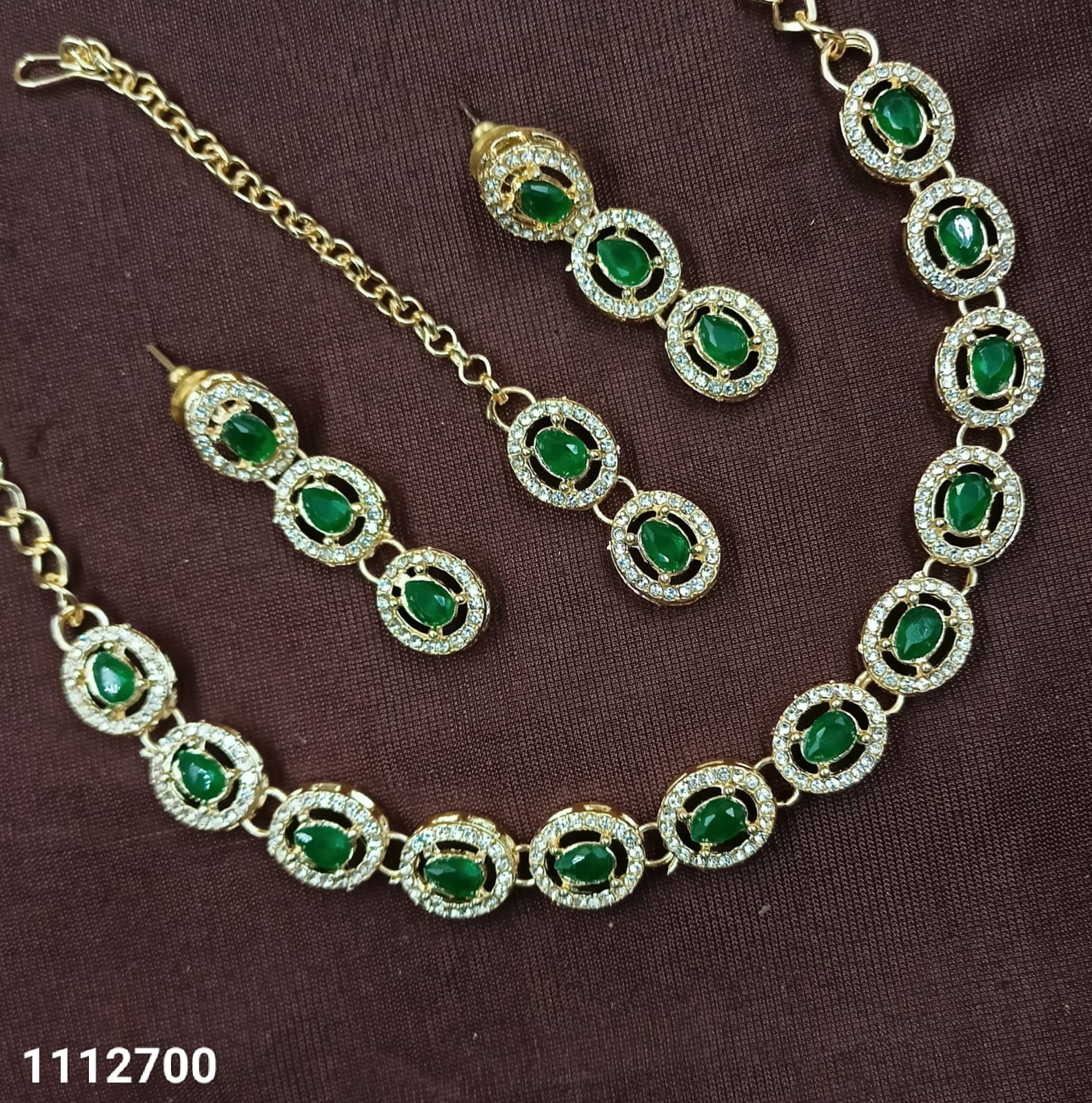 Elegant Oval Stone Necklace Set with Matching Earrings & Mangtikka