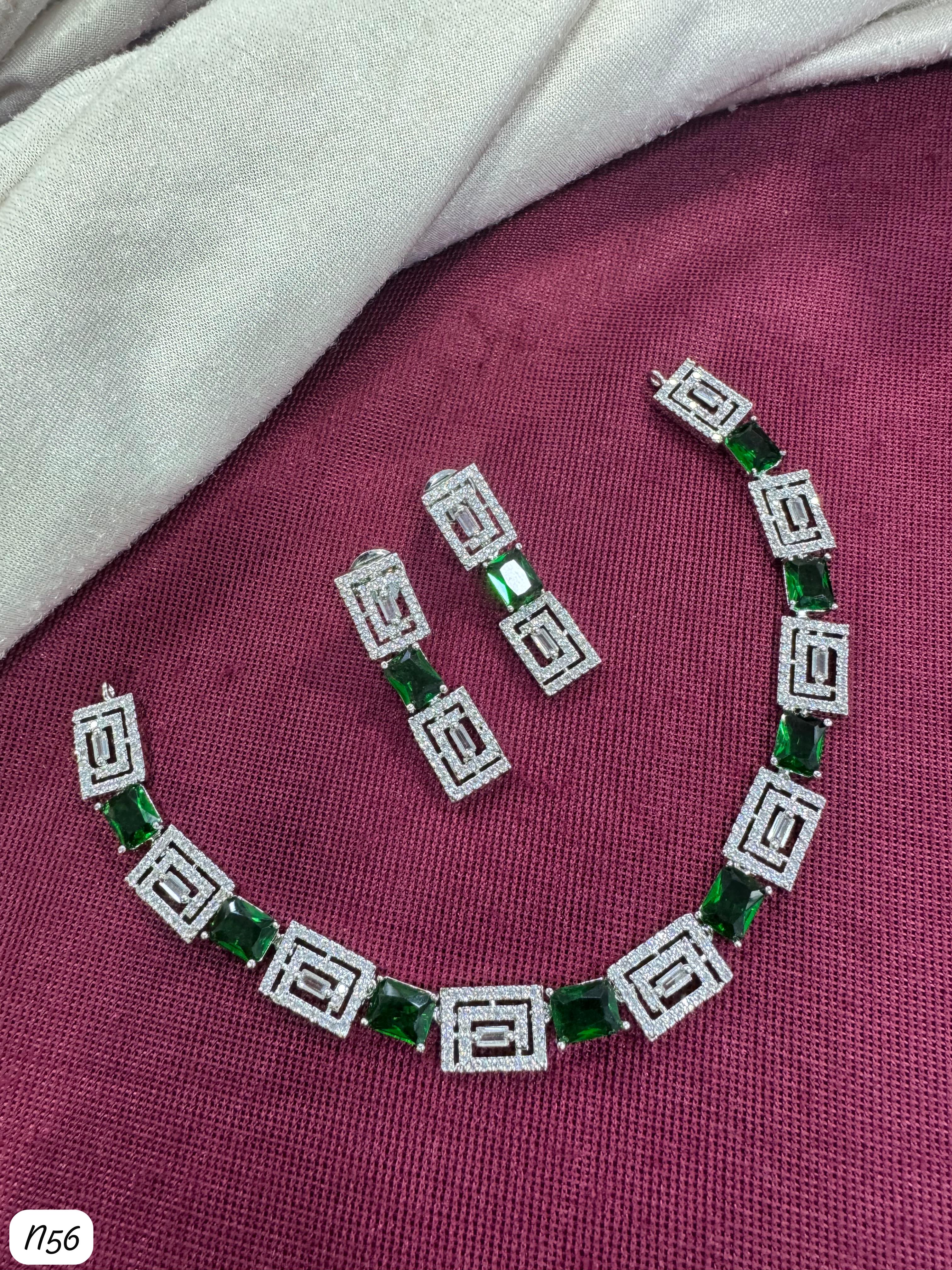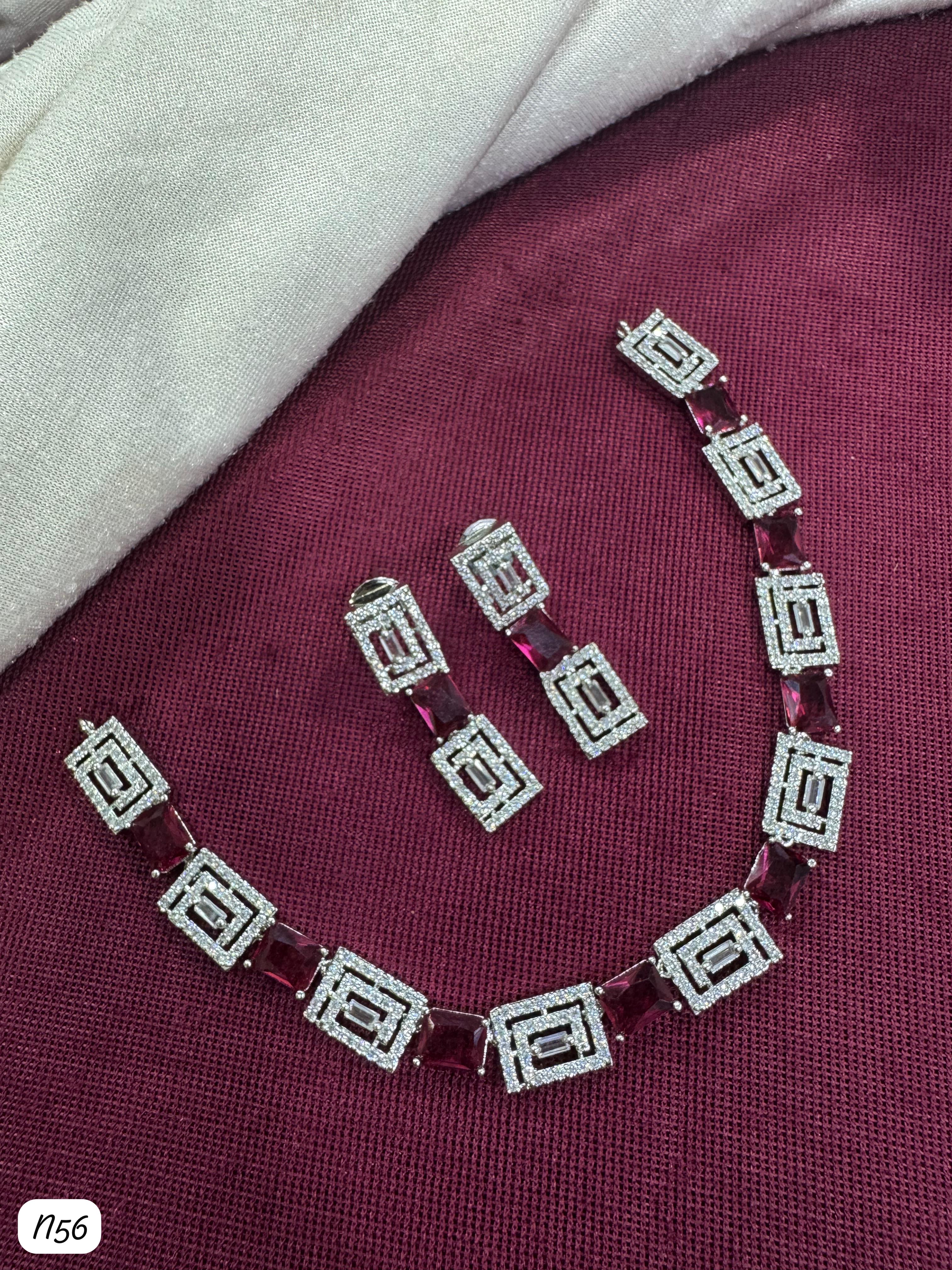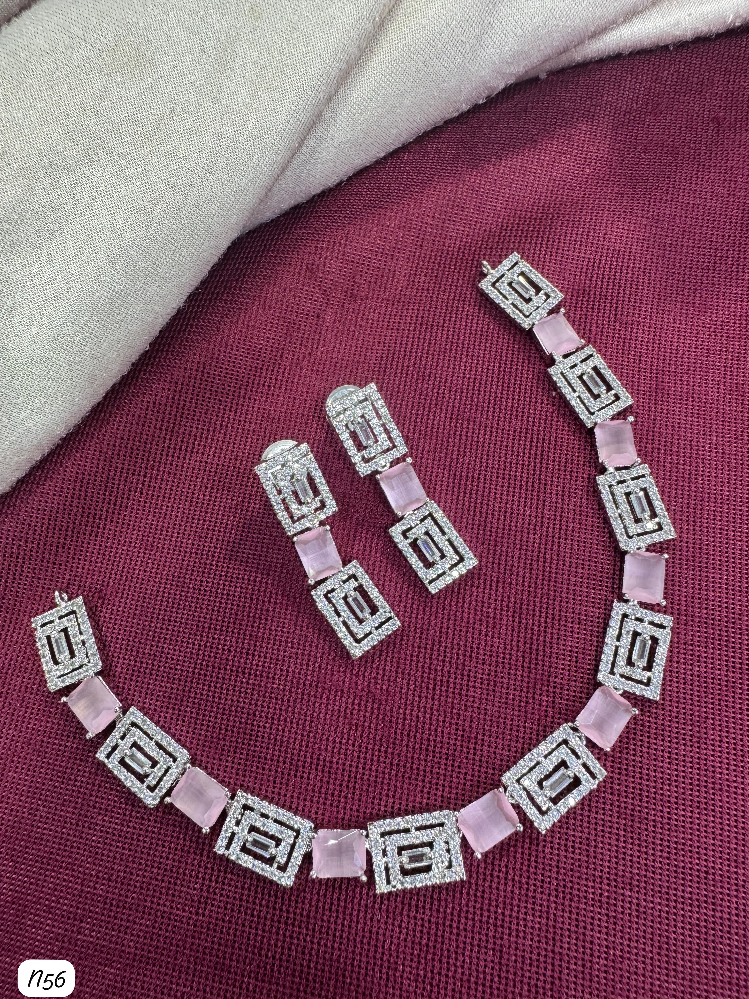 This elegant necklace and earrings set features a stunning geometric design adorned with sparkling stones. Perfect for special occasions or adding a touch of sophistication to...