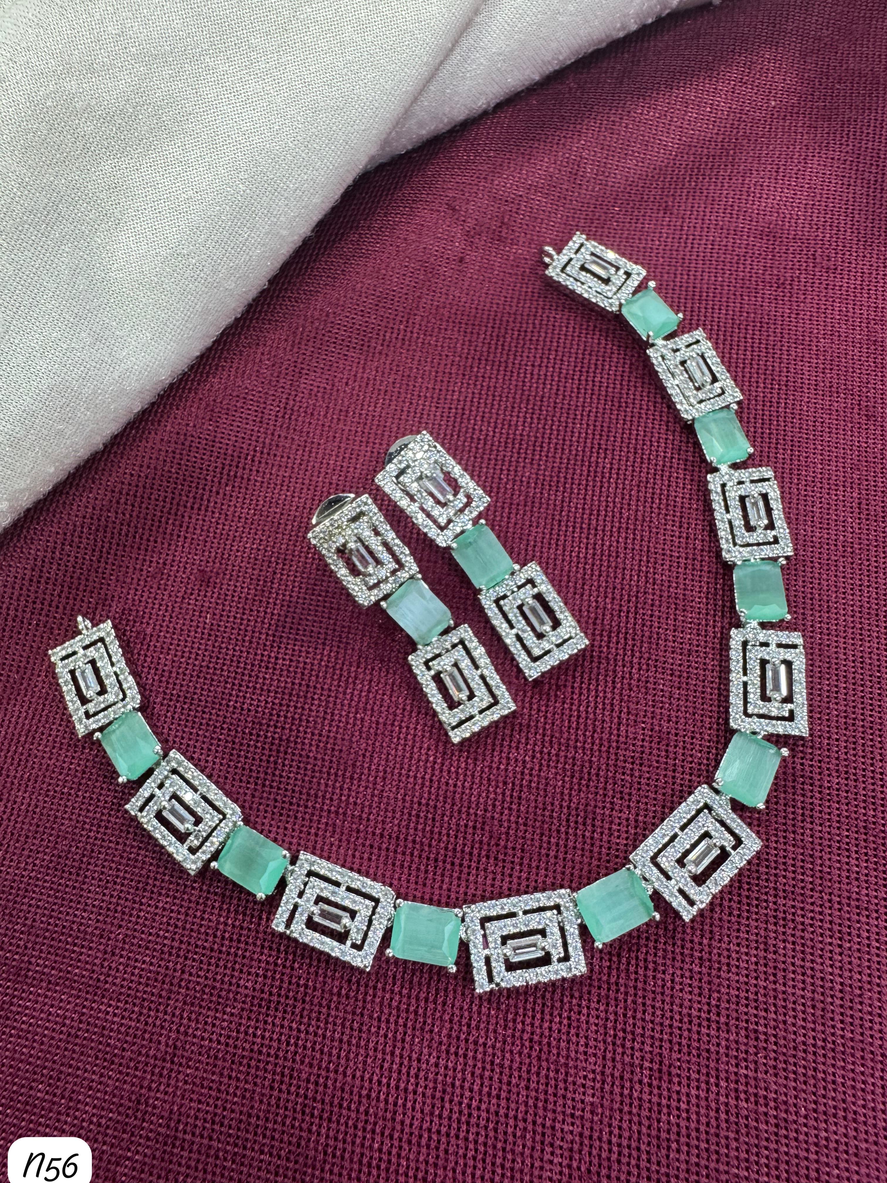 Elegant Geometric Necklace and Earrings Set with Sparkling AD Stones
