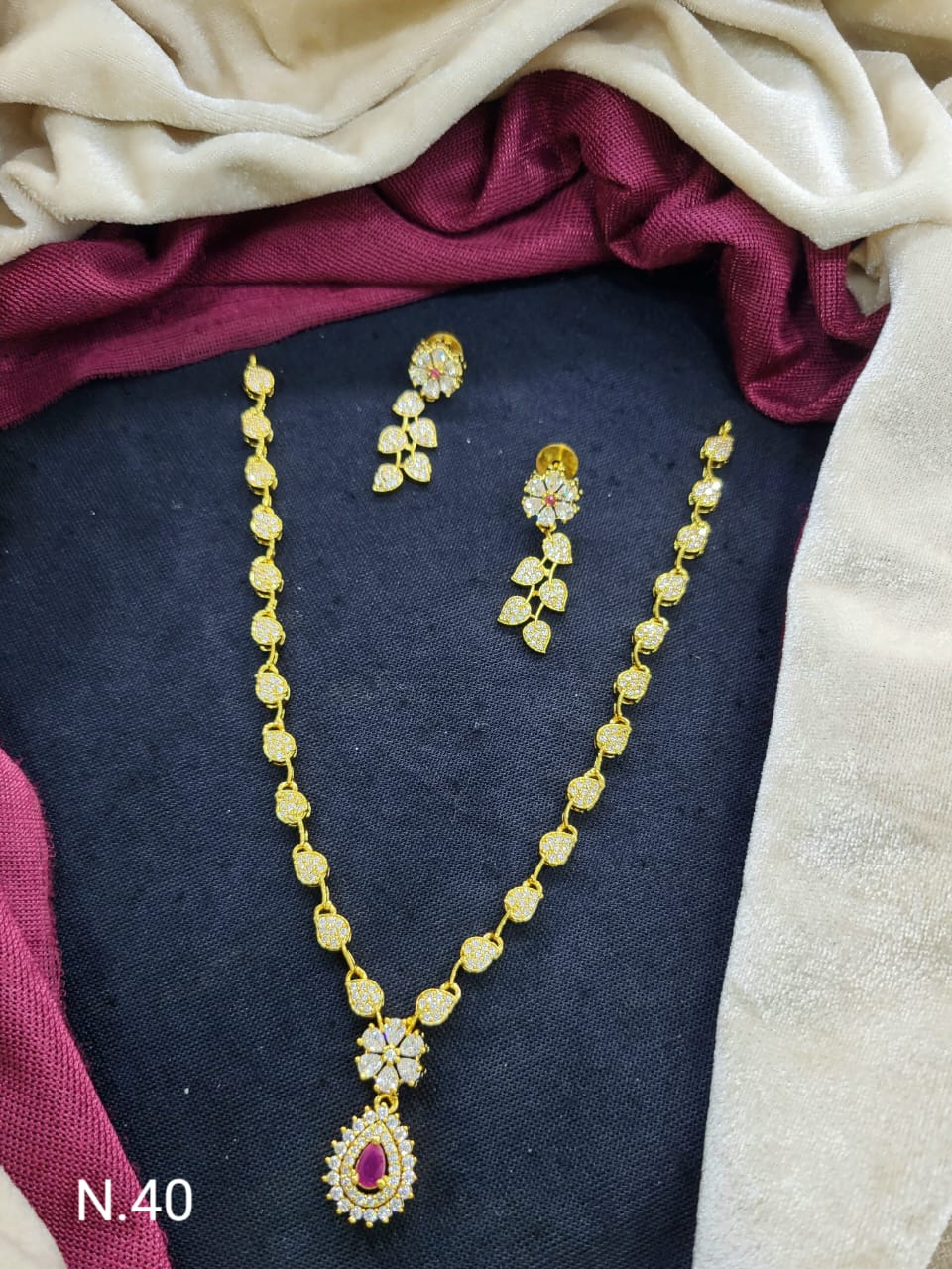 Elegant AD Floral Pendant Necklace Set with Matching Earrings