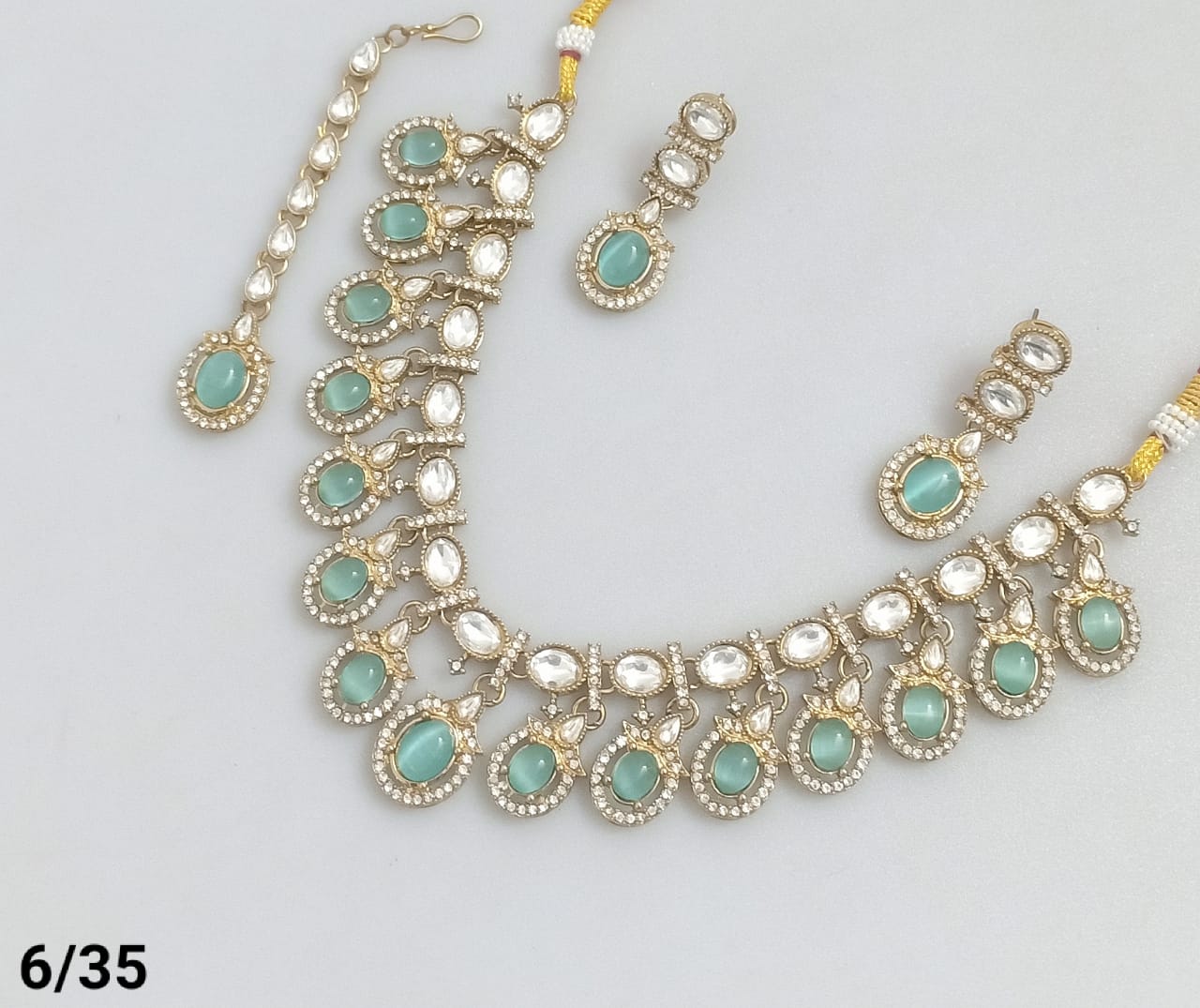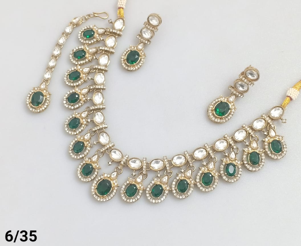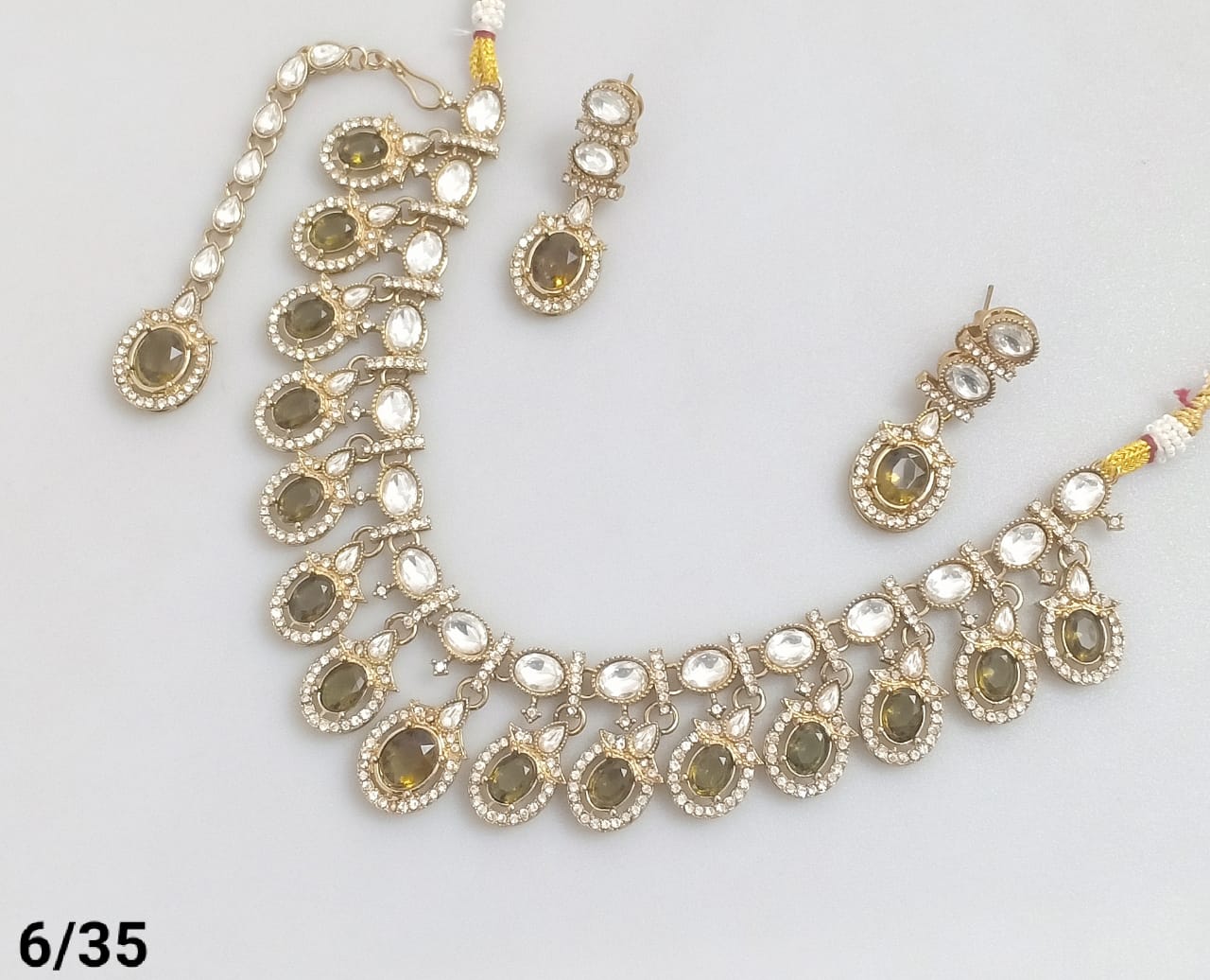 Elevate your ensemble with this Elegant Teardrop Statement AD Necklace & Earrings Set, expertly crafted to showcase timeless sophistication. Featuring intricately designed teardrop motifs adorned with...