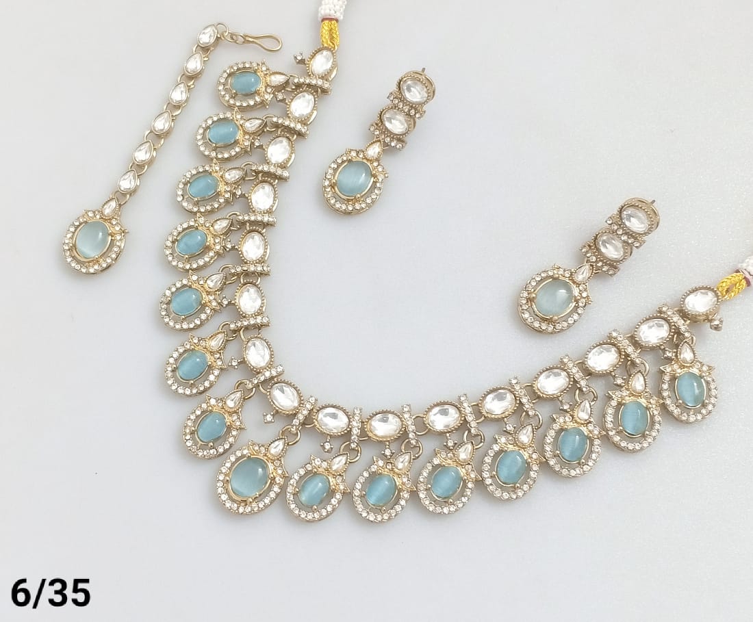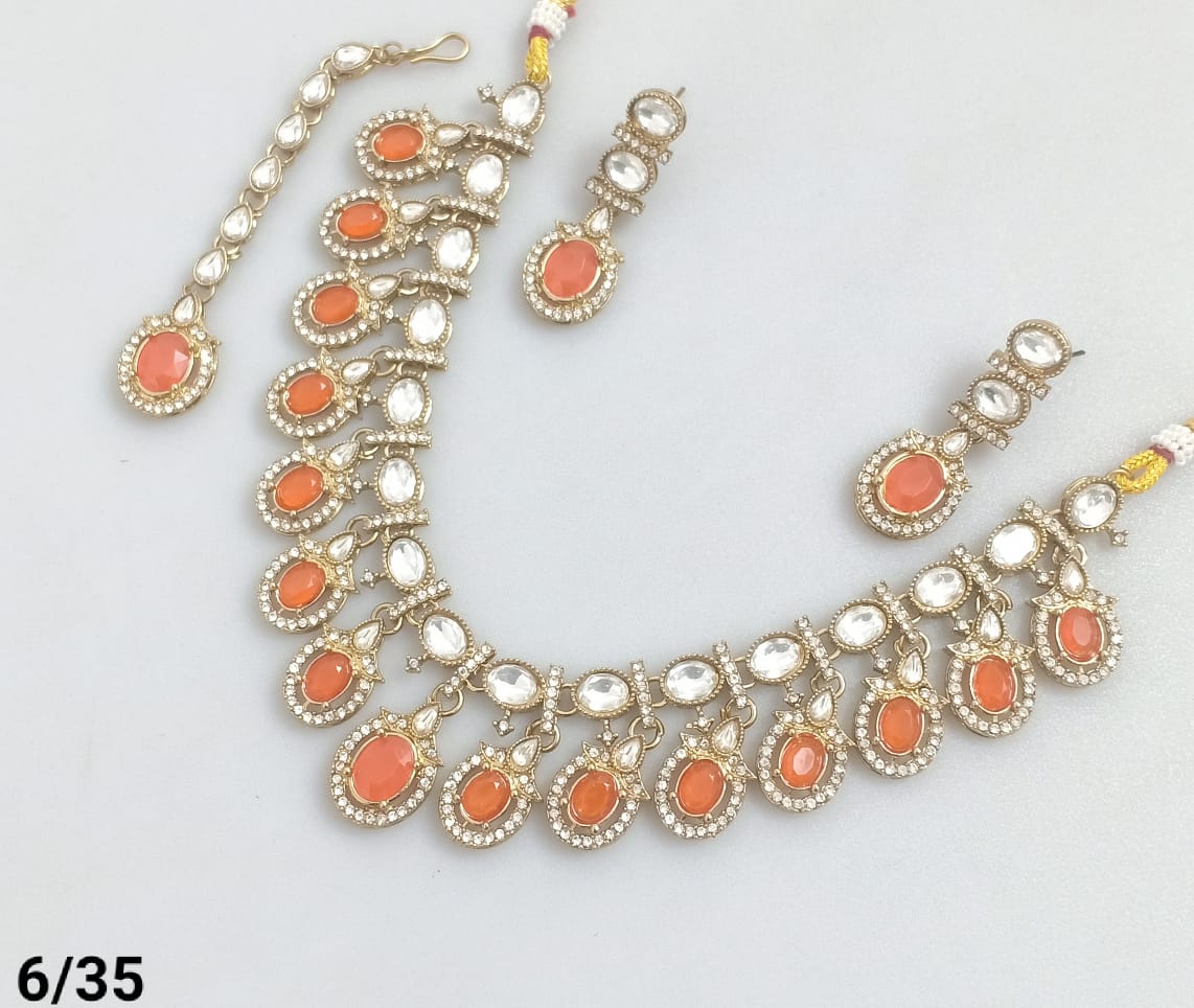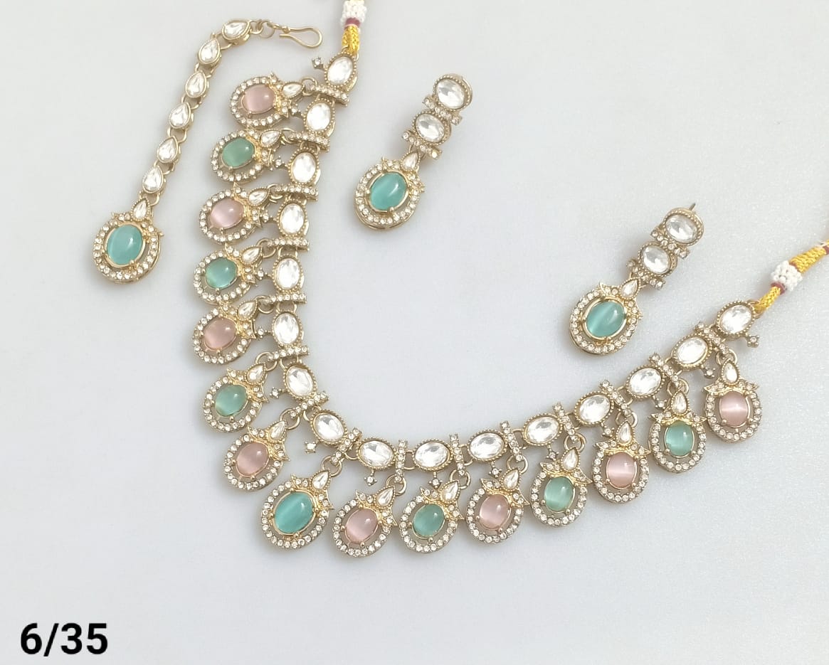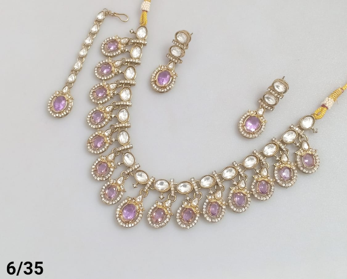 Elevate your ensemble with this Elegant Teardrop Statement AD Necklace & Earrings Set, expertly crafted to showcase timeless sophistication. Featuring intricately designed teardrop motifs adorned with...