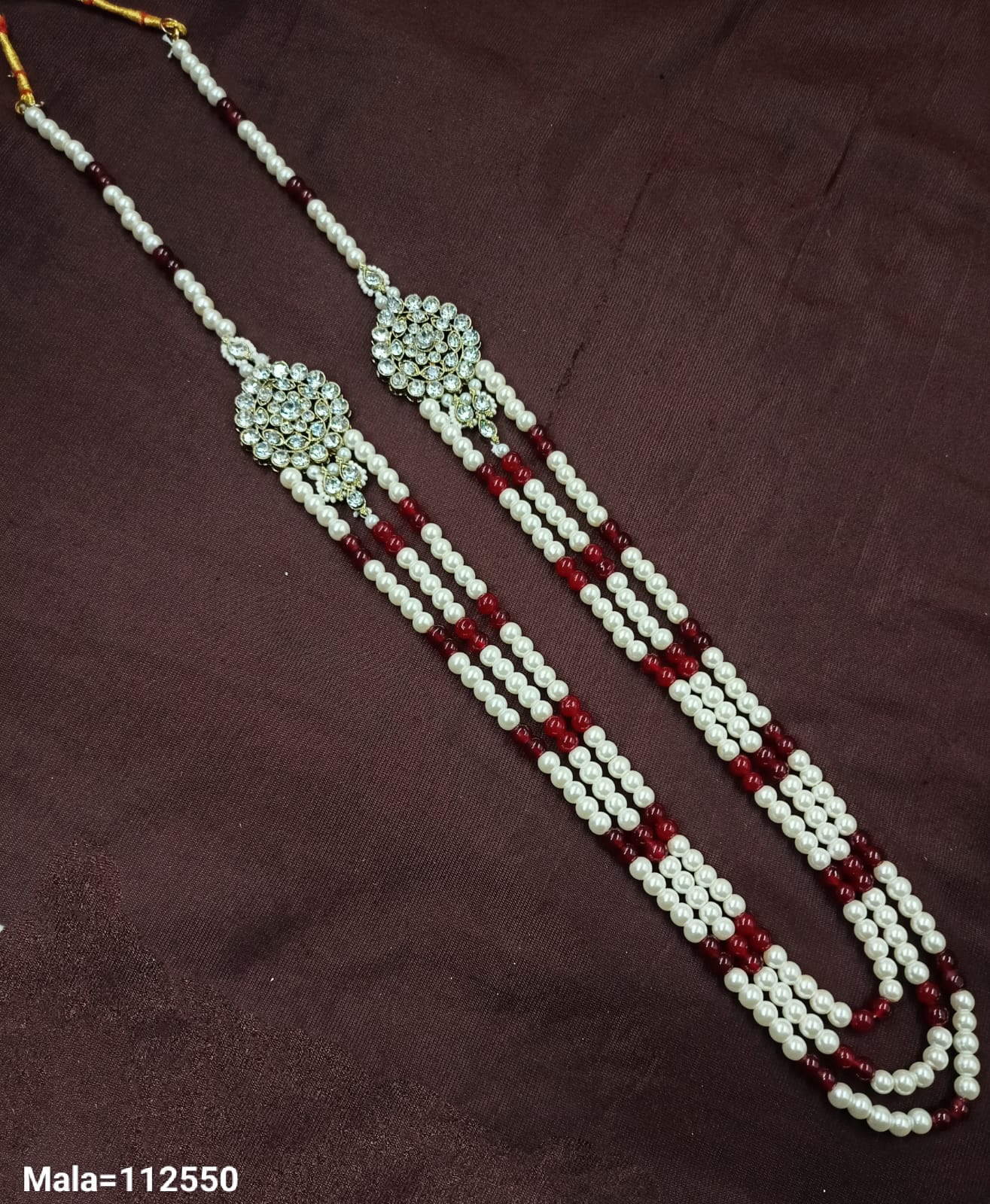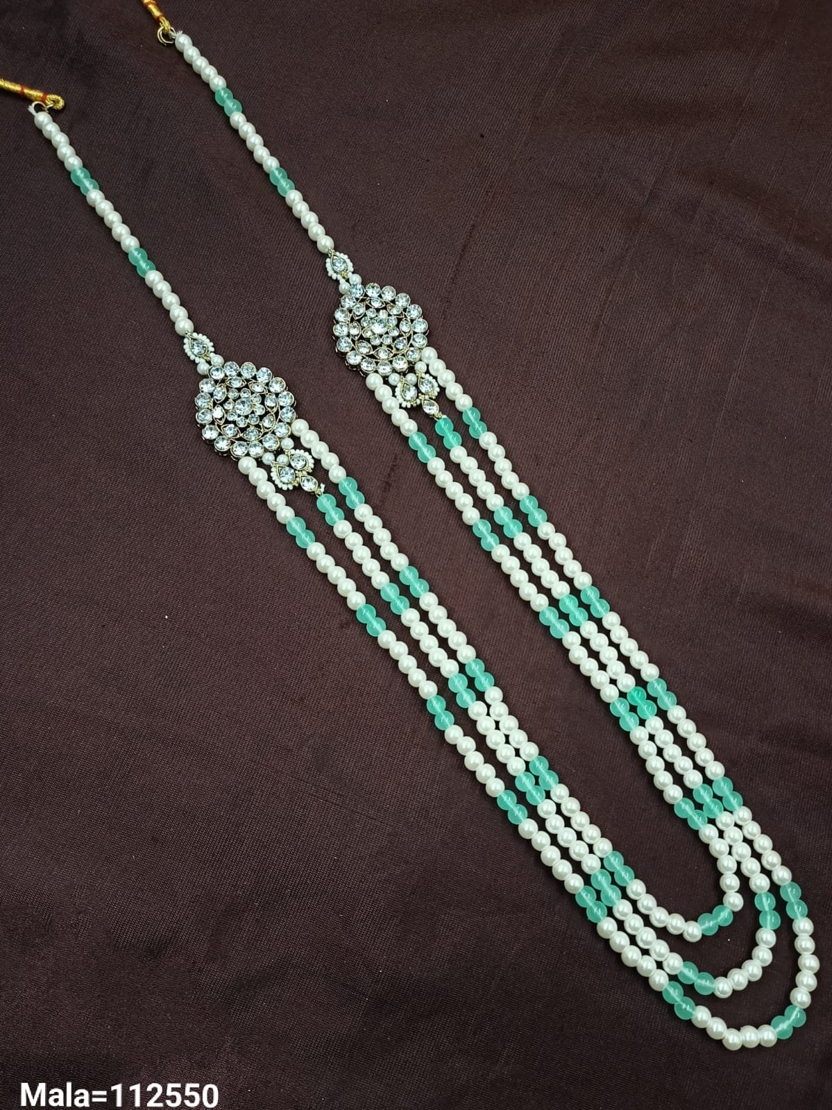 This elegant multi-strand beaded necklace features lustrous pearls interspersed with delicate beads and intricate stonework motifs. The design blends traditional craftsmanship with a contemporary aesthetic, making...