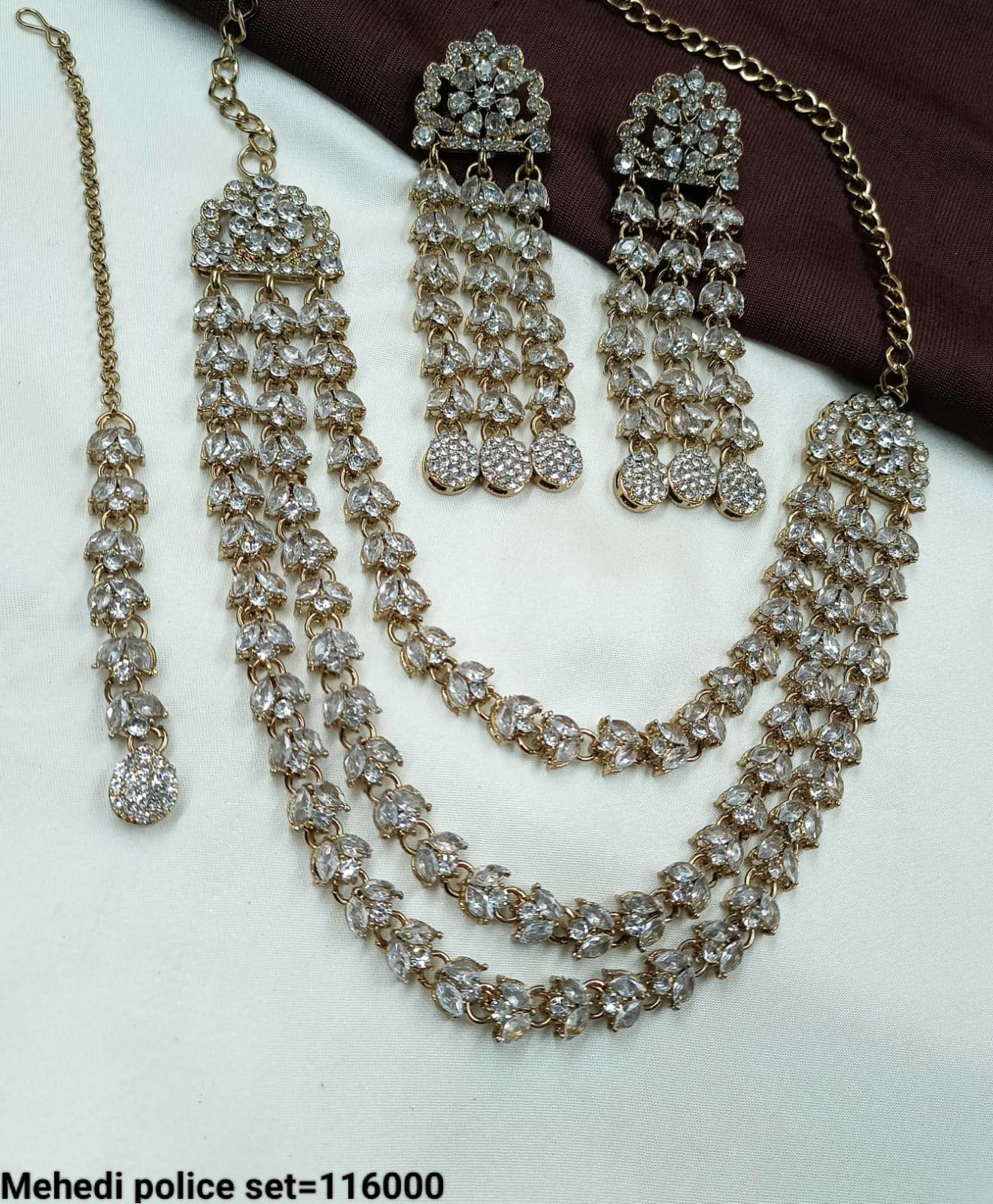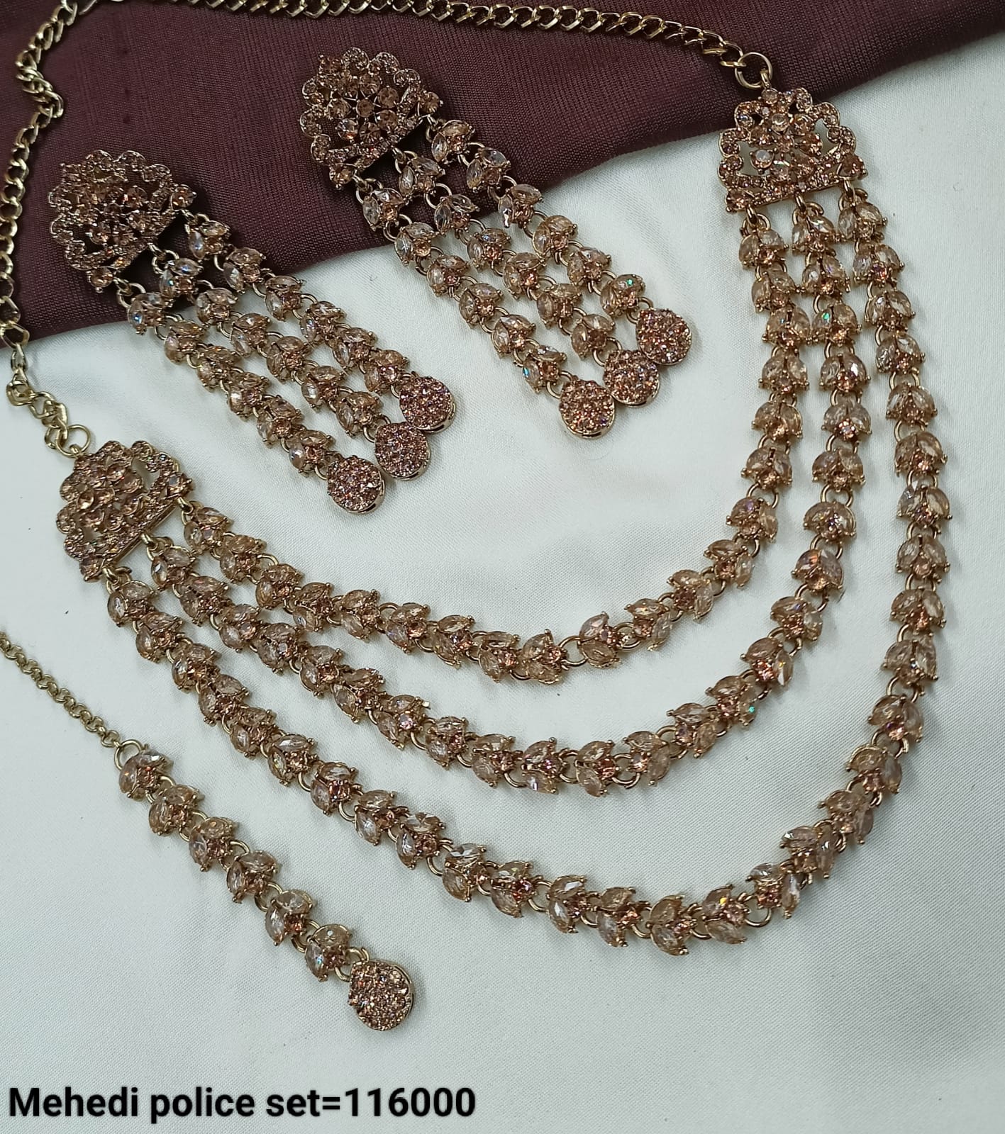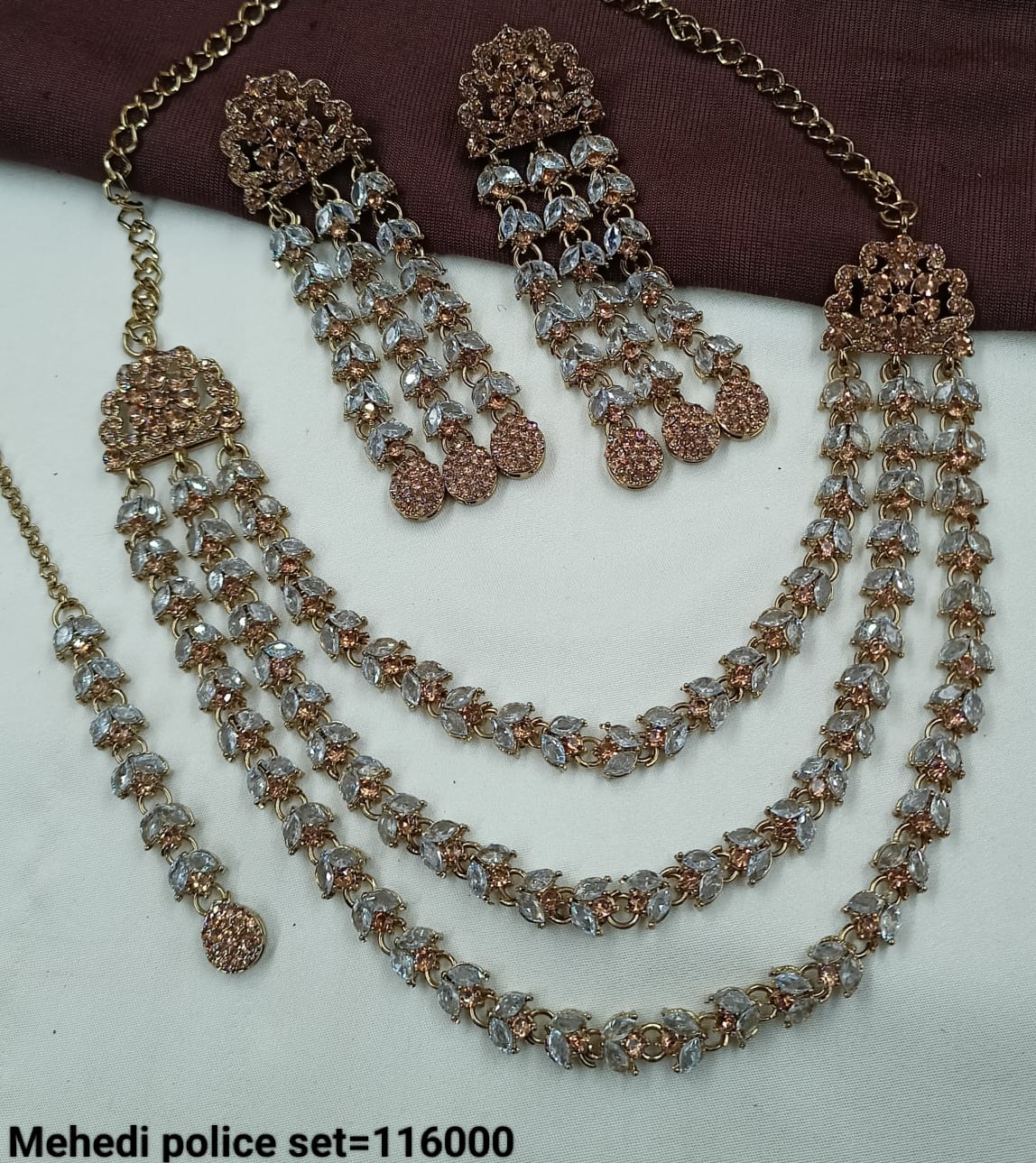 This exquisite Mehedi Police Choker Set features intricate craftsmanship with detailed pendants and matching earrings. Designed to complement traditional and festive attire, this set adds a...