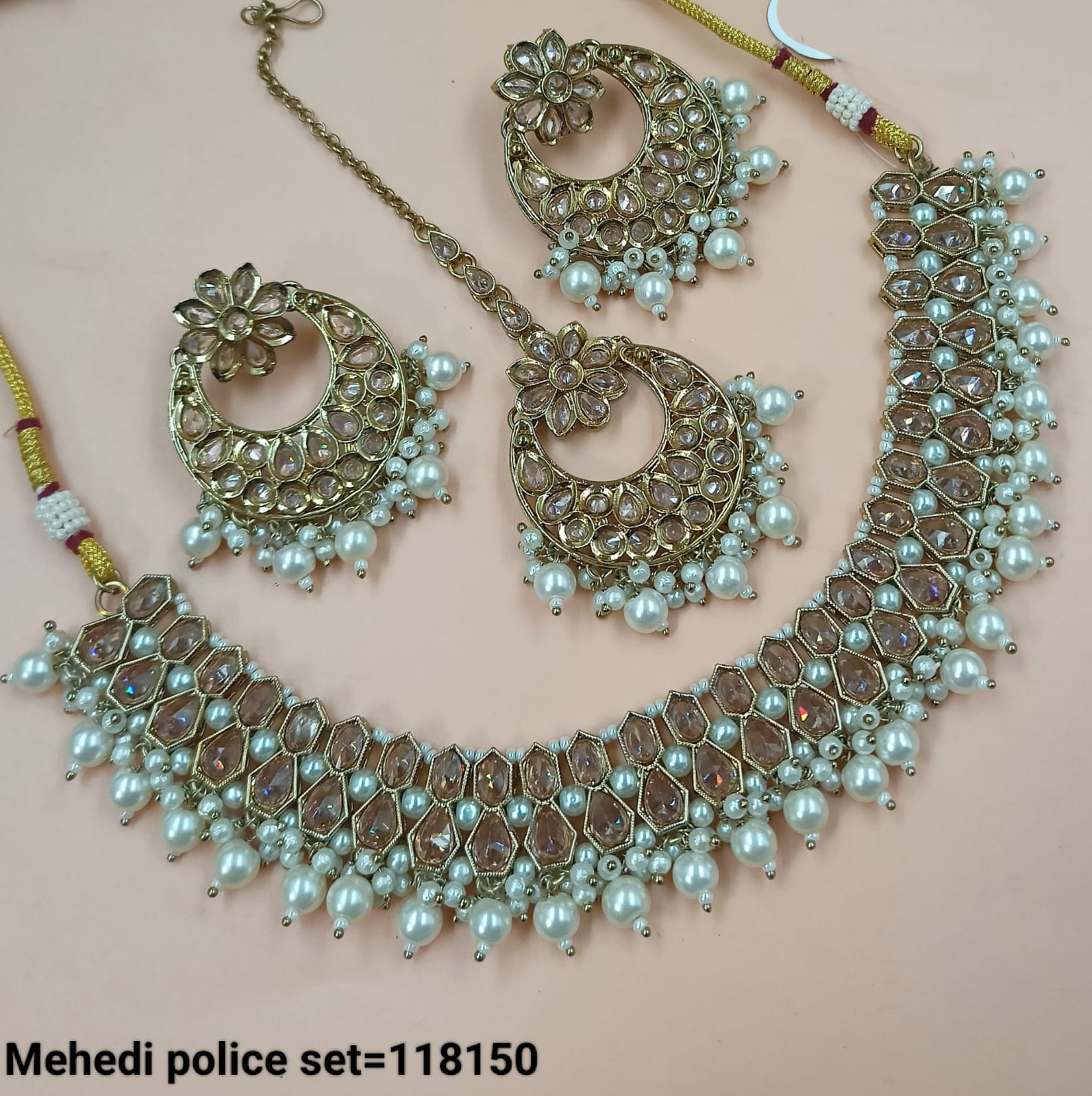 Embrace timeless elegance with this traditional three-strand jewelry set, featuring an antique finish and stunning cubic zirconia (CZ) stones. Expertly crafted with intricate detailing, this set...