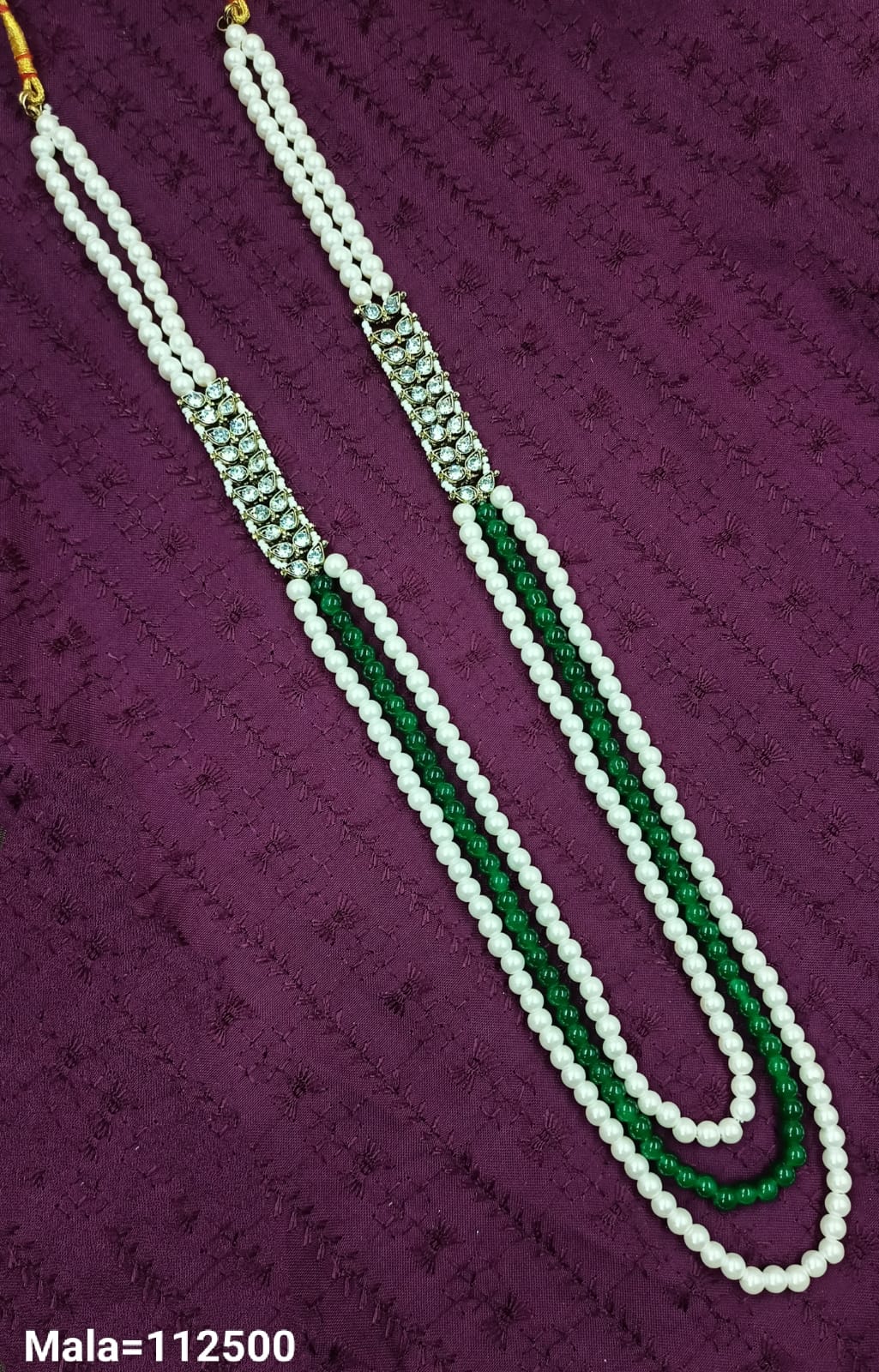 Add a graceful touch to your ethnic attire with this elegant triple-strand beaded mala, featuring intricate CZ detailing. Meticulously designed to blend traditional charm with refined...