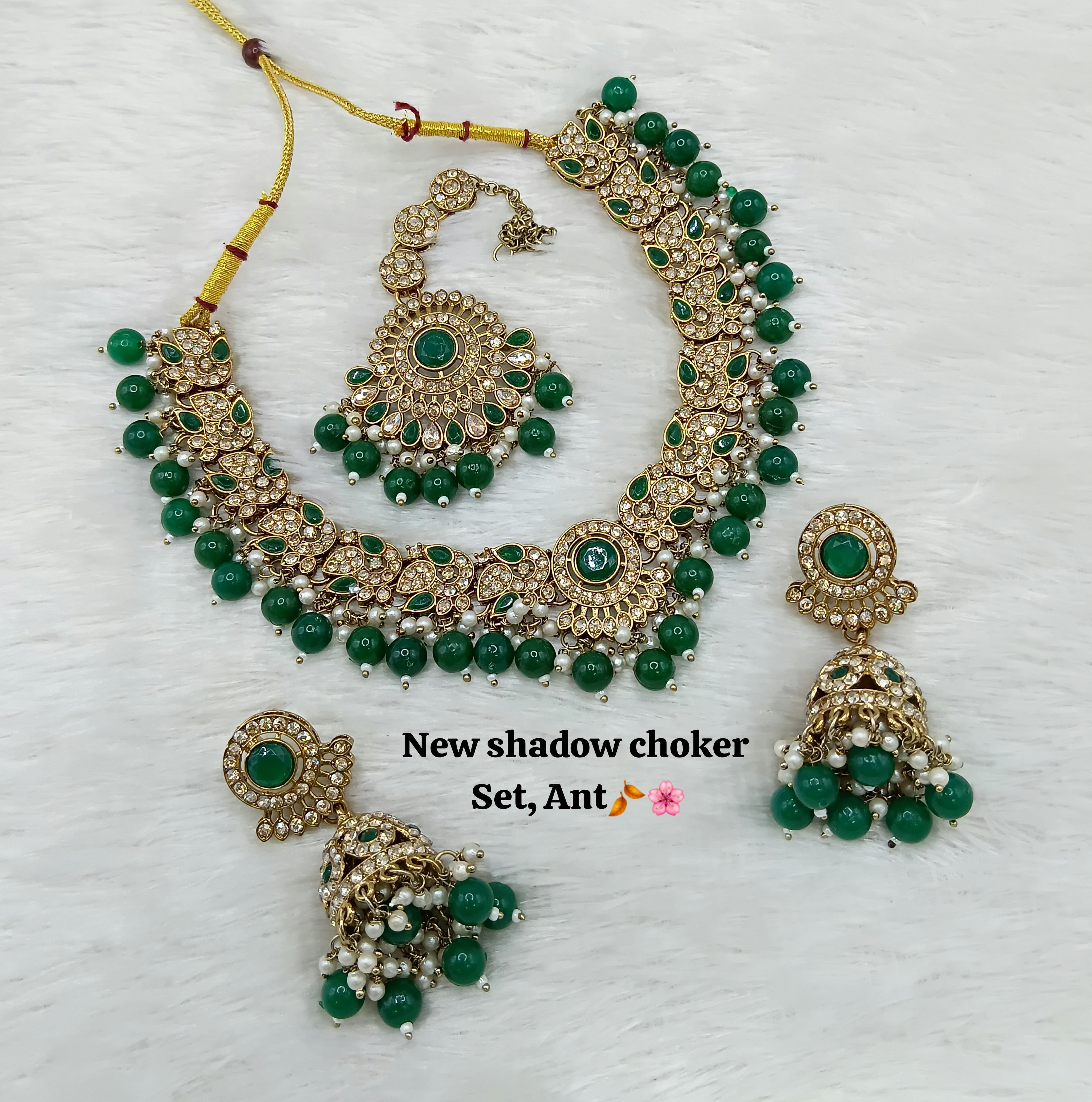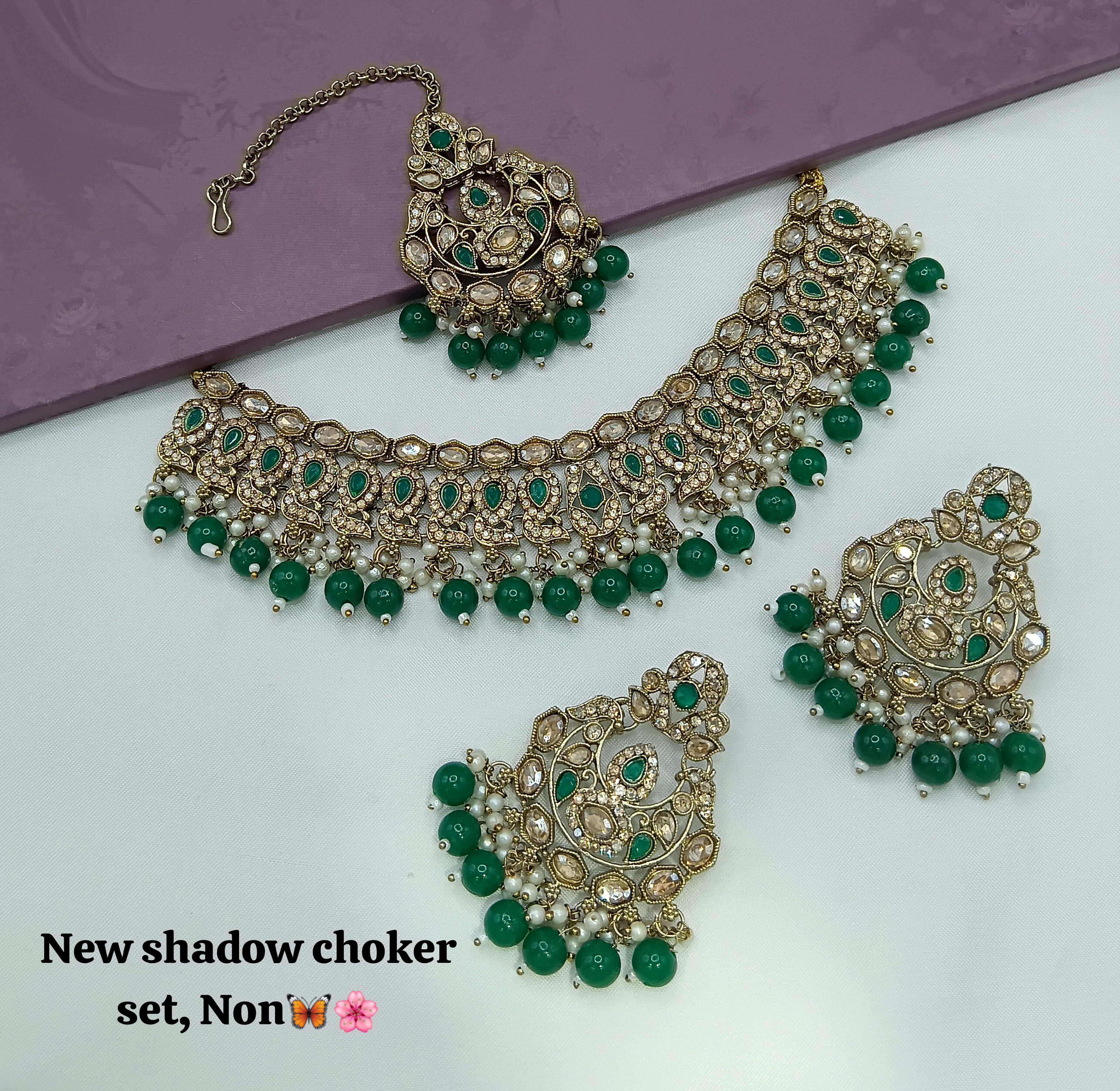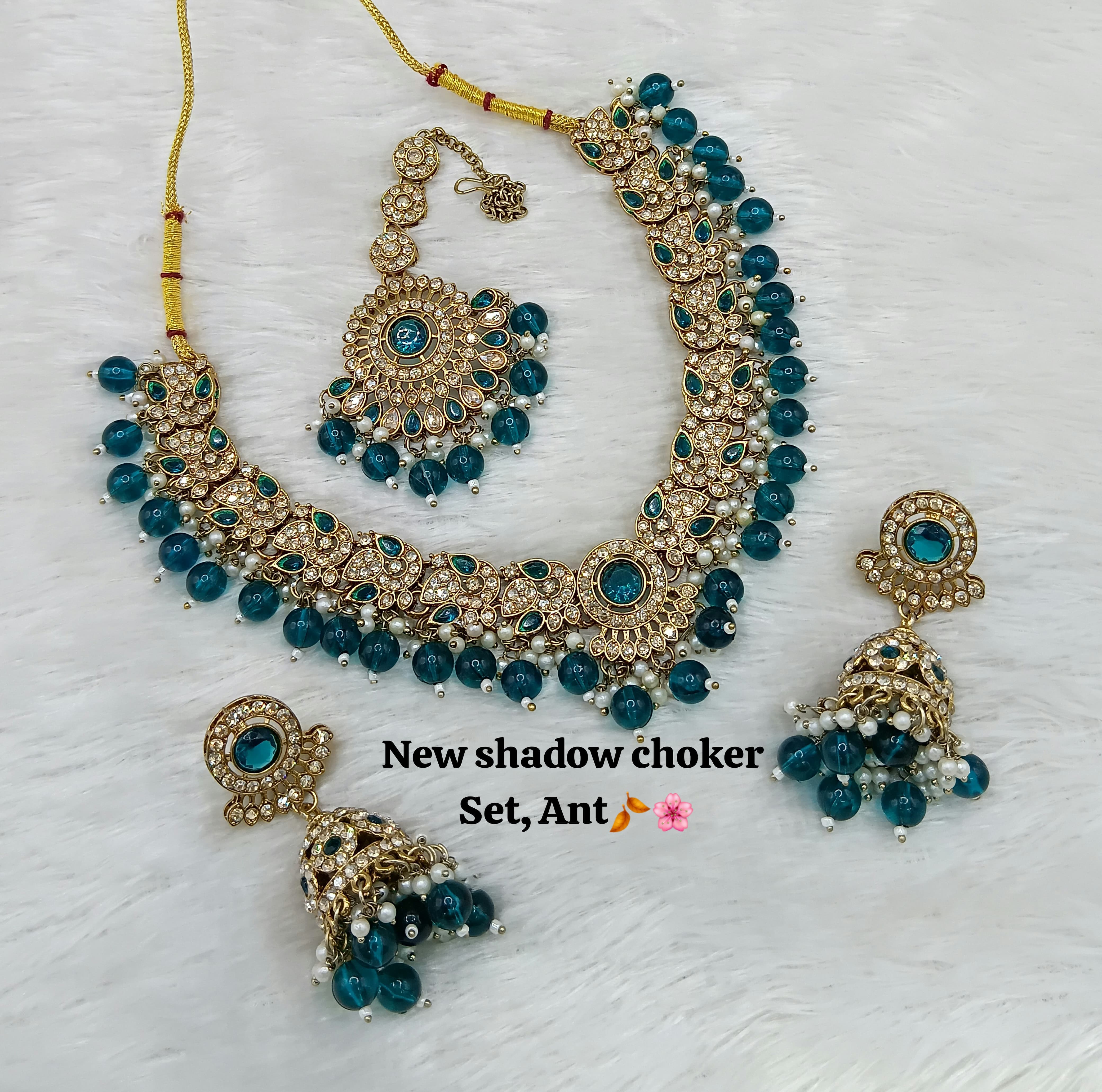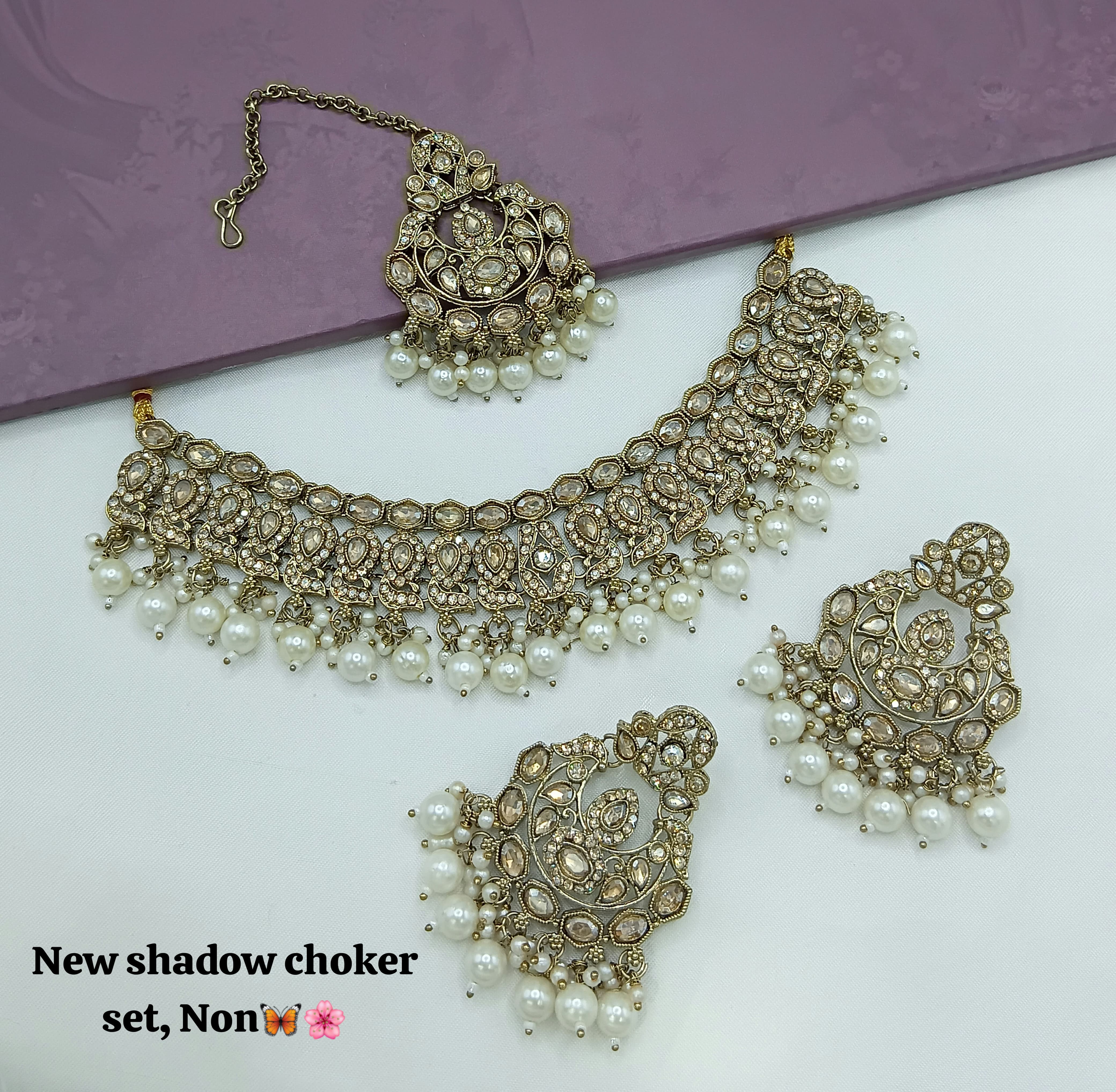 Designer Shadow Choker Necklace Set with Earrings & Maang Tikka – Premium Finish
