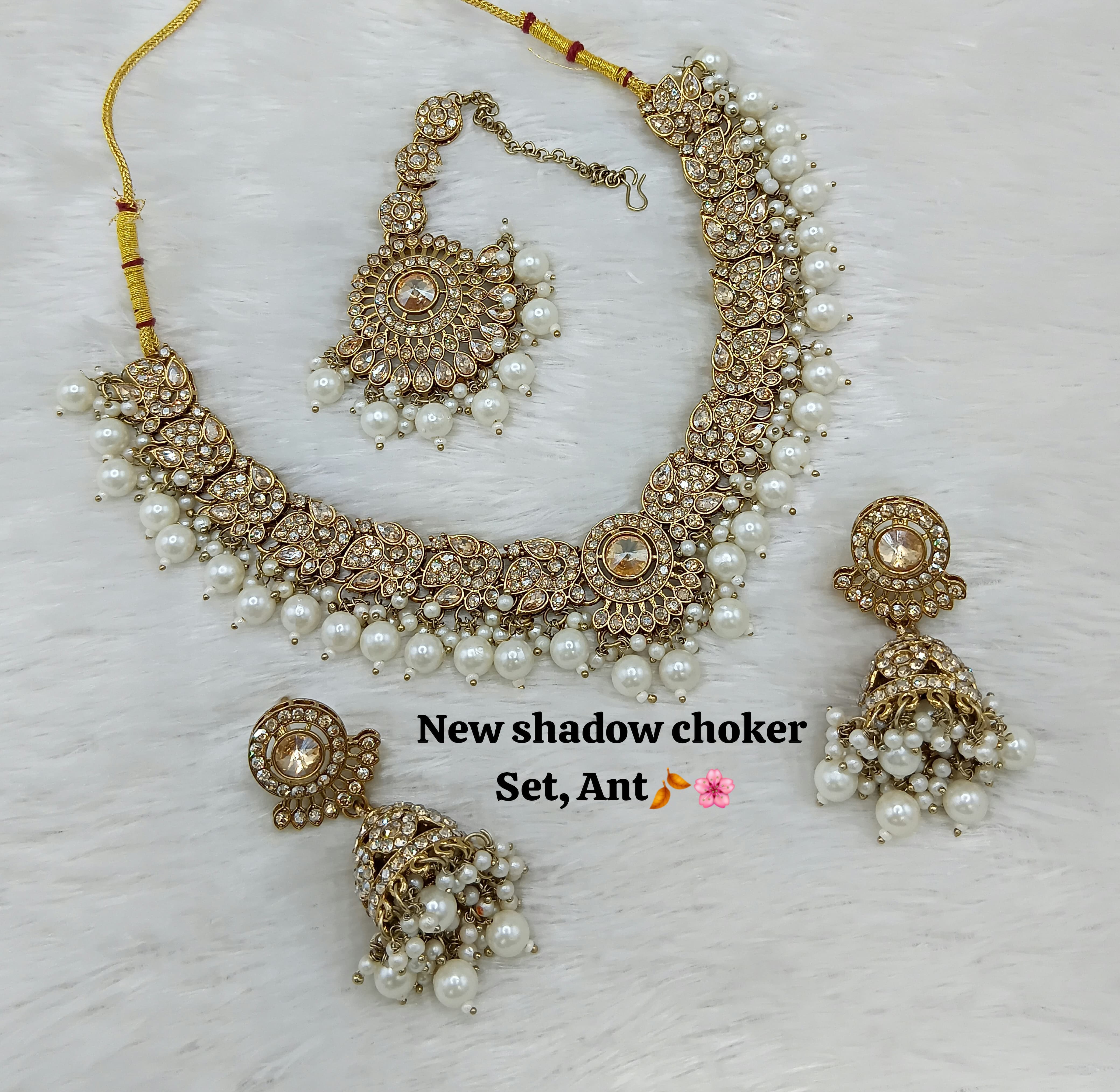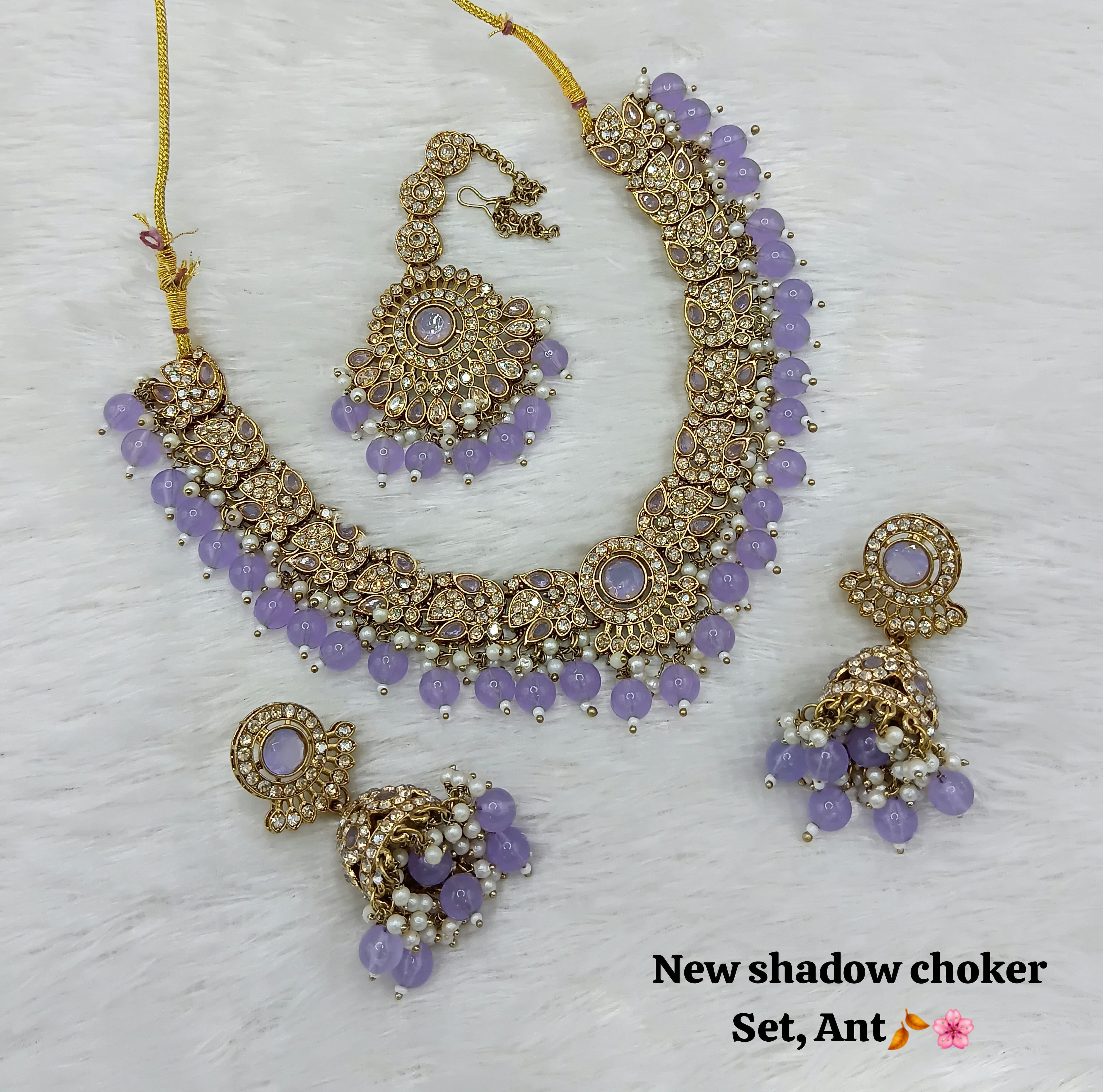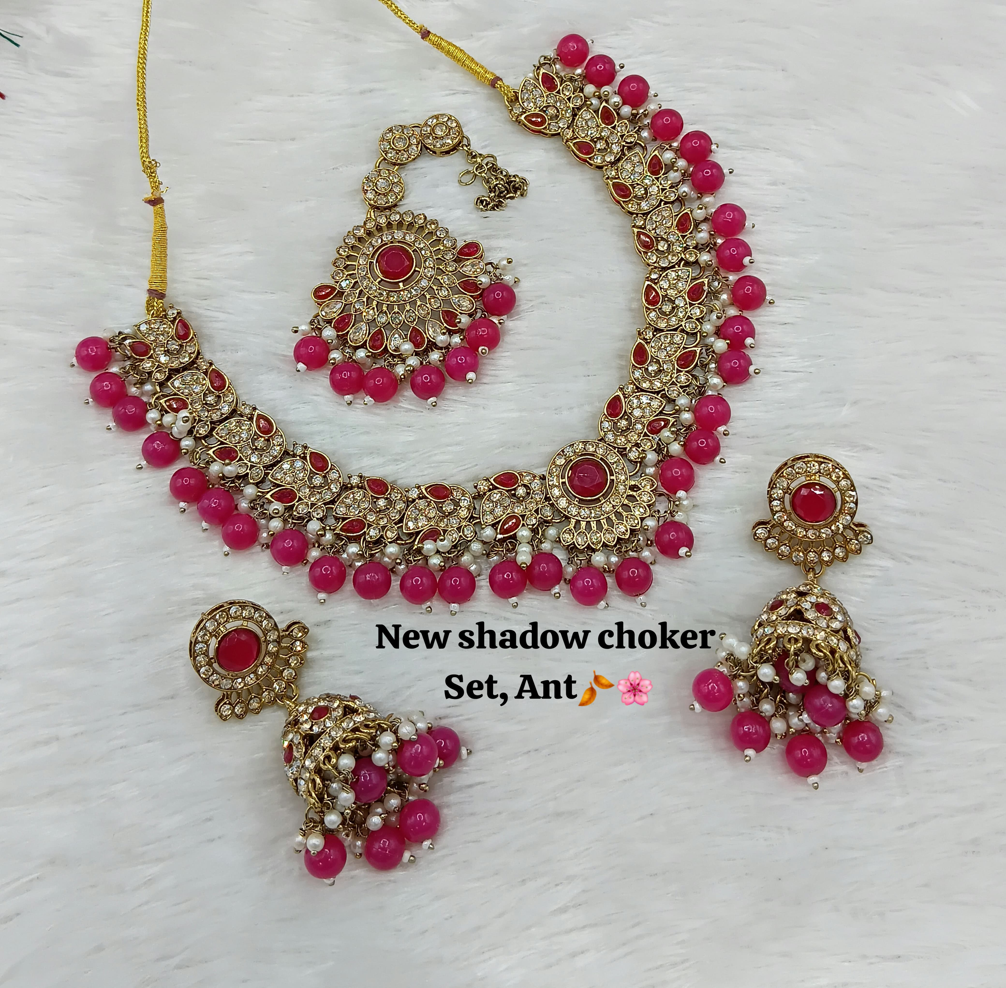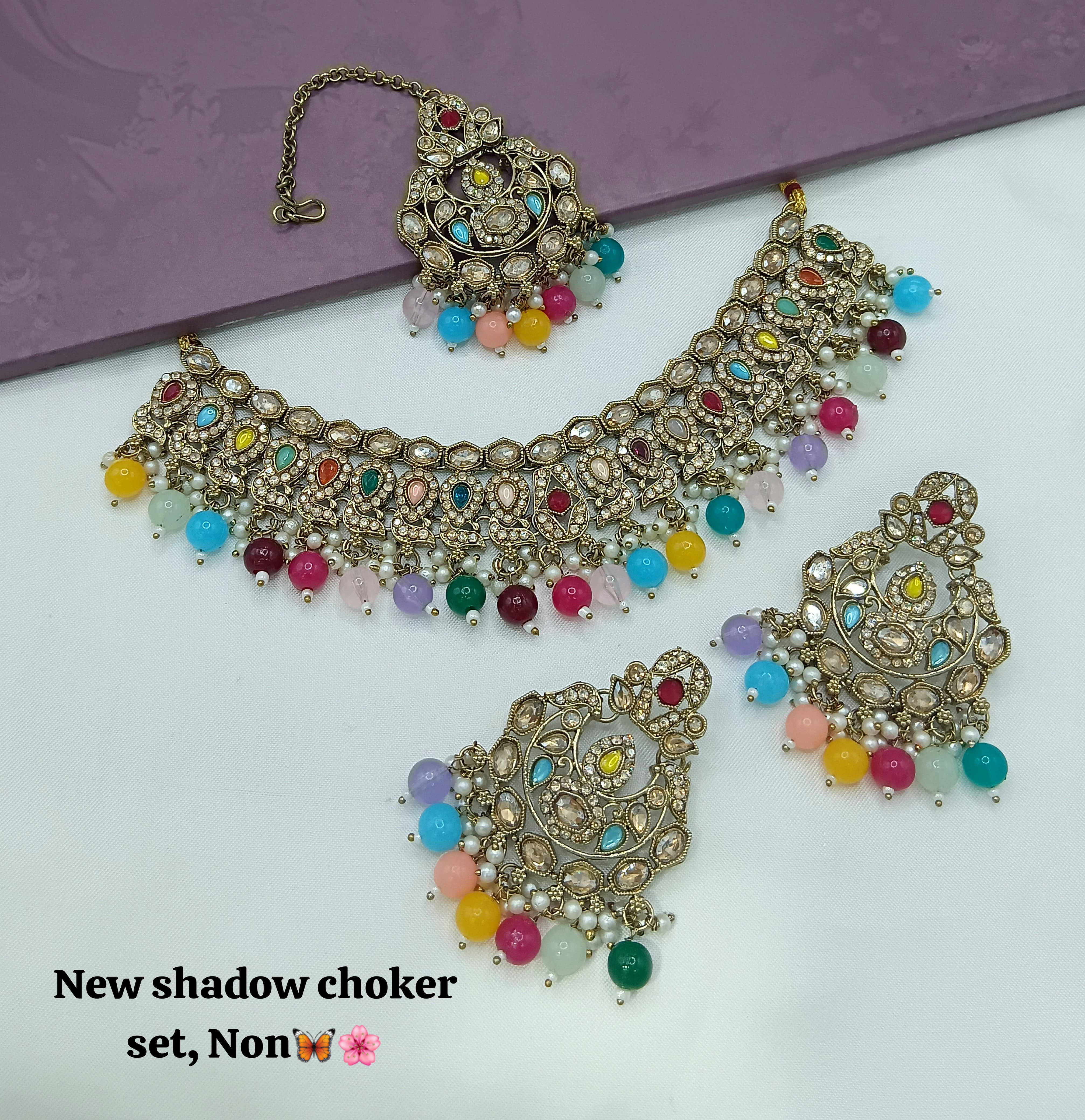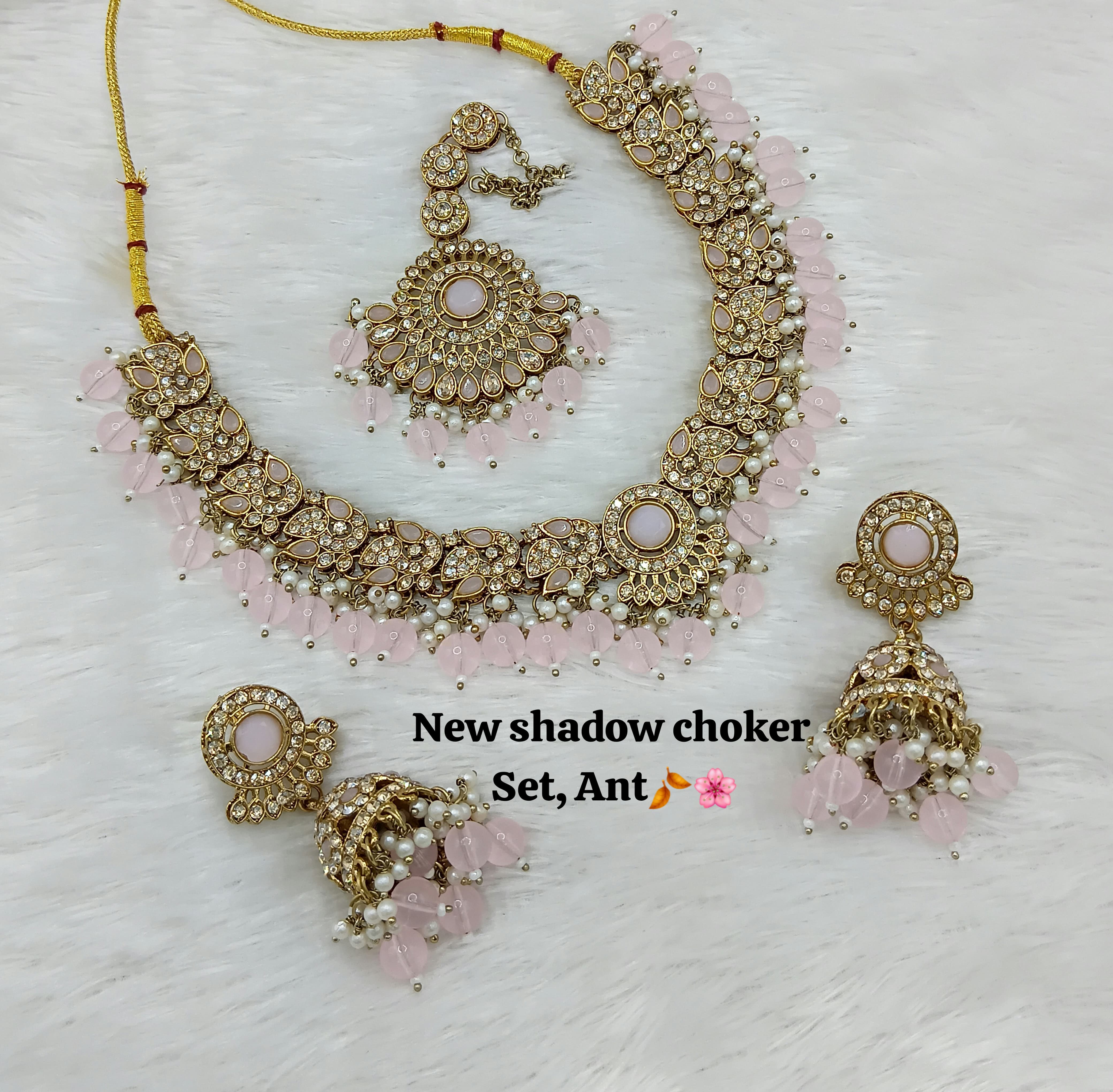 Designer Shadow Choker Necklace Set with Earrings & Maang Tikka – Premium Finish