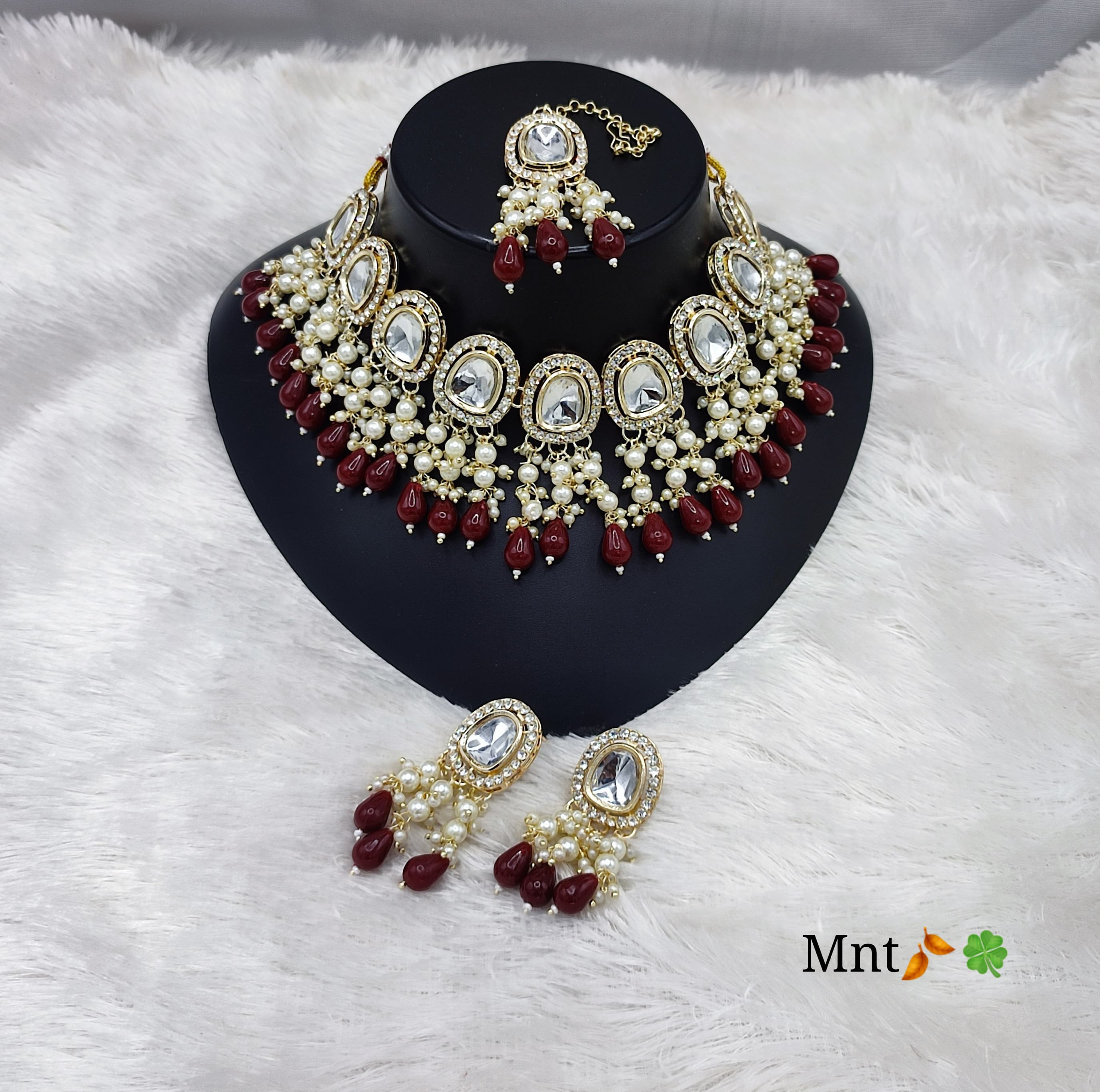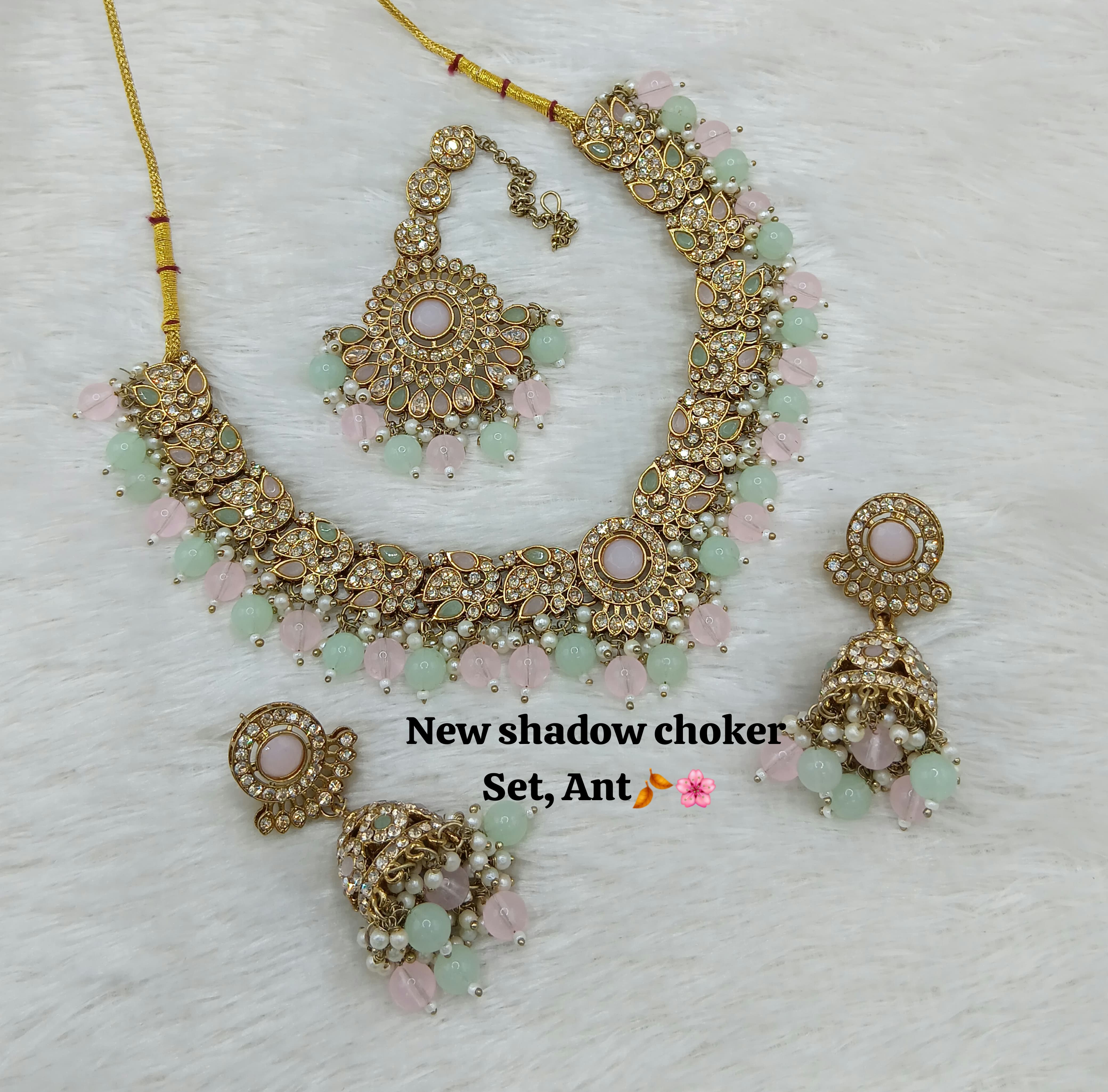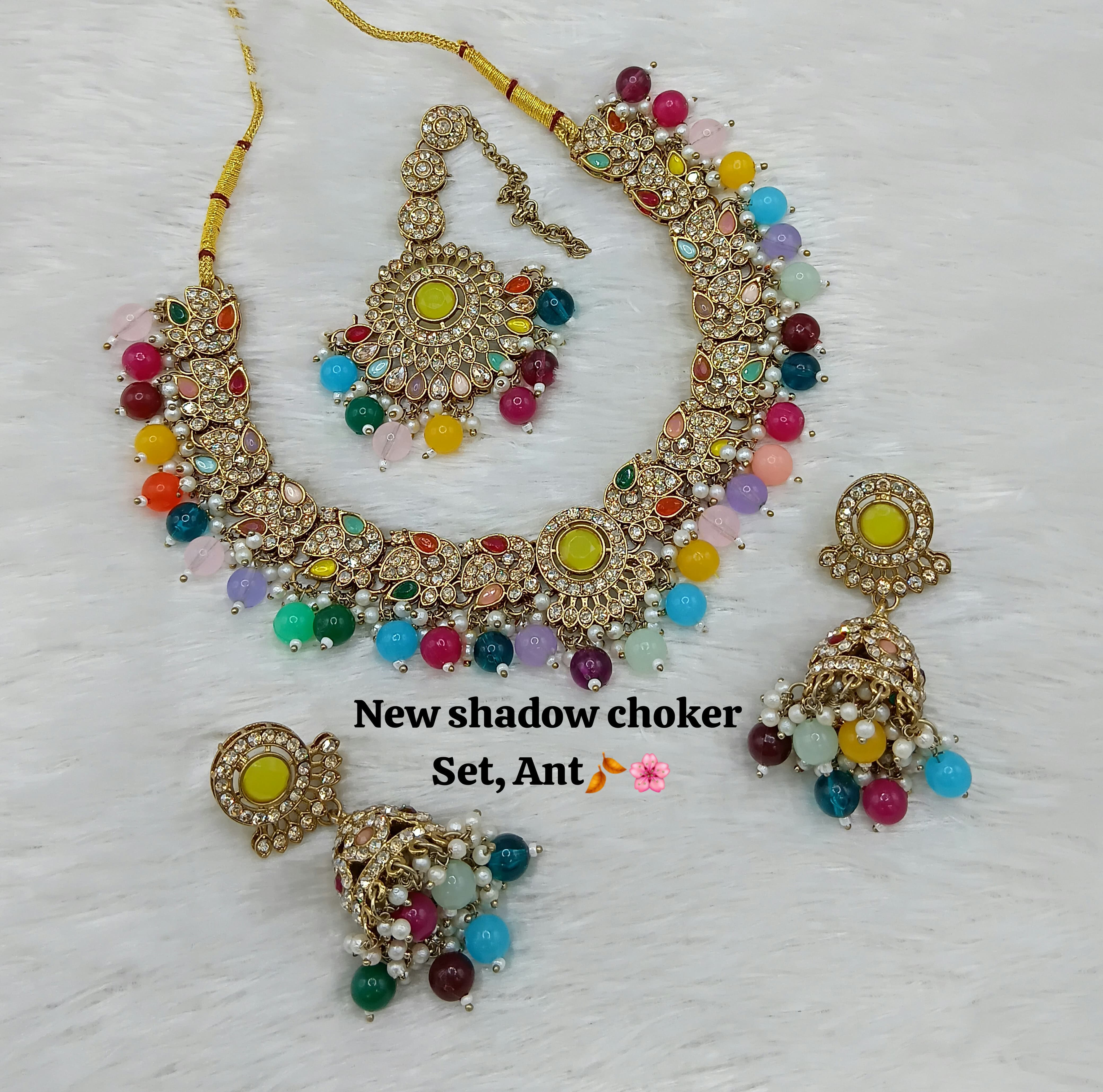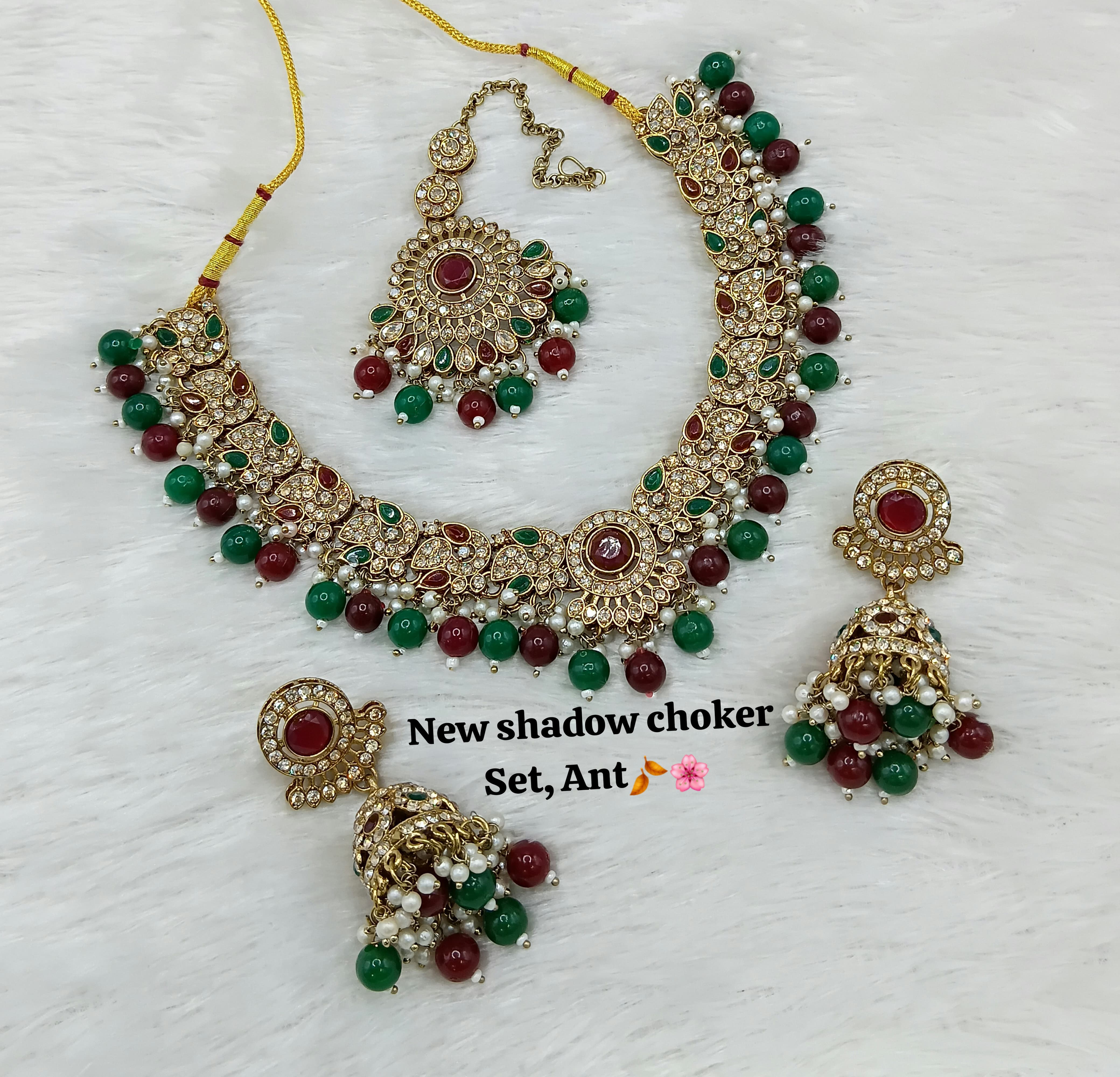 Designer Shadow Choker Necklace Set with Earrings & Maang Tikka – Premium Finish