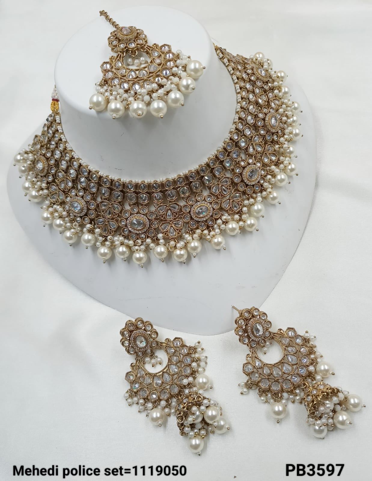 Antique Pearl & Gold Plated Choker Jewellery Set