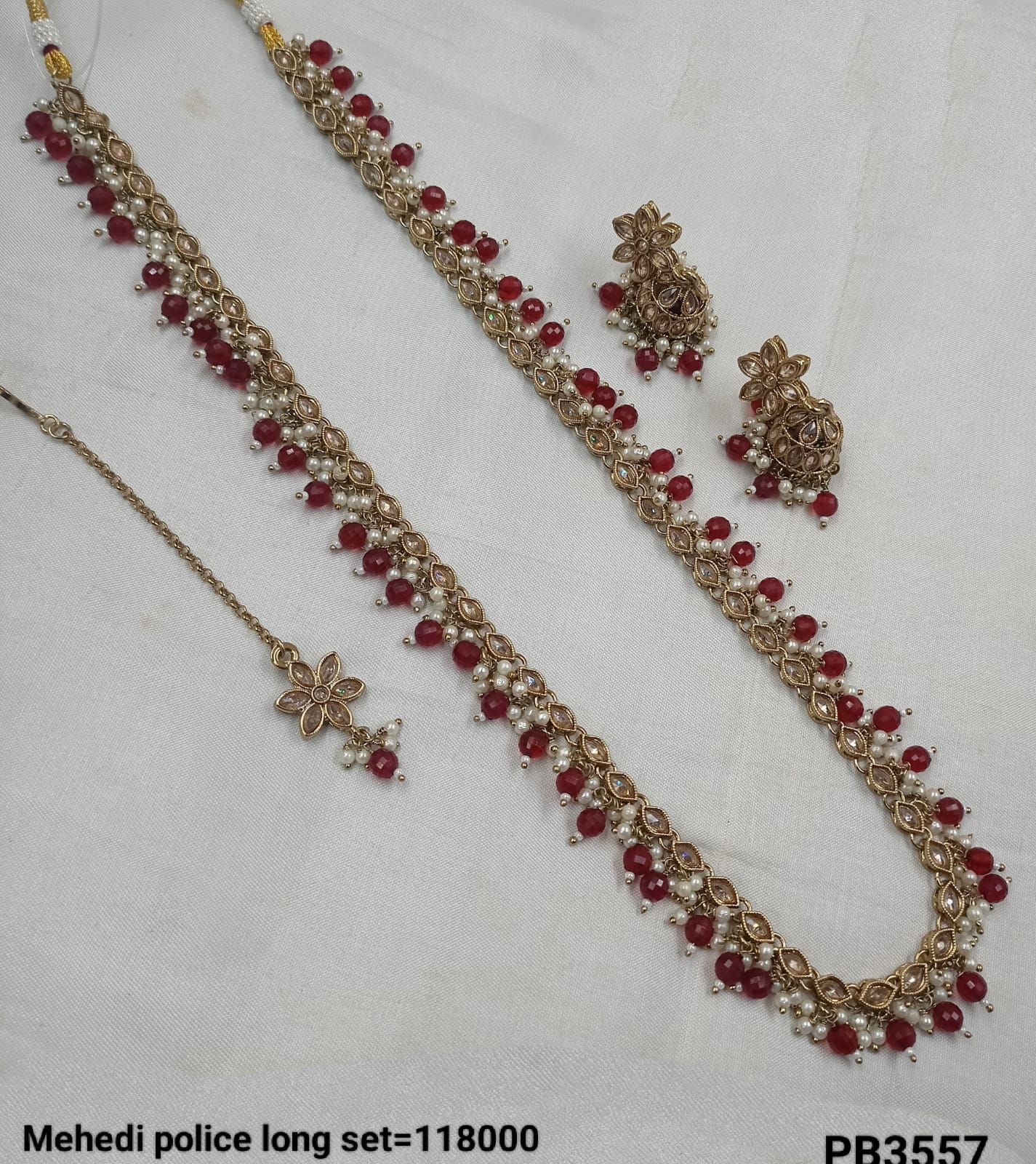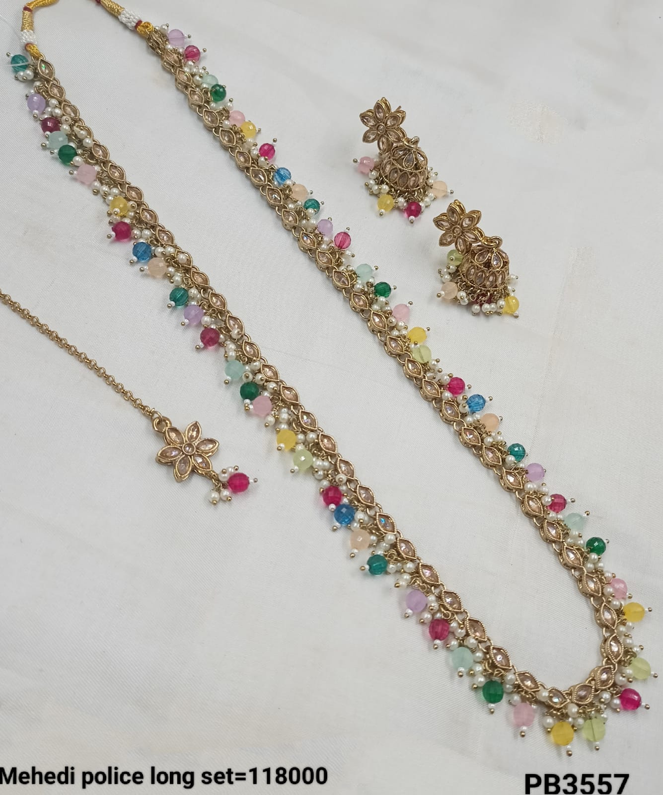 This long jewellery set features an elegant antique gold plating, expertly crafted to provide a timeless and refined accessory. It Has A Pack Of :-1 Long...