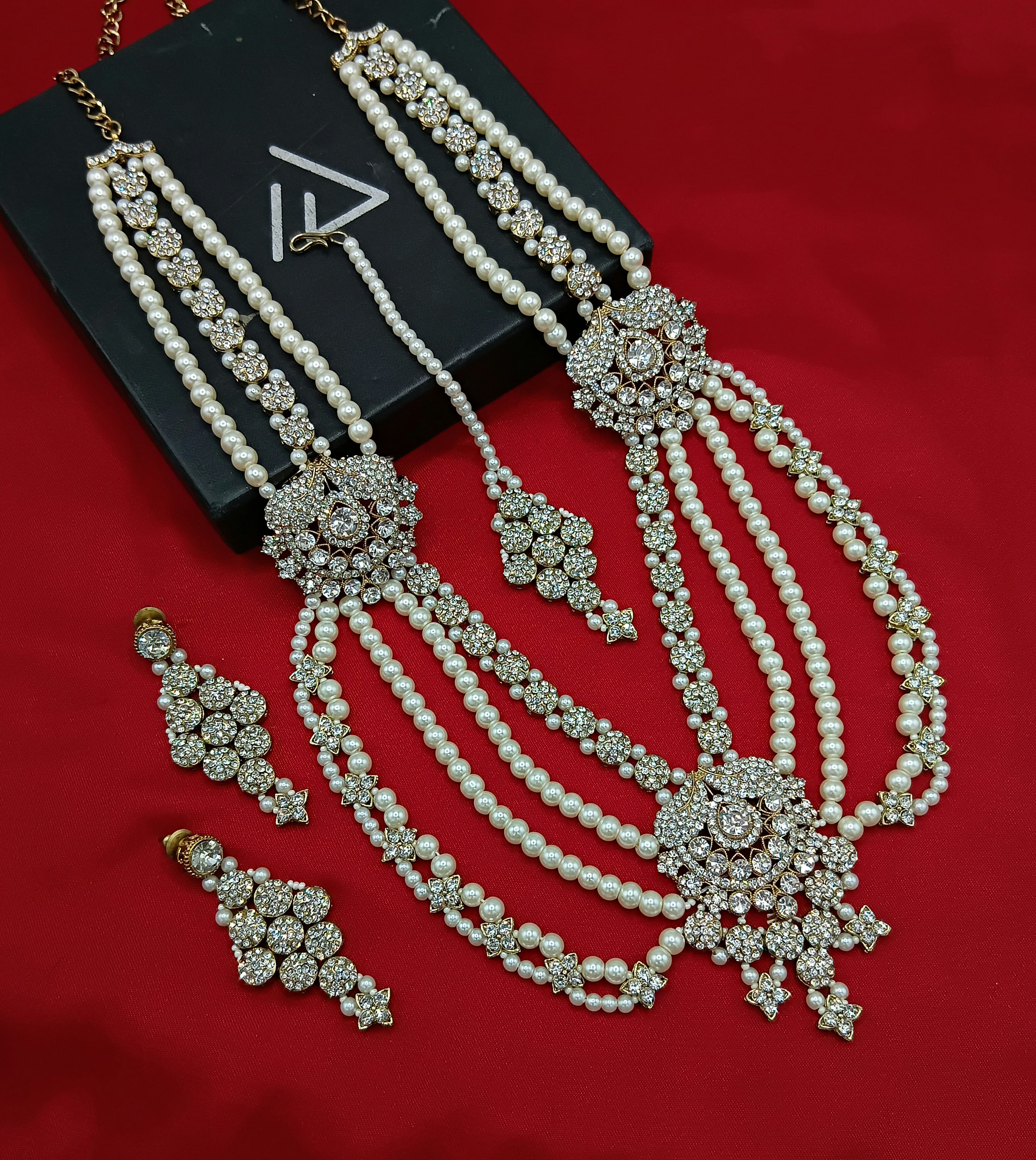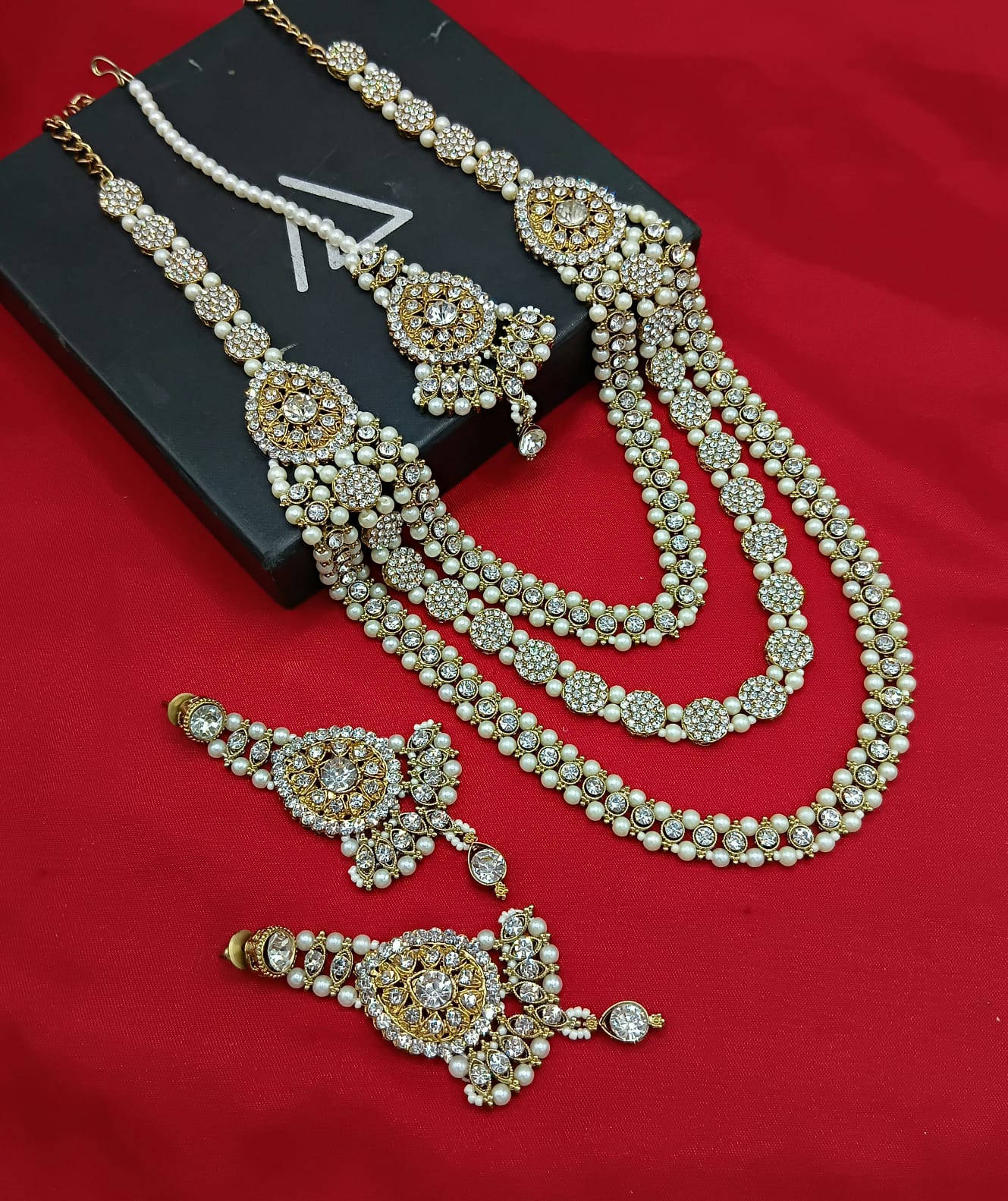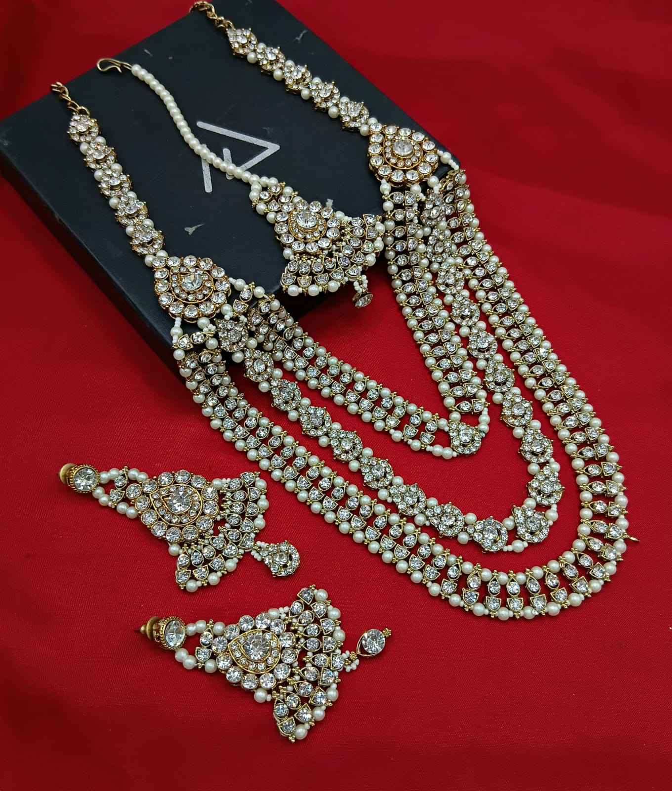 Traditional CZ Bridal Jewelry Set – Necklace, Earrings & Maang Tikka