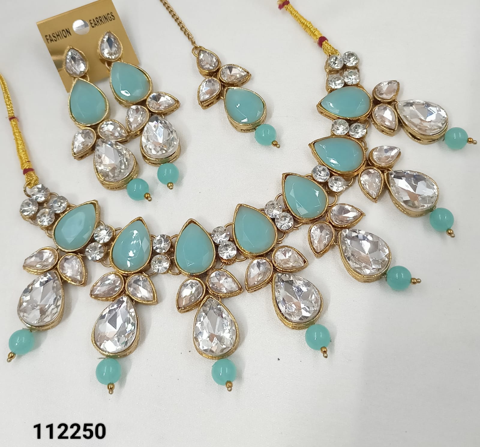 This set features a choker necklace elegantly finished with silver plating, combining classic style with refined craftsmanship. It Has A Pack Of :-1 Necklace Set,1 Pair...