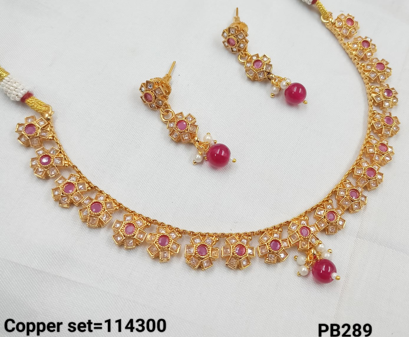 This necklace set features American diamonds with a silver base and gold plating, combining elegance and durability for a refined accessory choice. It Has A Pack...