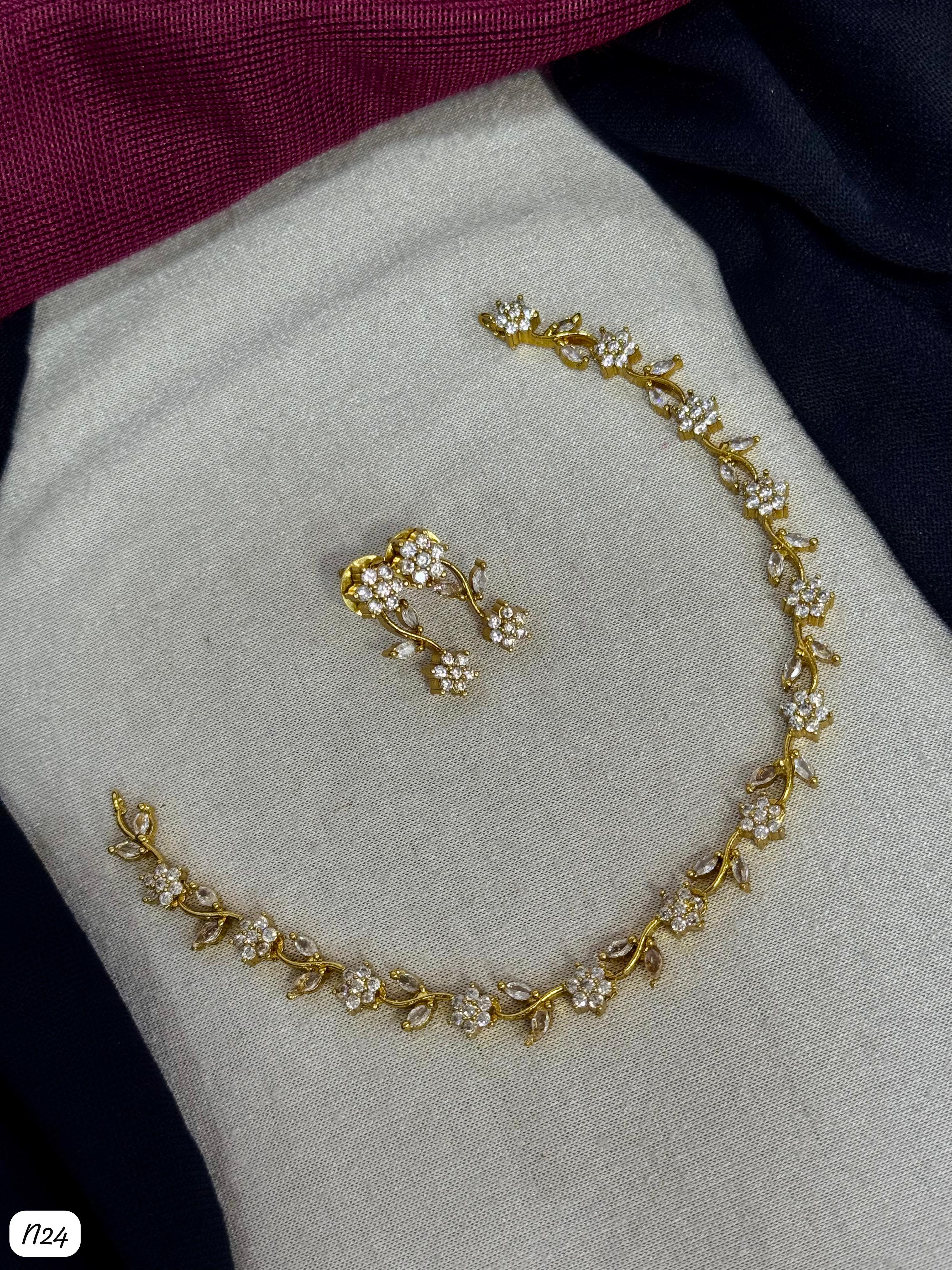 Elevate your elegance with this exquisite gold-plated necklace set adorned with sparkling American diamonds, designed to add a refined touch to any ensemble. It Has A...