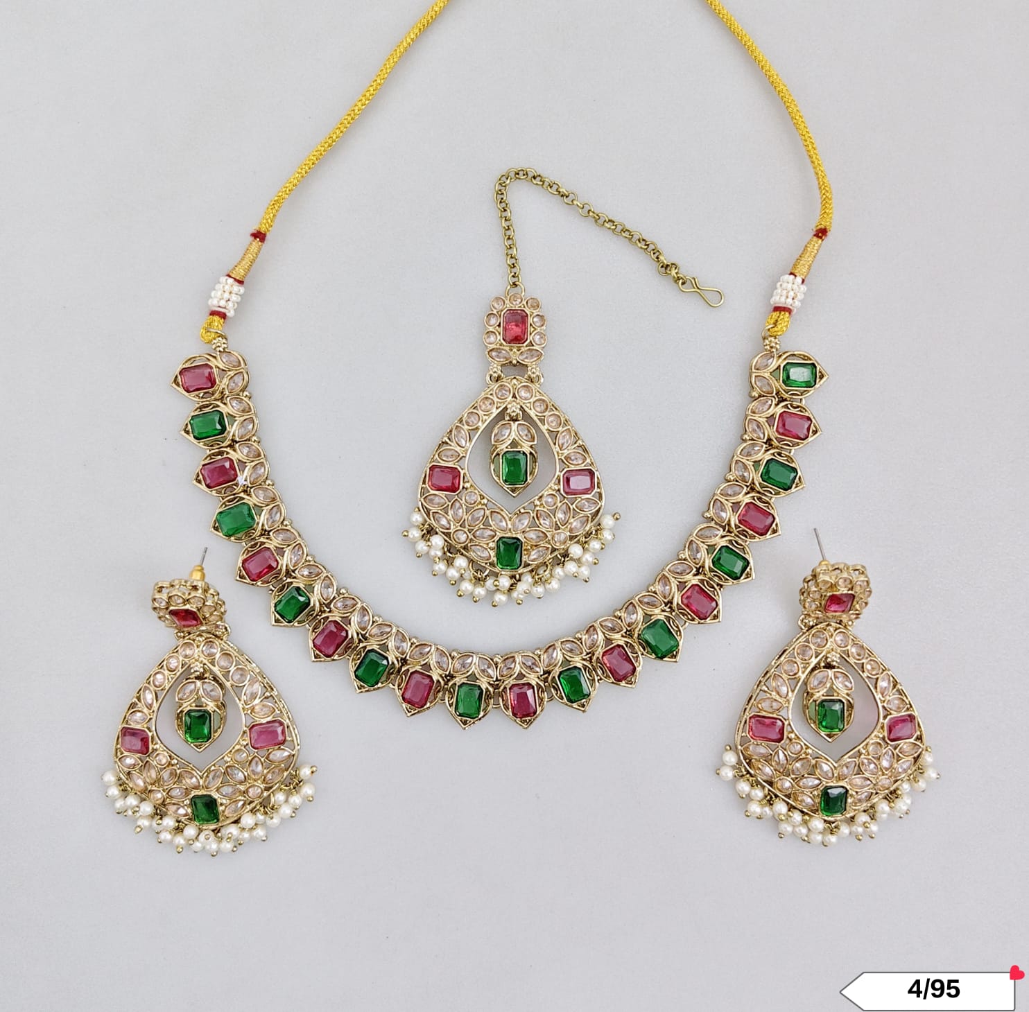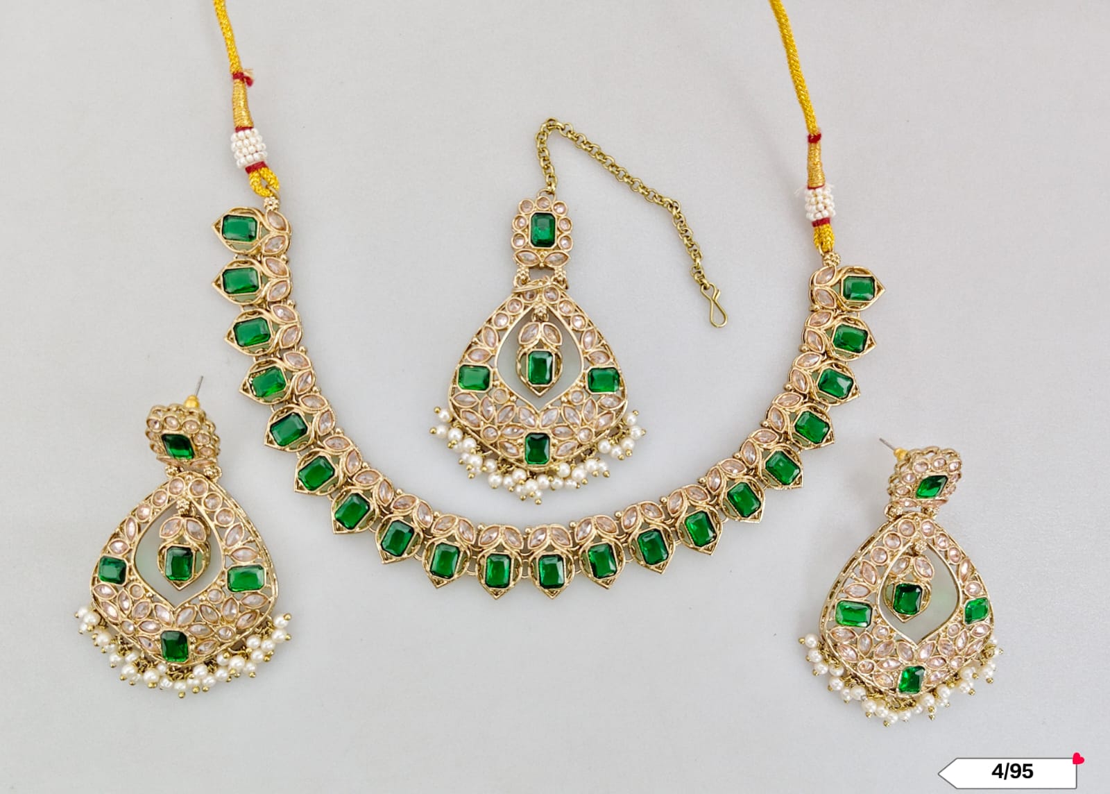 This exquisite necklace set features traditional kundan craftsmanship with a rich gold-plated finish, embodying timeless elegance and cultural heritage. It Has A Pack Of :-1 Necklace...