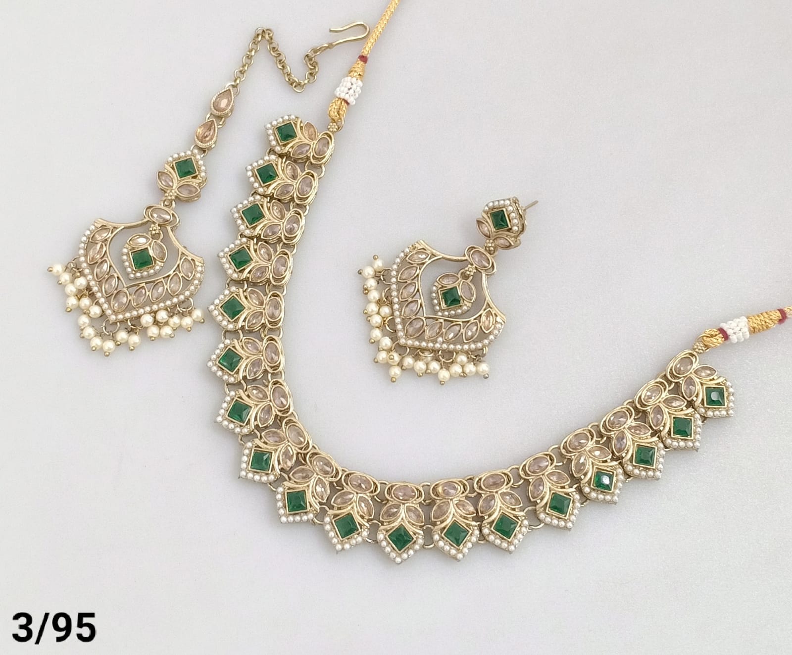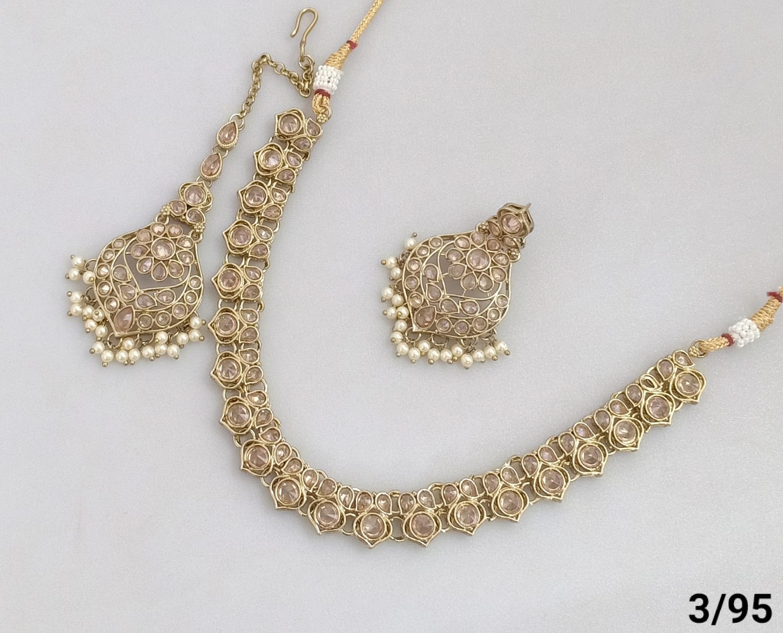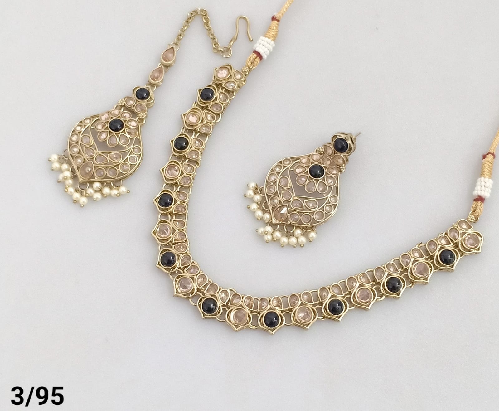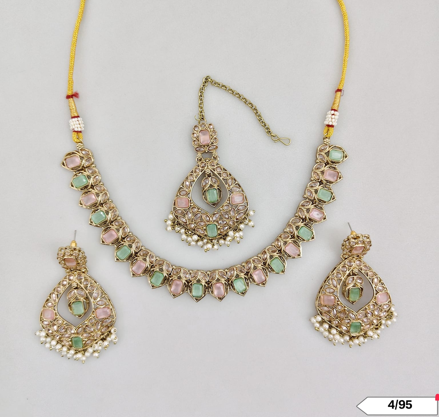 This choker necklace set showcases expert craftsmanship with its antique gold plating, delivering a timeless and distinguished accessory for any occasion. It Has A Pack Of...