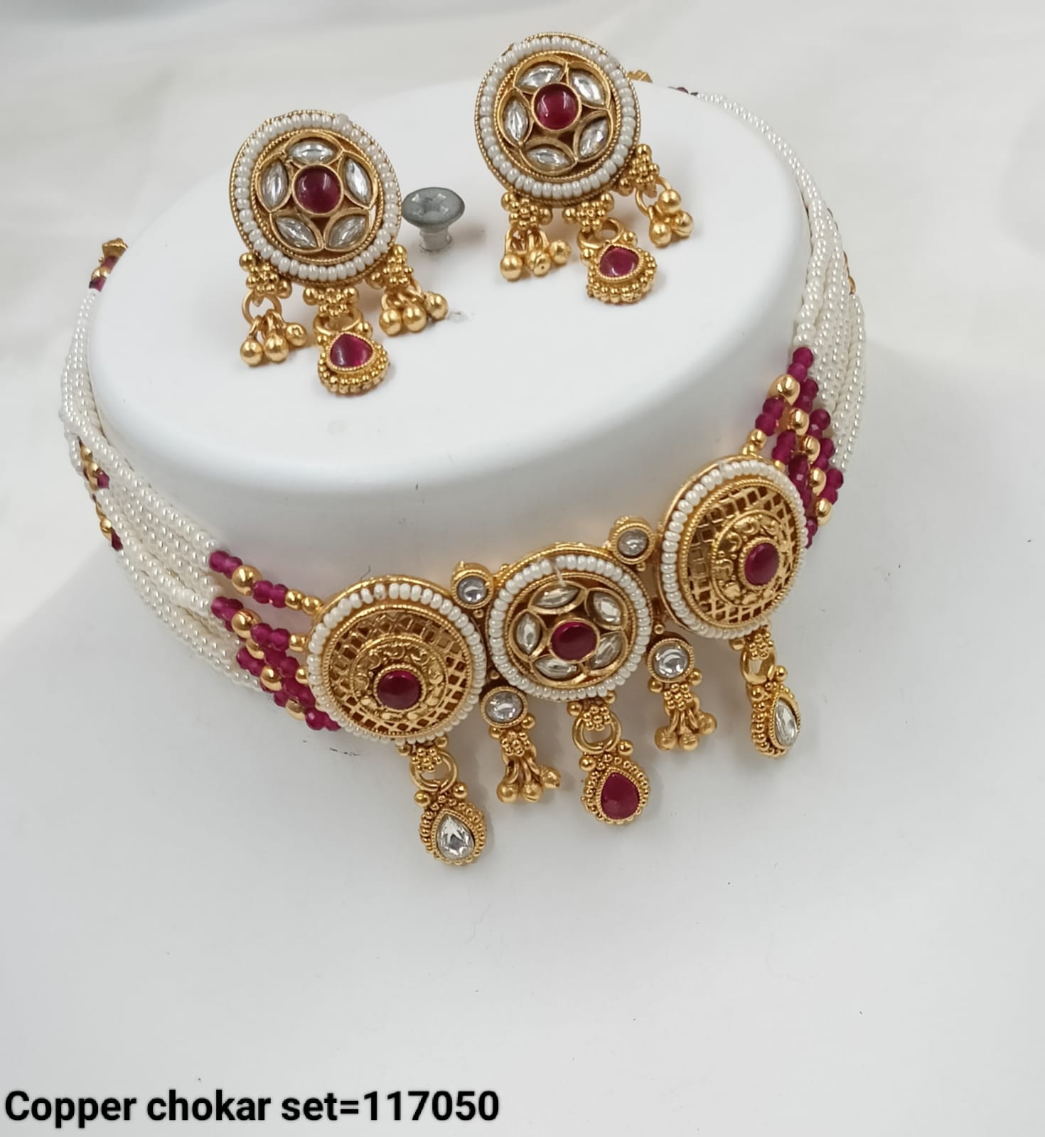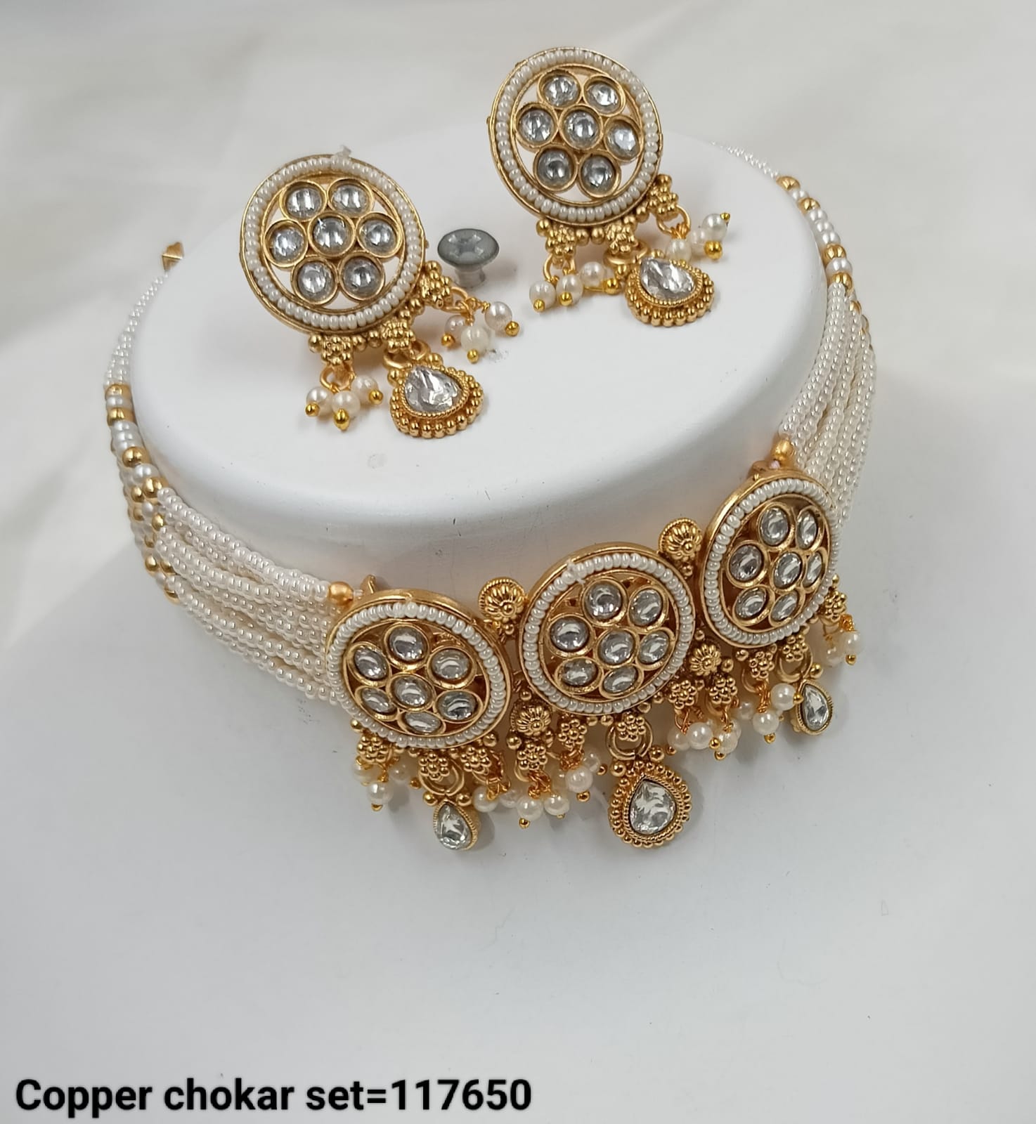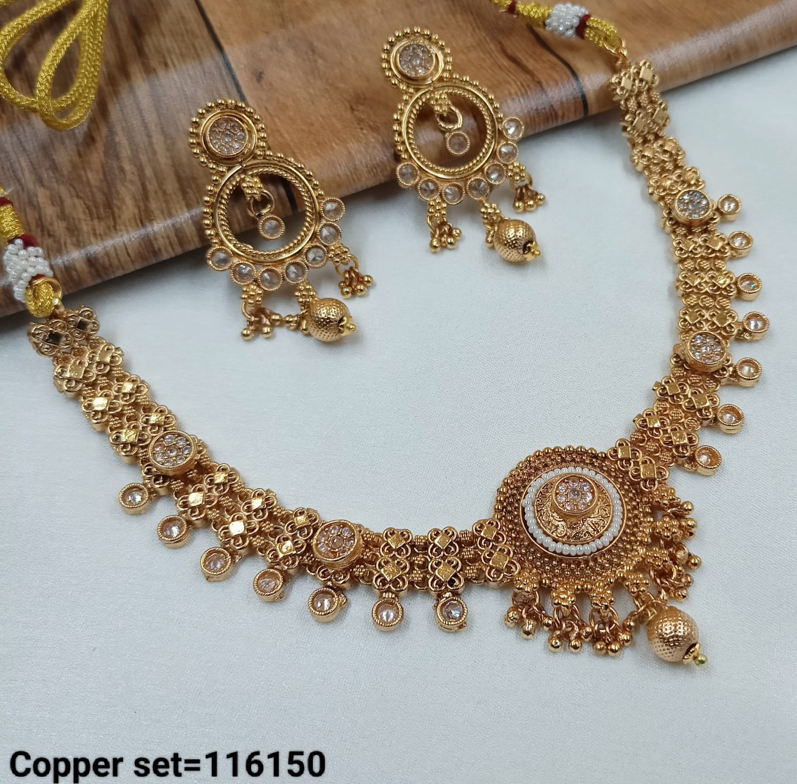 Elevated with a copper base and finished in a refined gold polish, this choker necklace set exemplifies sophisticated craftsmanship and timeless elegance. It Has A Pack...