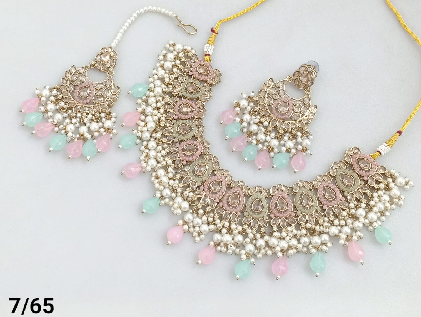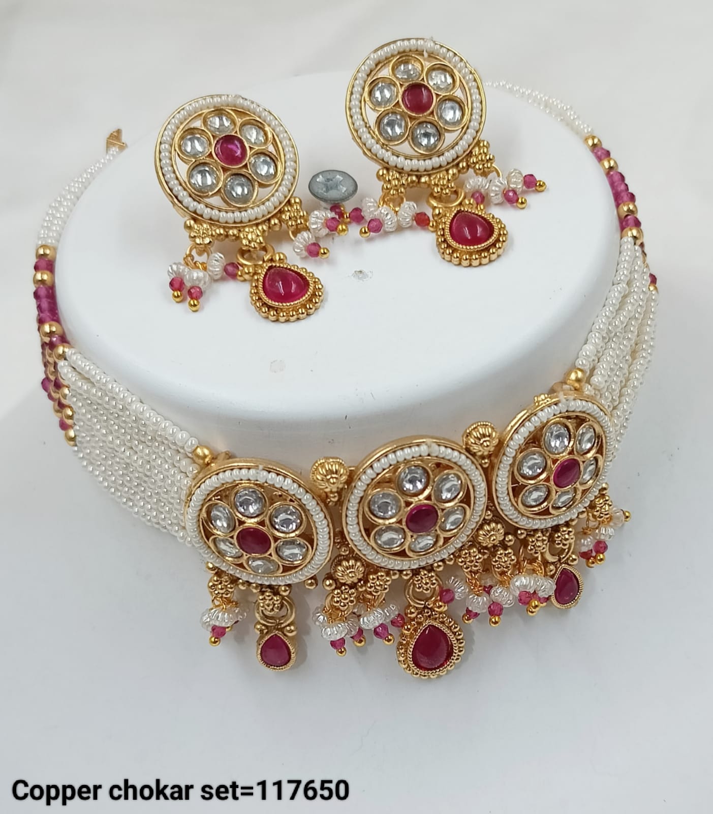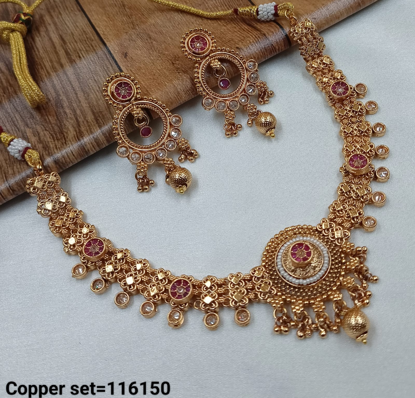 Elevated with a copper base and finished in a refined gold polish, this choker necklace set exemplifies sophisticated craftsmanship and timeless elegance. It Has A Pack...