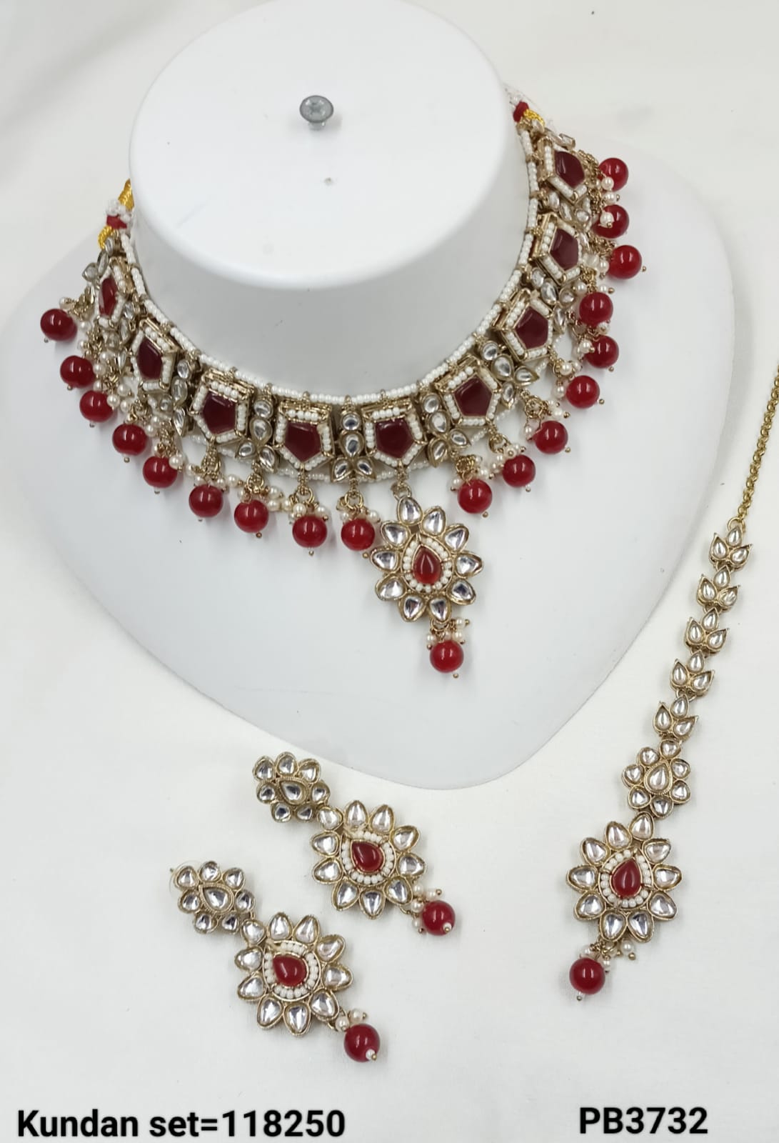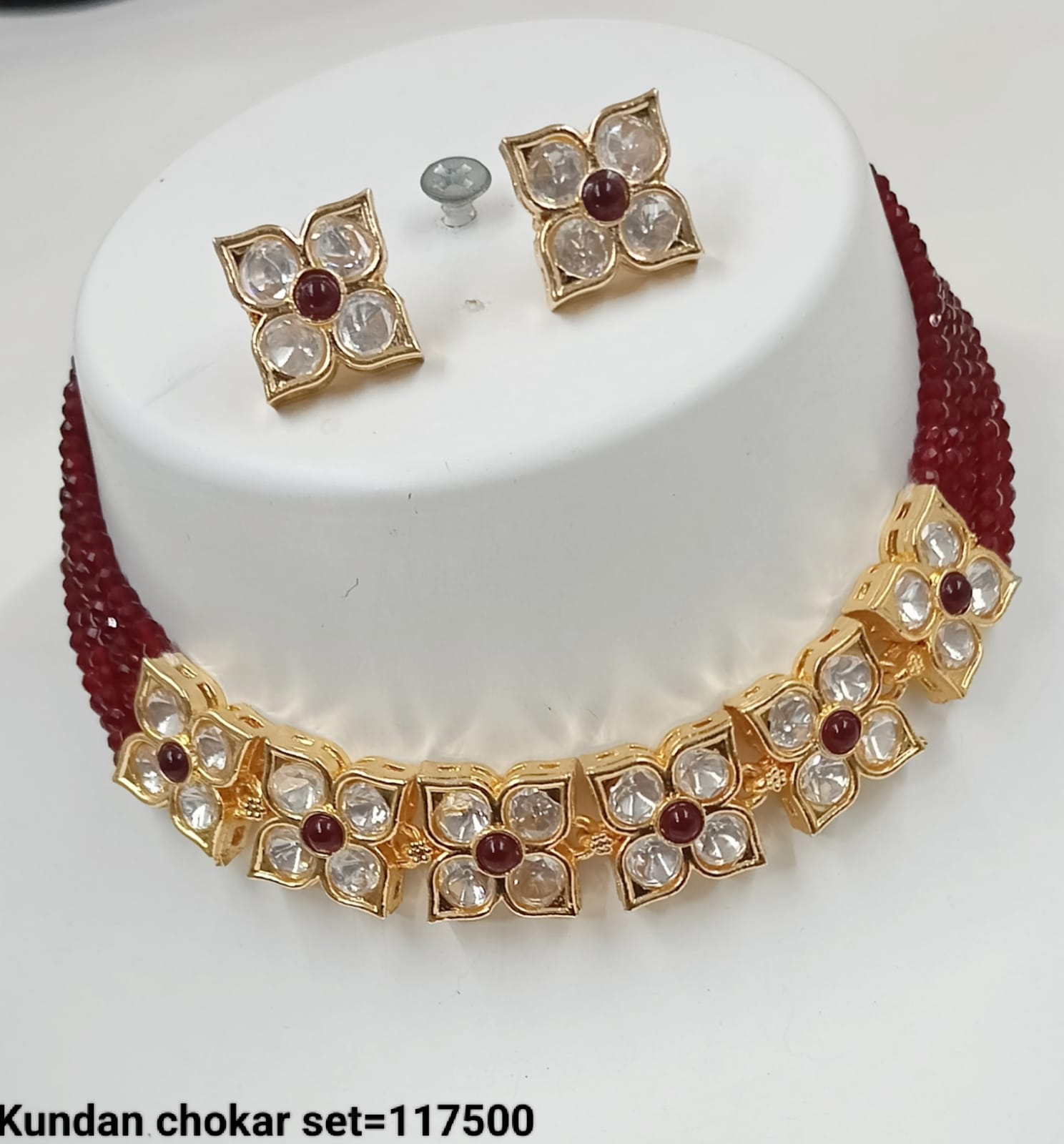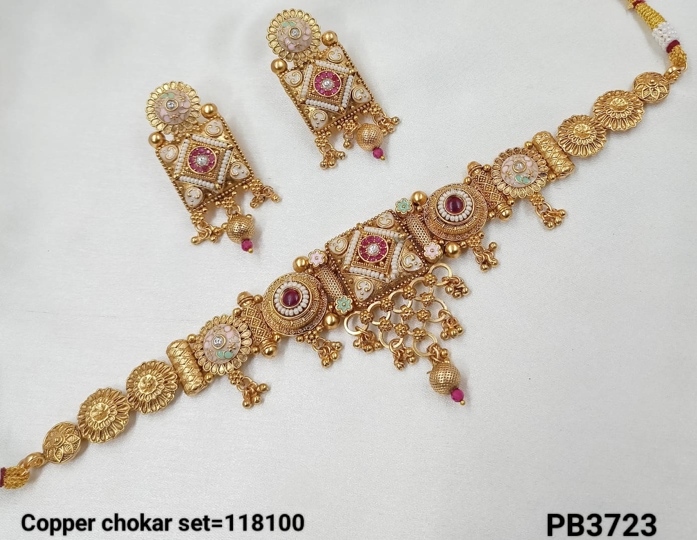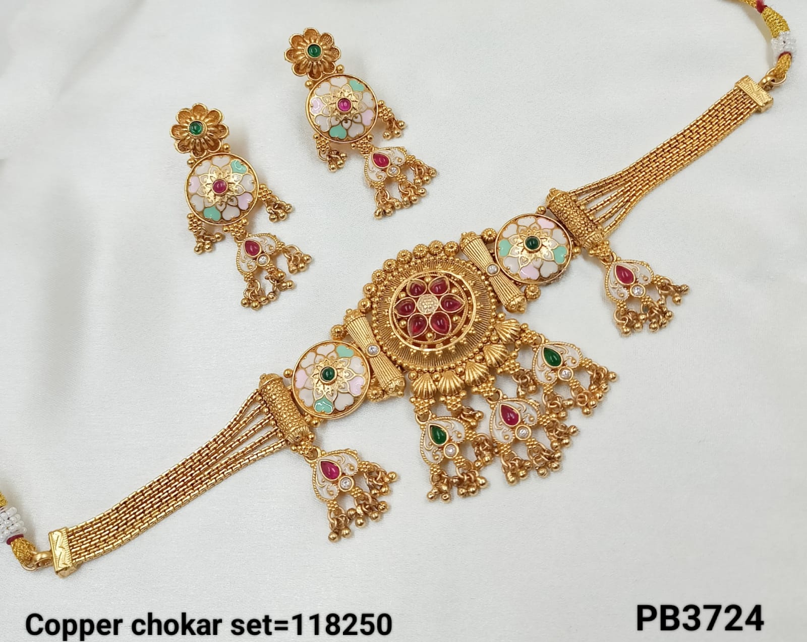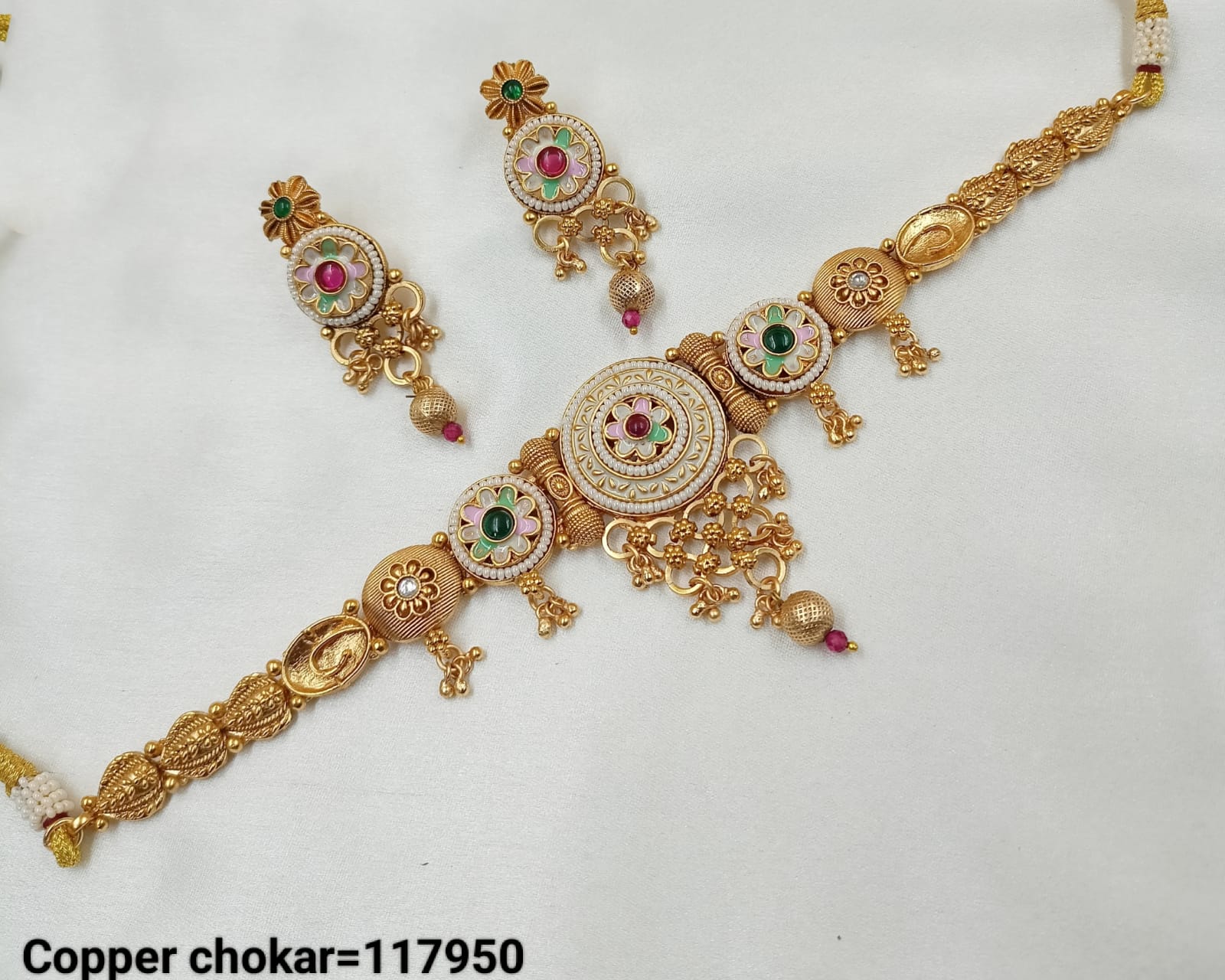 Elevated with a copper base and finished in a rich gold polish, this choker necklace set exemplifies refined craftsmanship and timeless elegance. It Has A Pack...