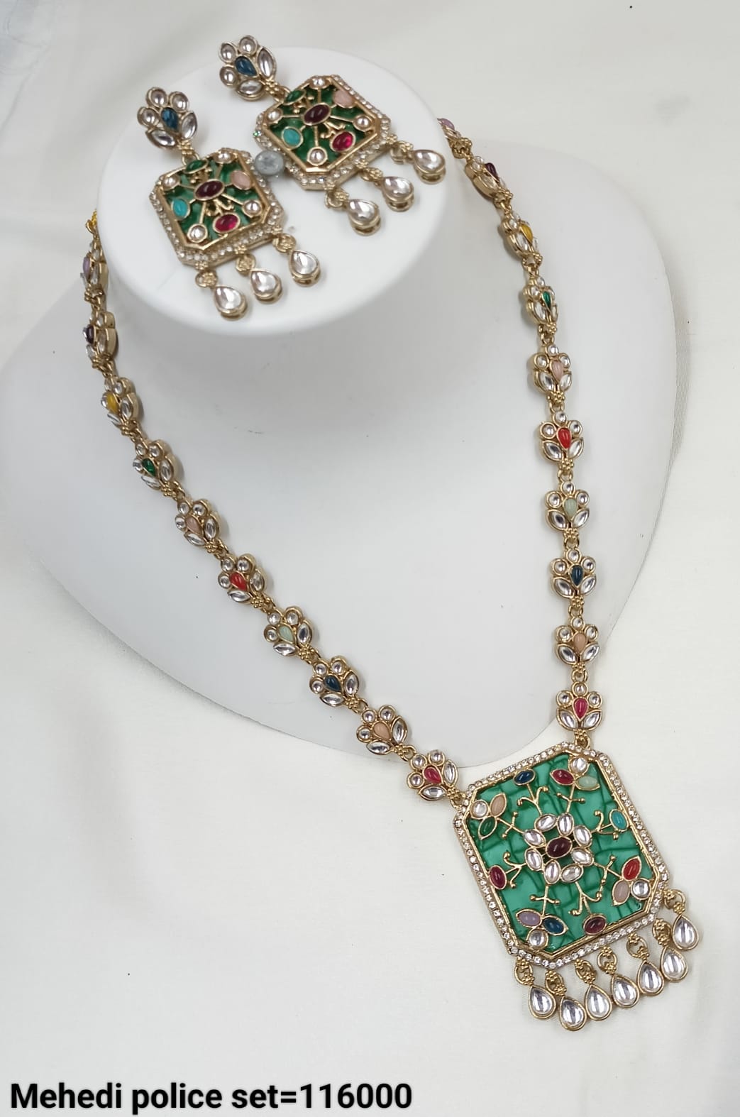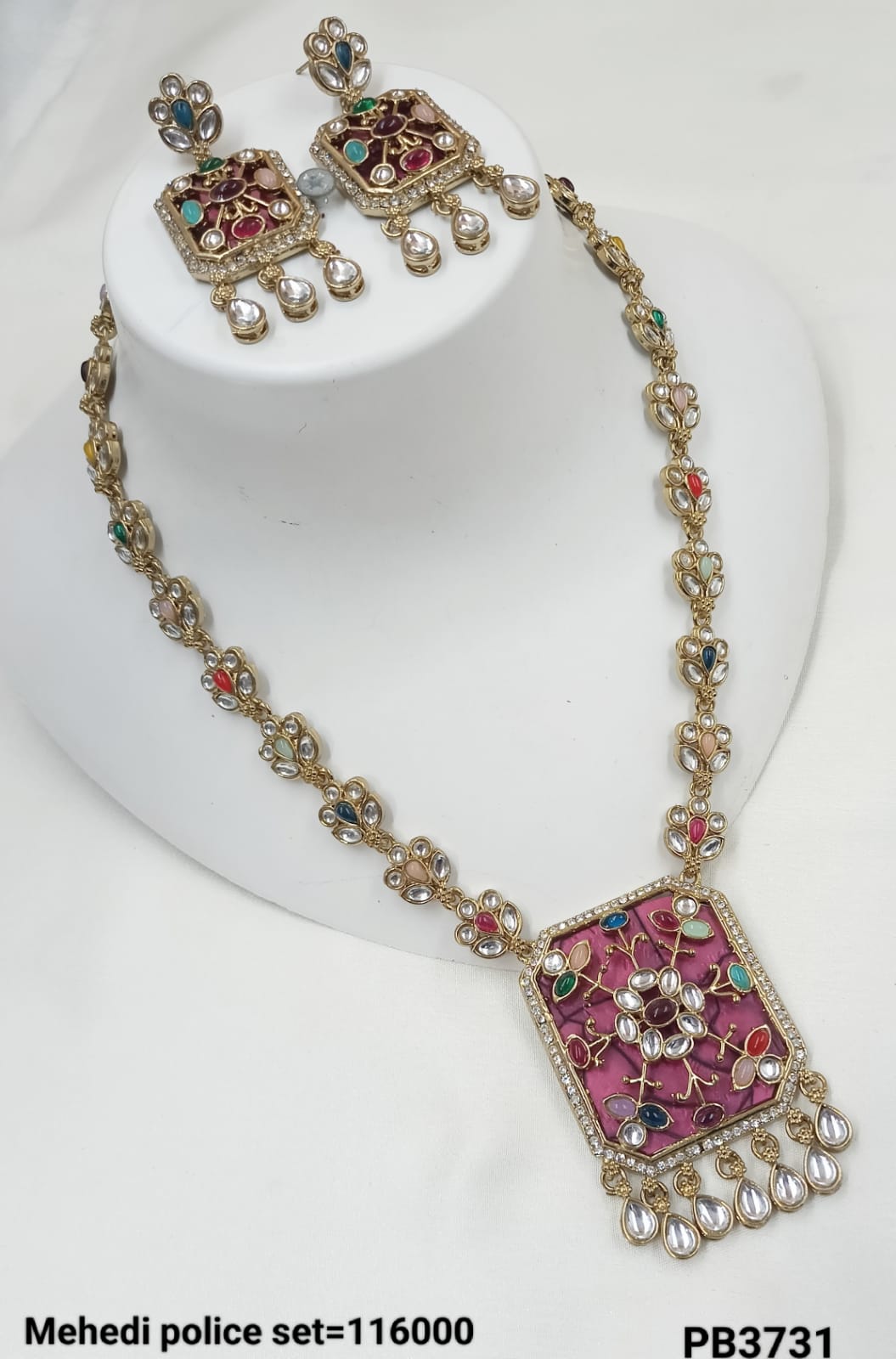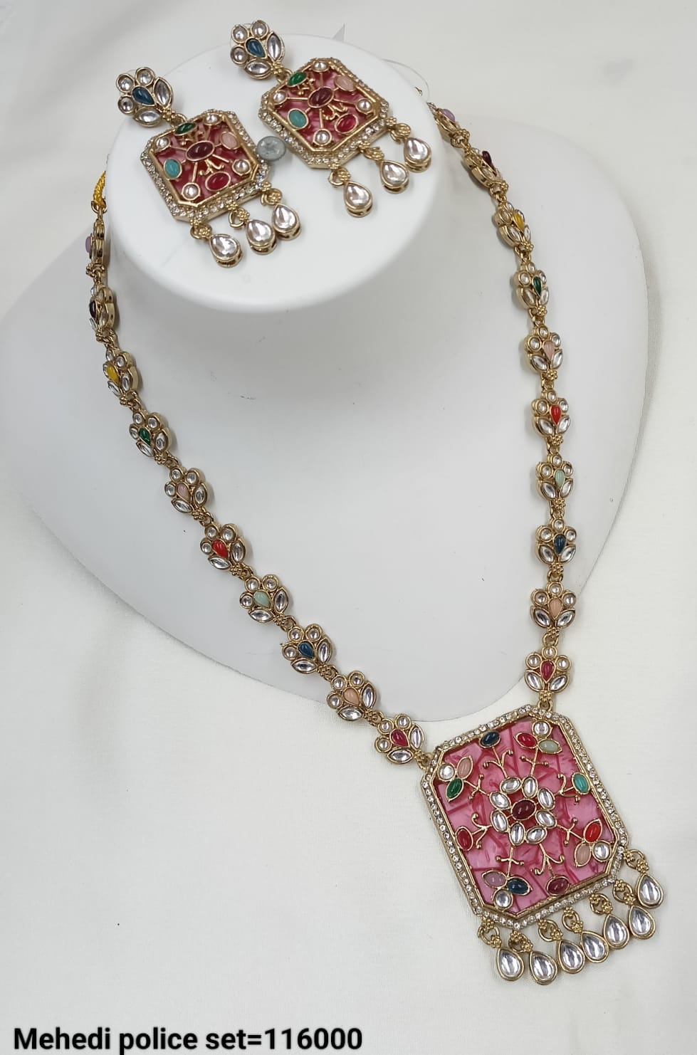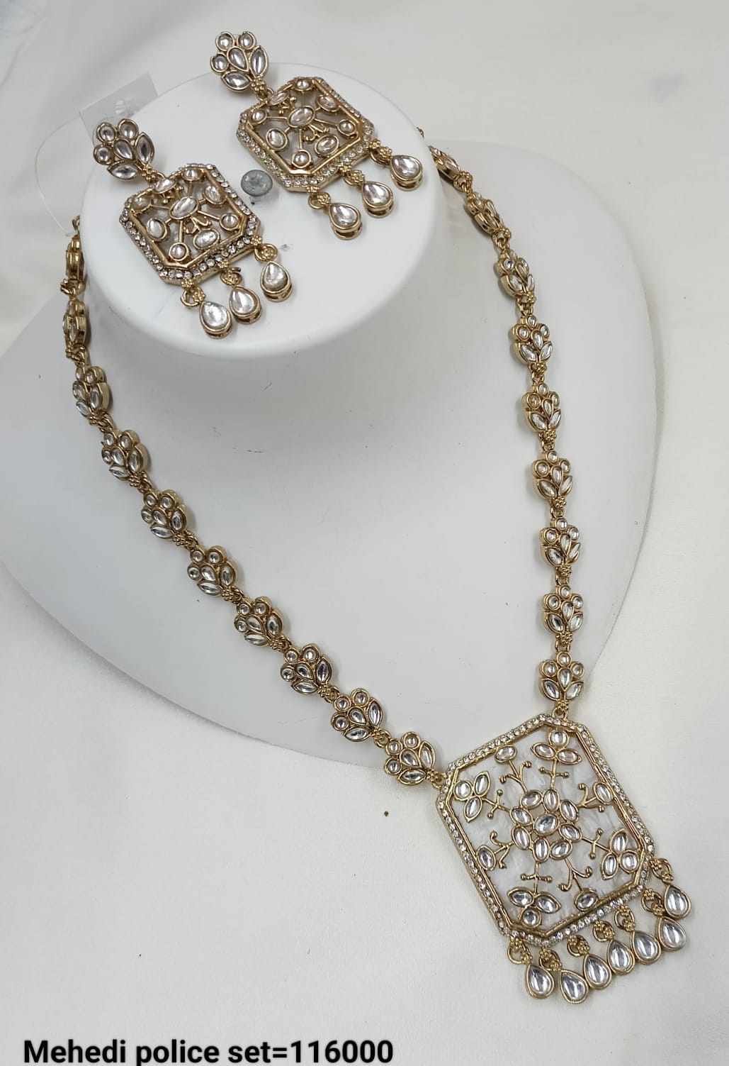 This exquisite long necklace set features intricate kundan work, beautifully enhanced with a gold-plated finish for a luxurious and timeless appeal. It Has A Pack Of...