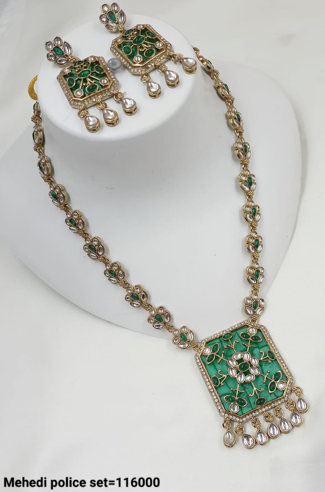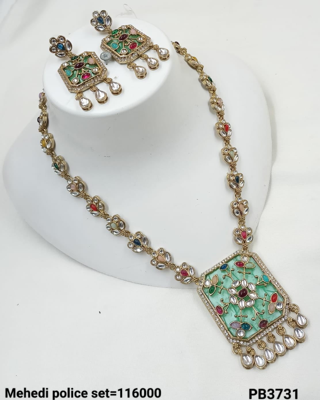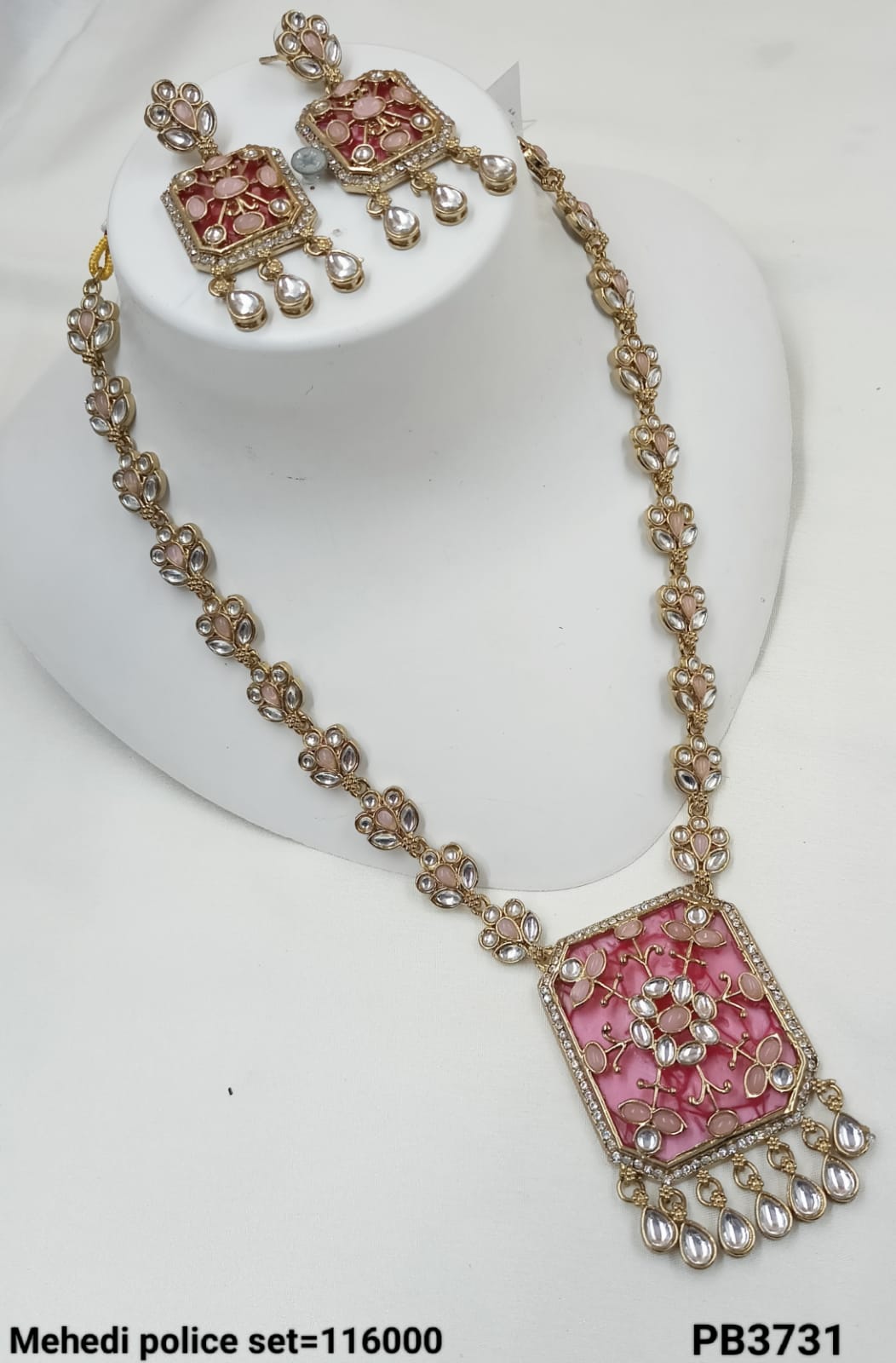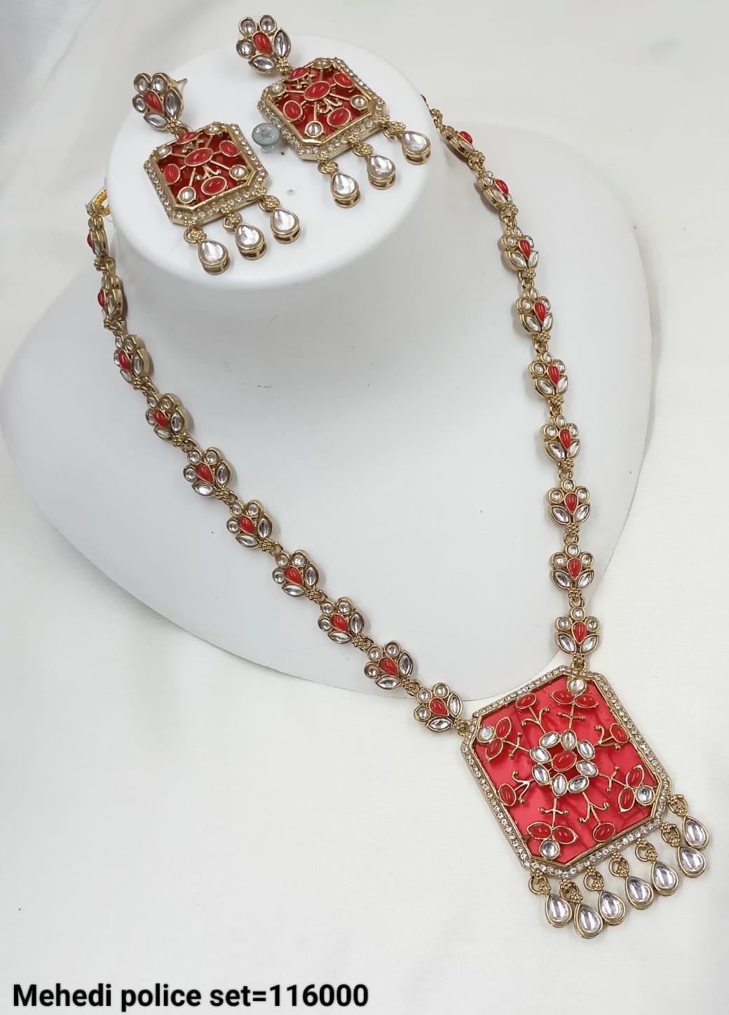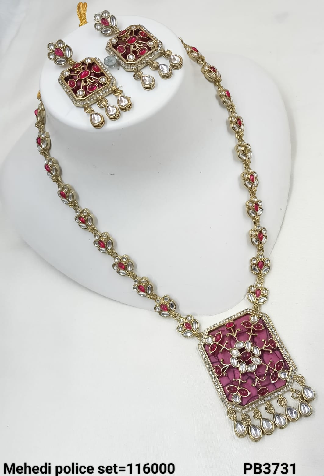 This exquisite long necklace set features intricate kundan work, beautifully enhanced with a gold-plated finish for a luxurious and timeless appeal. It Has A Pack Of...
